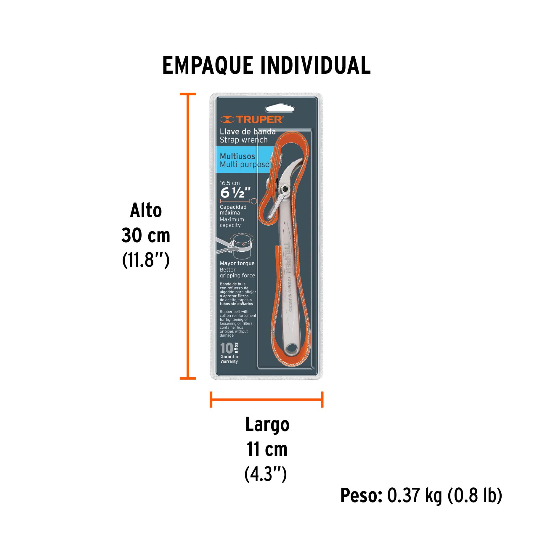 Llave de banda de hule 1-1/2" a 6-1/2" para filtro de aceite