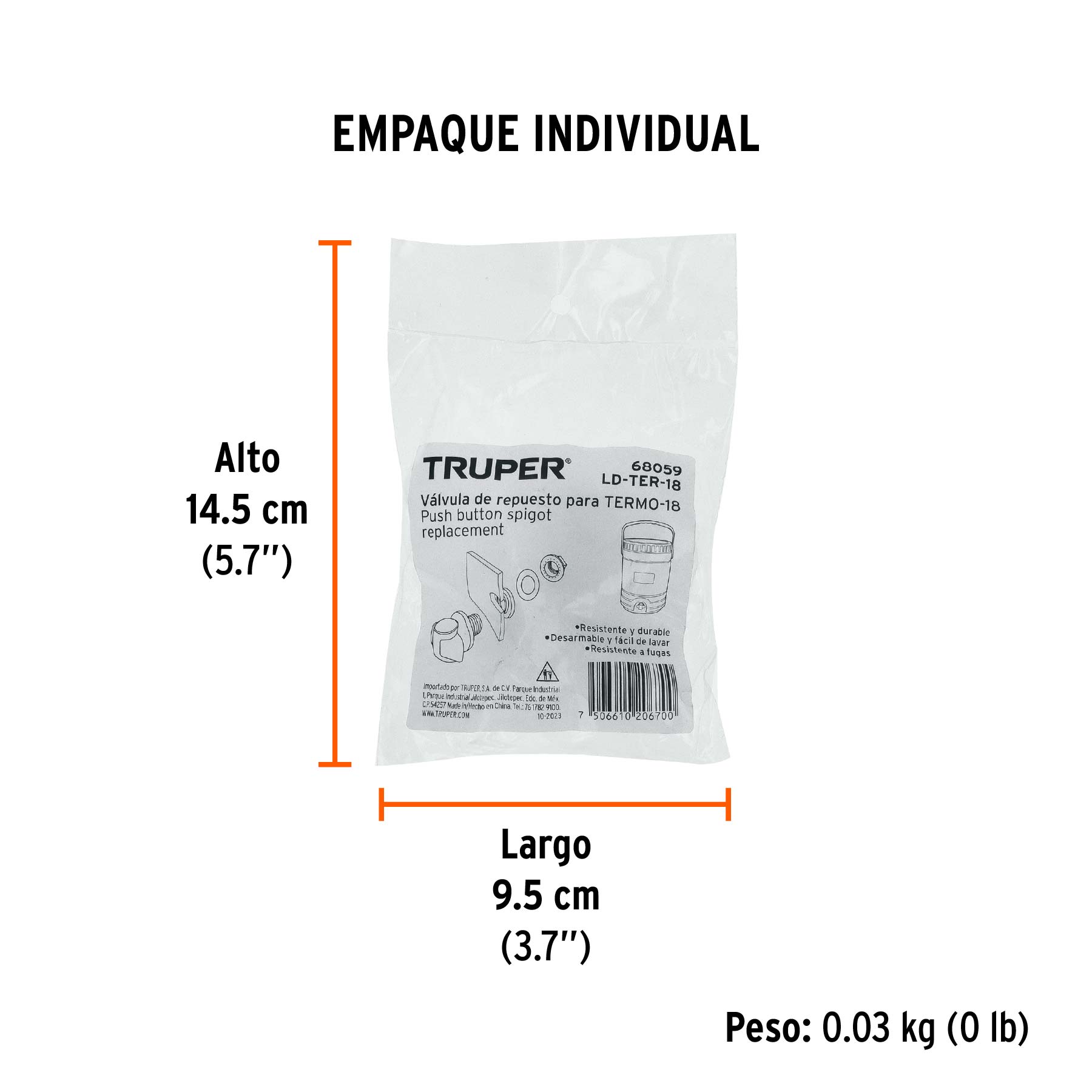 | Garantizado contra defectos de fabricación o mano de obra. La garantía se puede hacer válida con cualquier distribuidor de TRUPER |