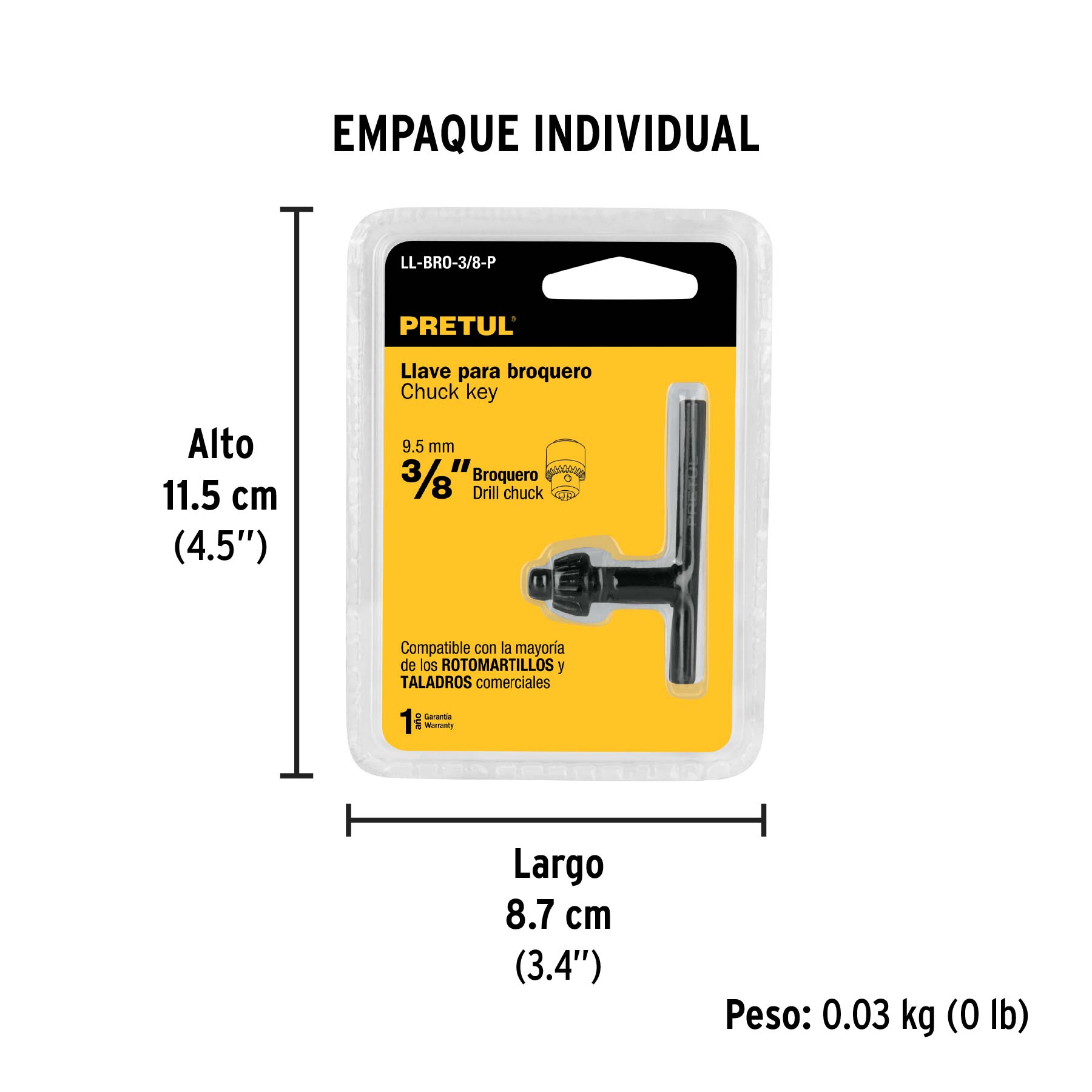 Llave para broquero de 3/8", PRETUL