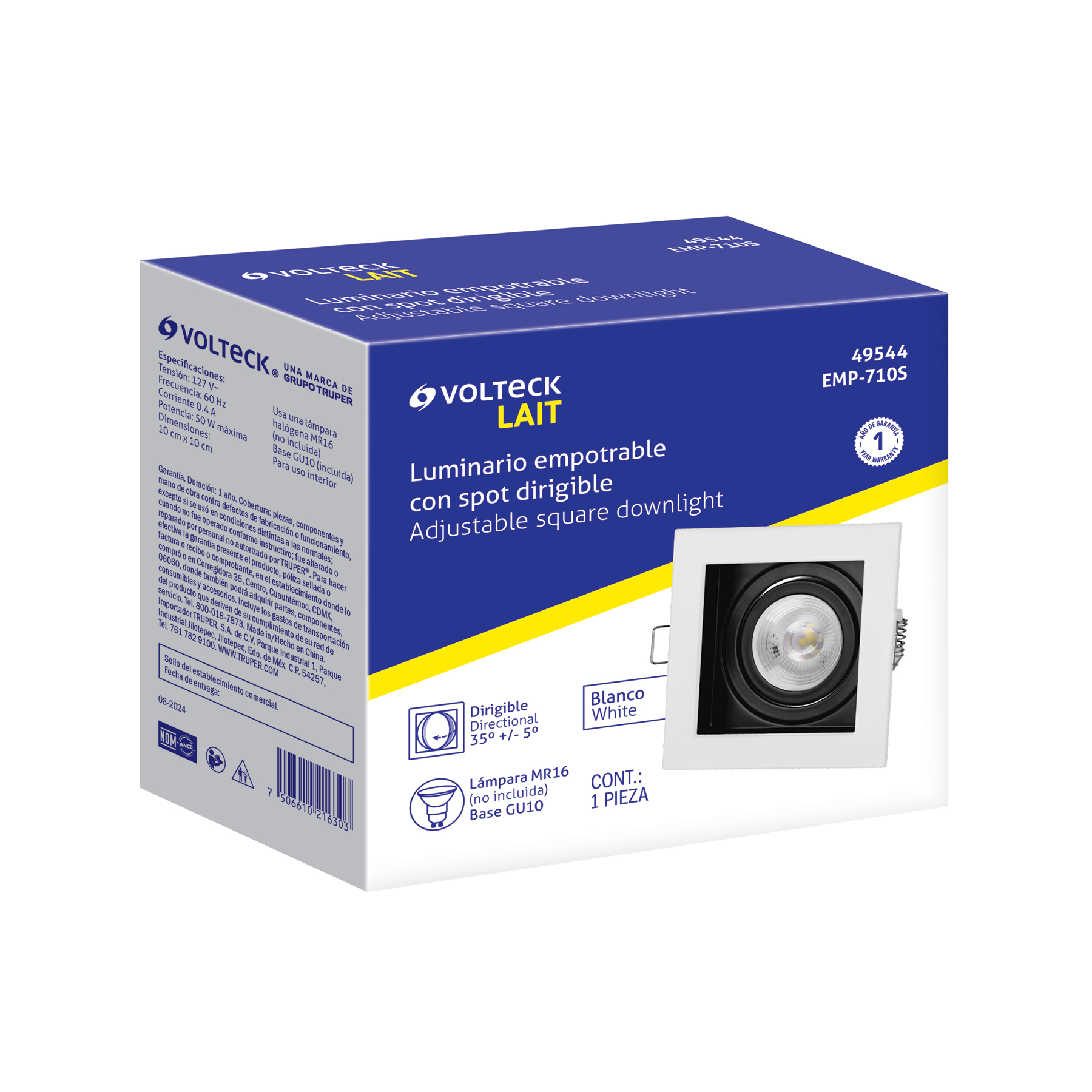 Luminario empotrable con 1 spot dirigible, blanco, VOLTECK