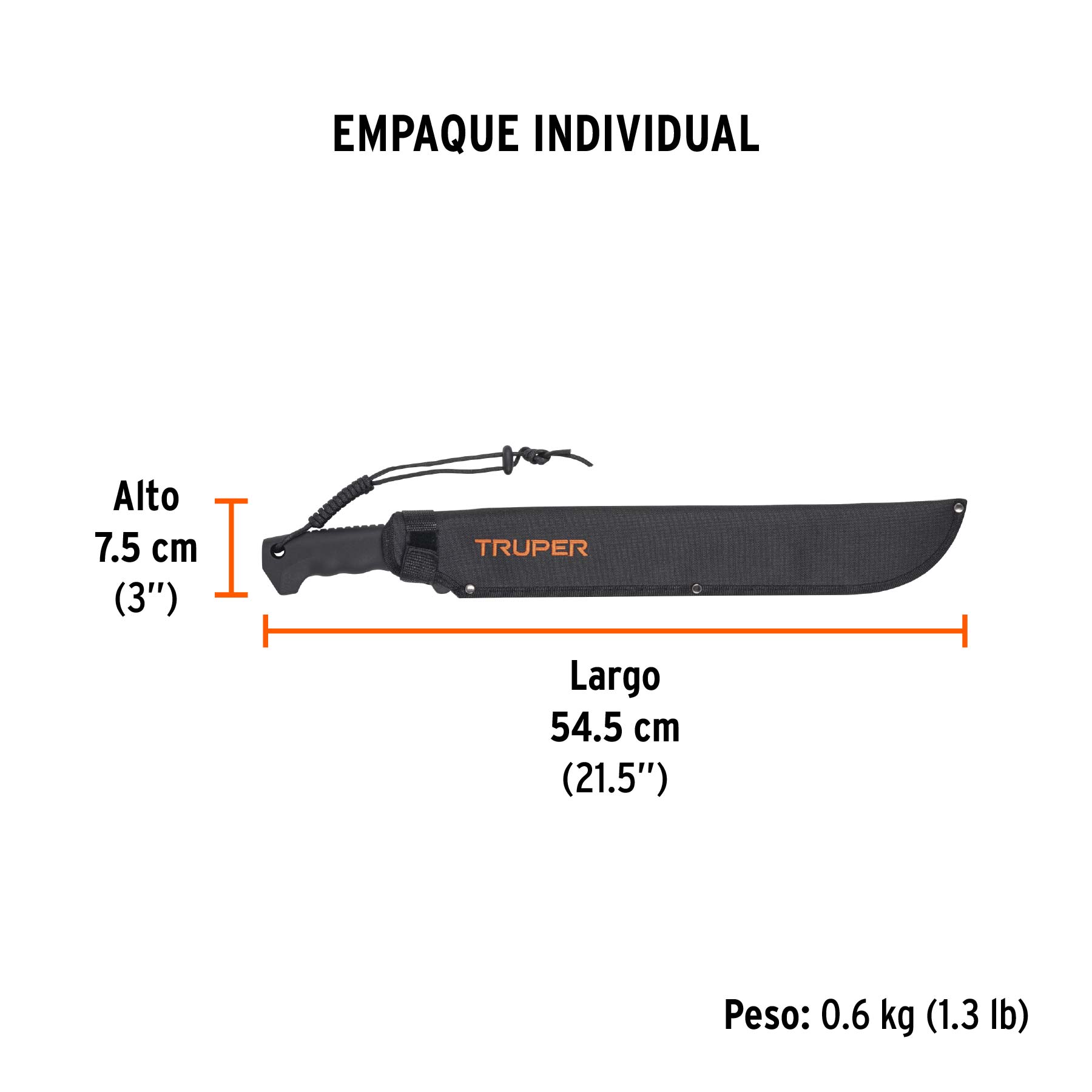 Machete doble filo 14", cacha inyectada, con funda, TRUPER