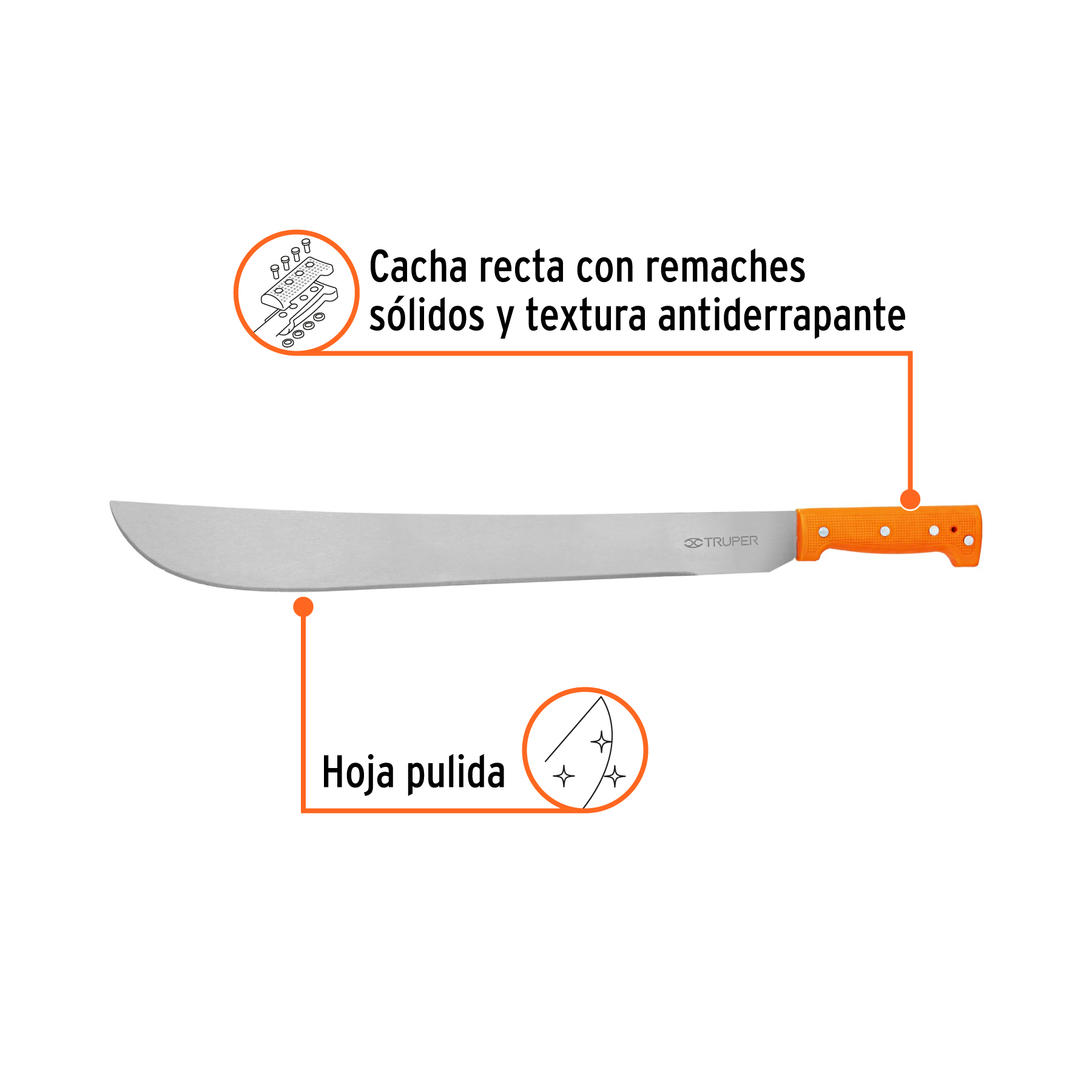 Machete estándar 20" cacha naranja remachada, TRUPER