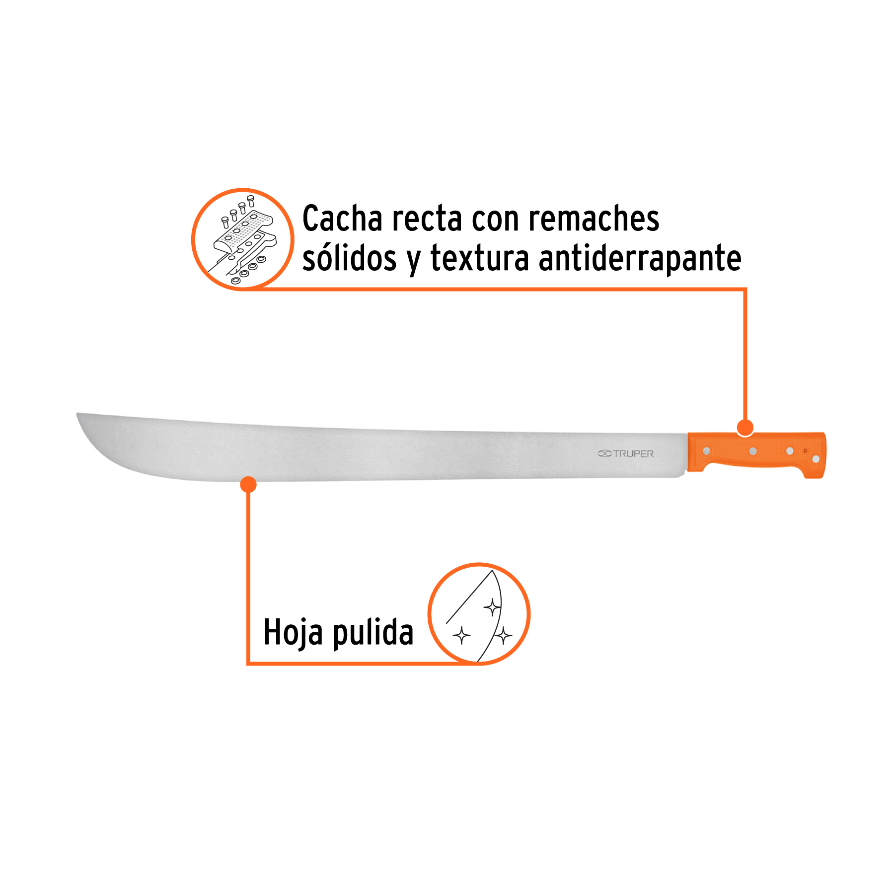 Machete estándar 24" cacha naranja remachada, TRUPER