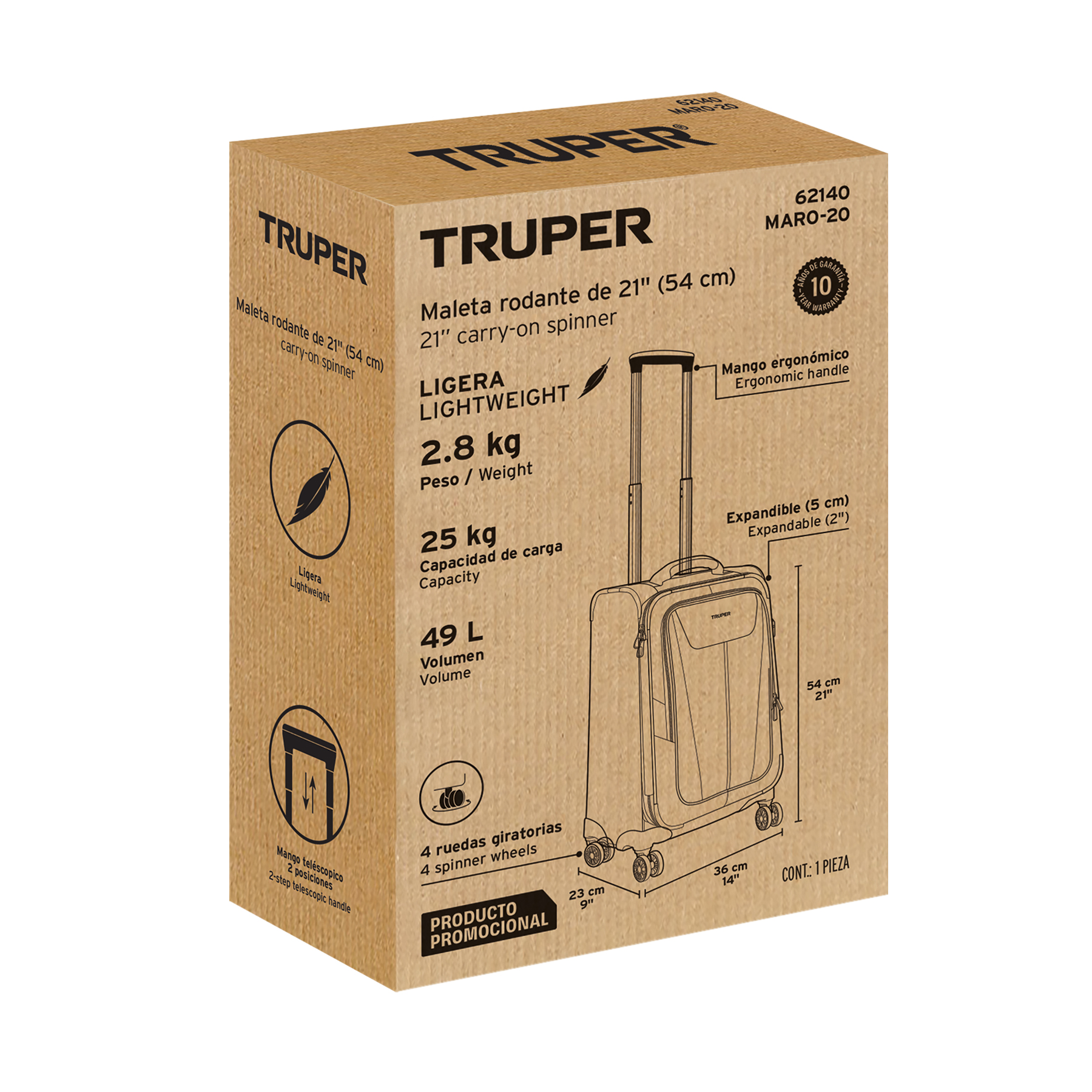 | Garantizado contra defectos de fabricación o mano de obra. La garantía se puede hacer válida con cualquier distribuidor de TRUPER |