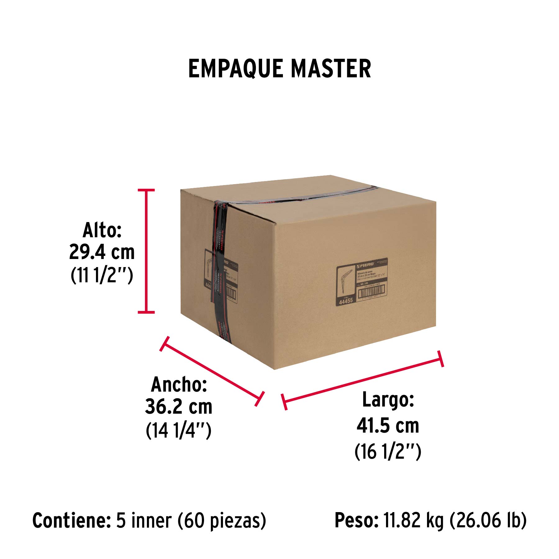 Ménsula de acero negra 12 x 14", FIERO