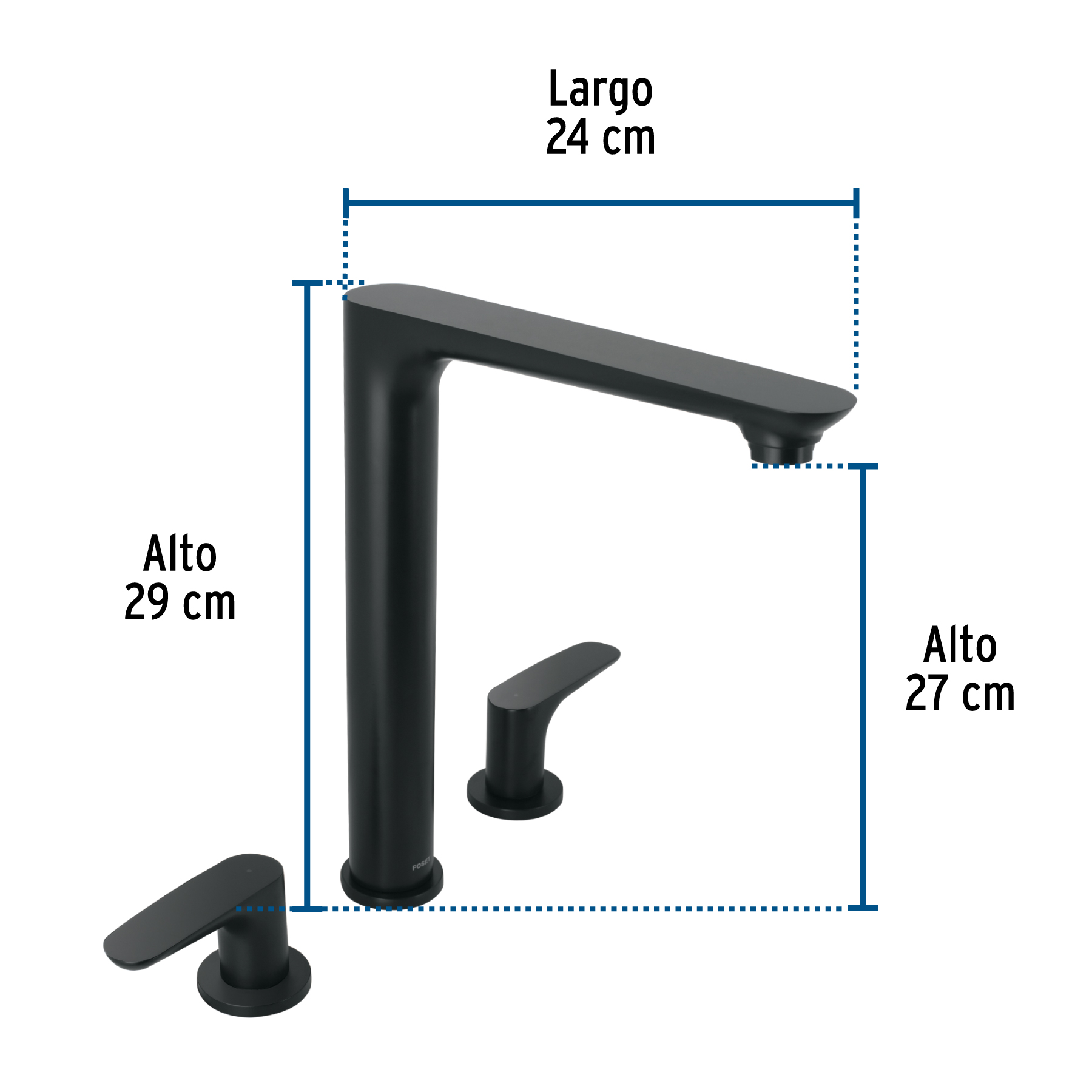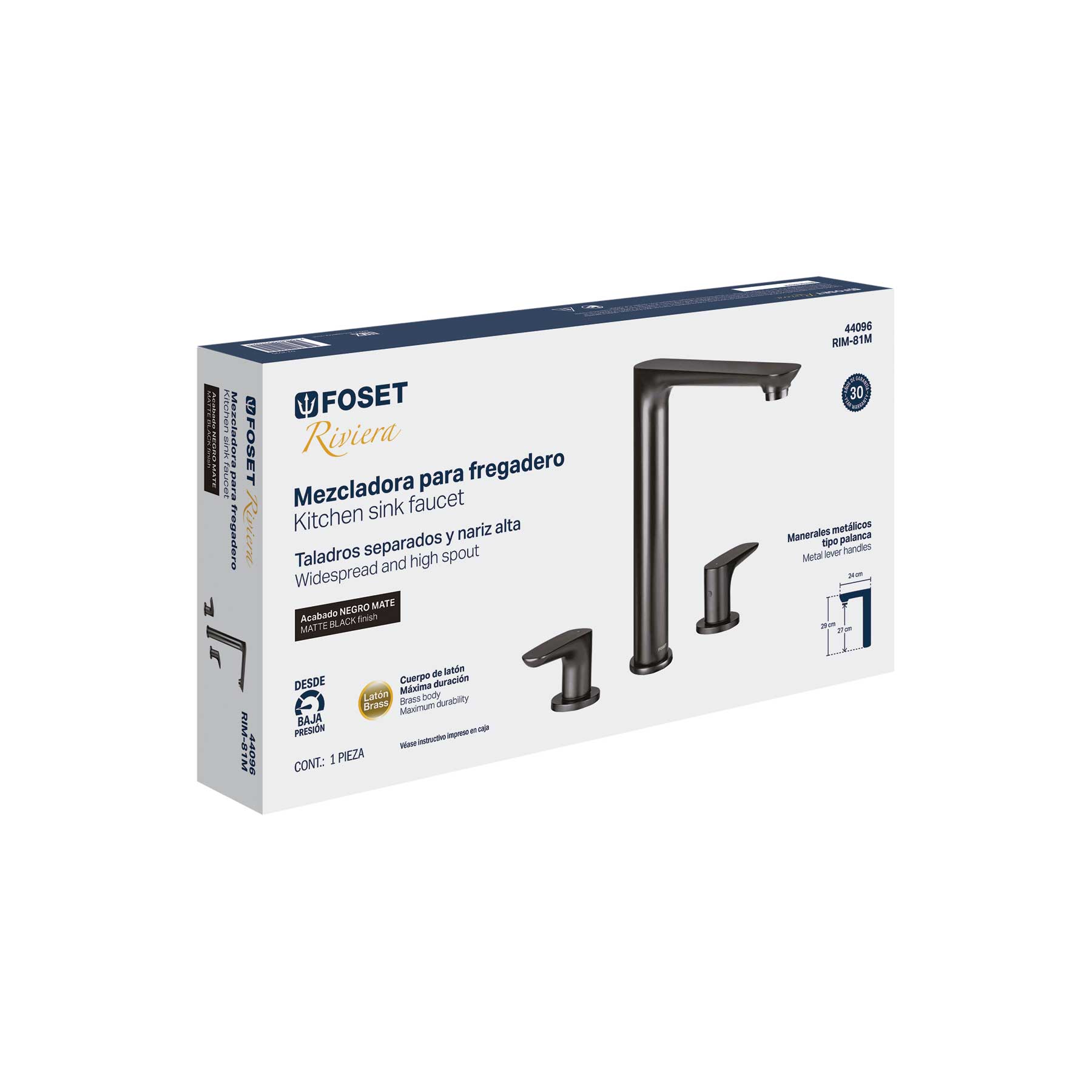 Mezcladora cuello alto para fregadero, negro, FOSET RIVIERA