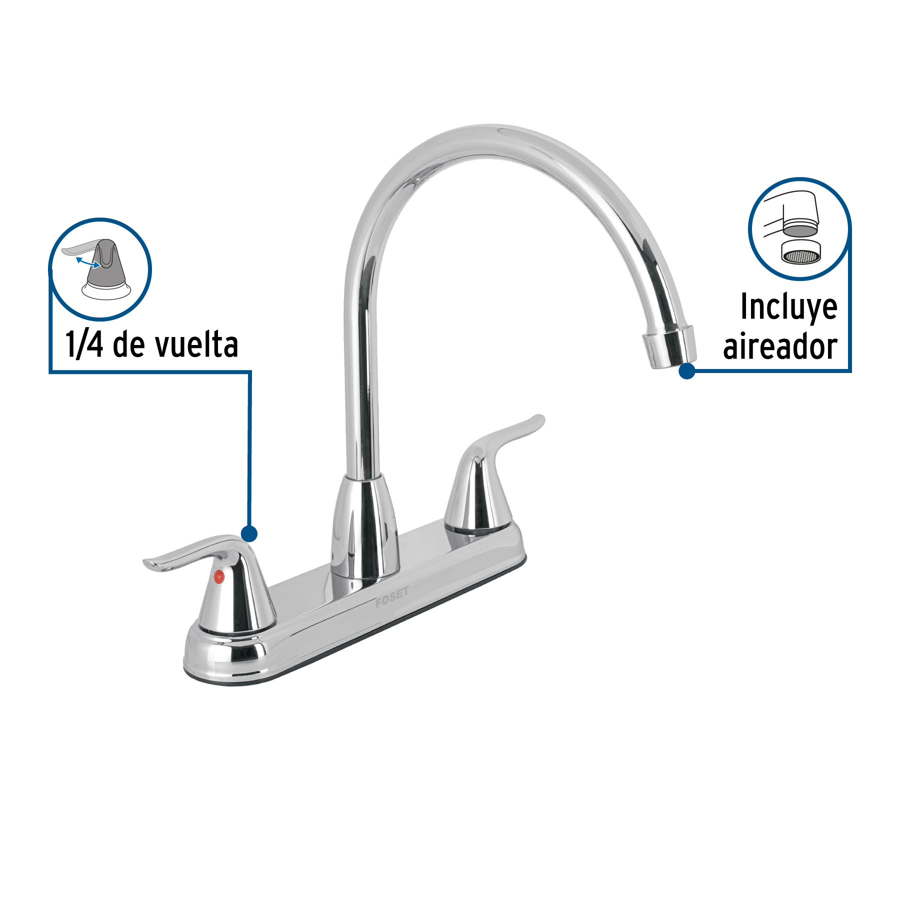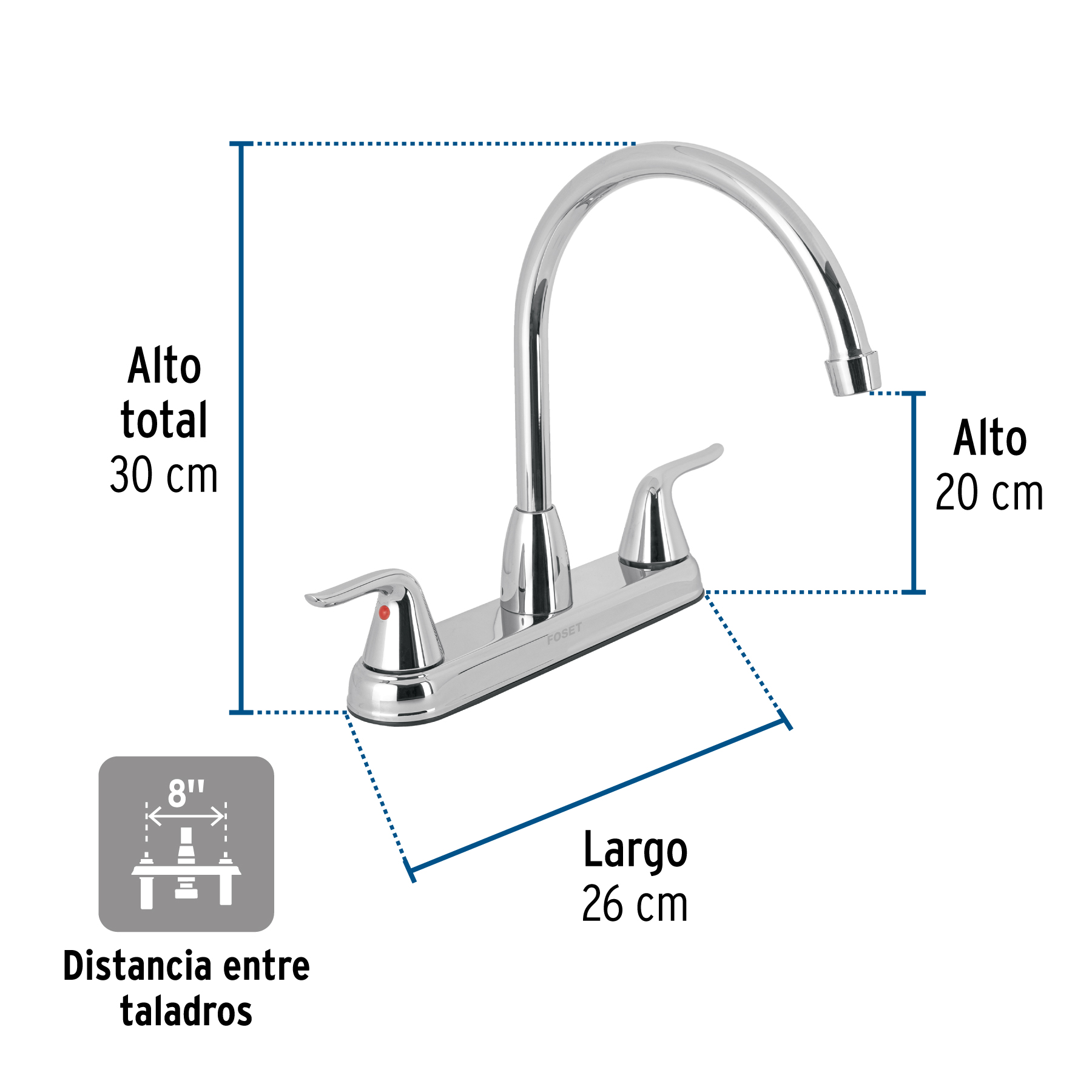 Mezcladora fregadero 8" cromo, c. largo, palanca, FOSET AERO
