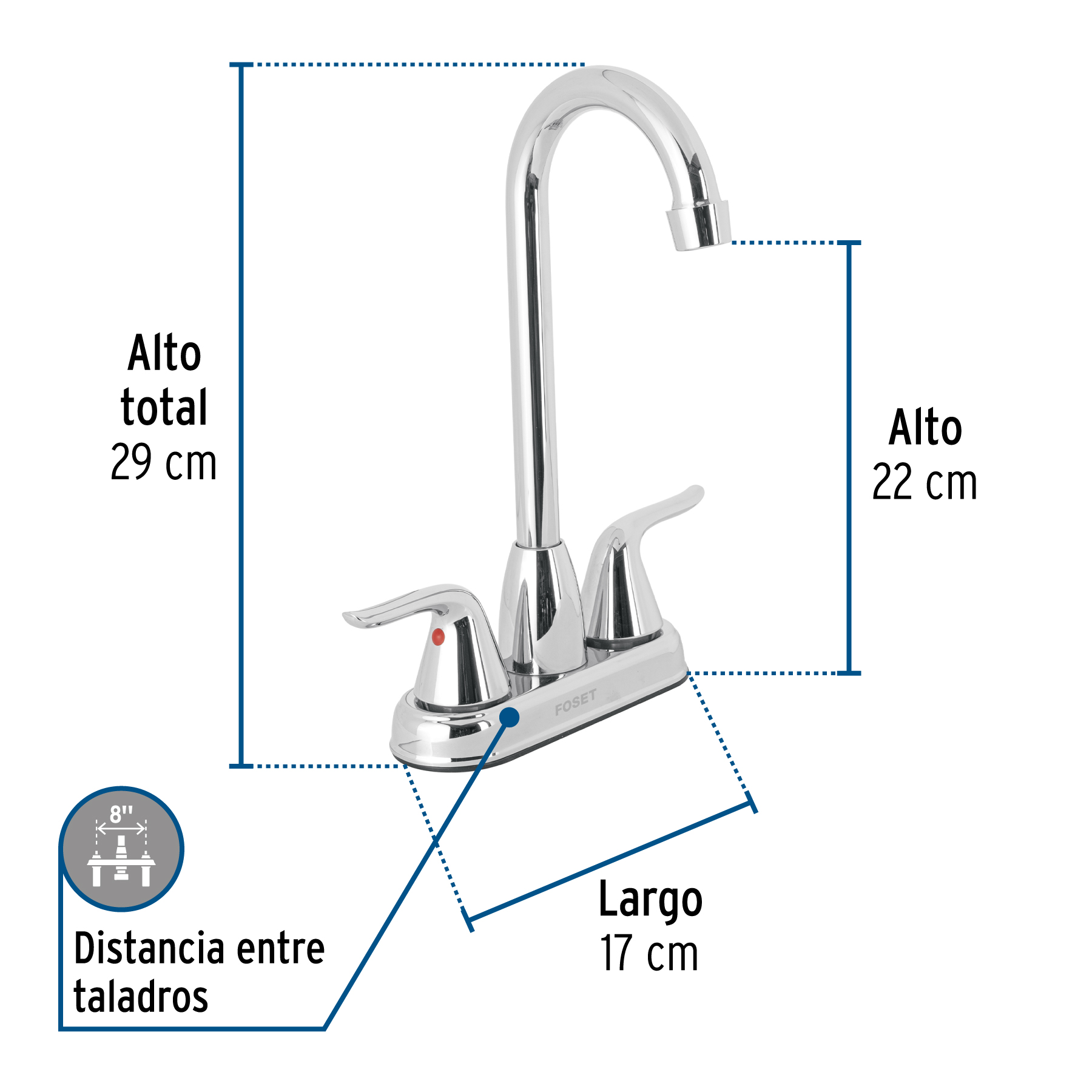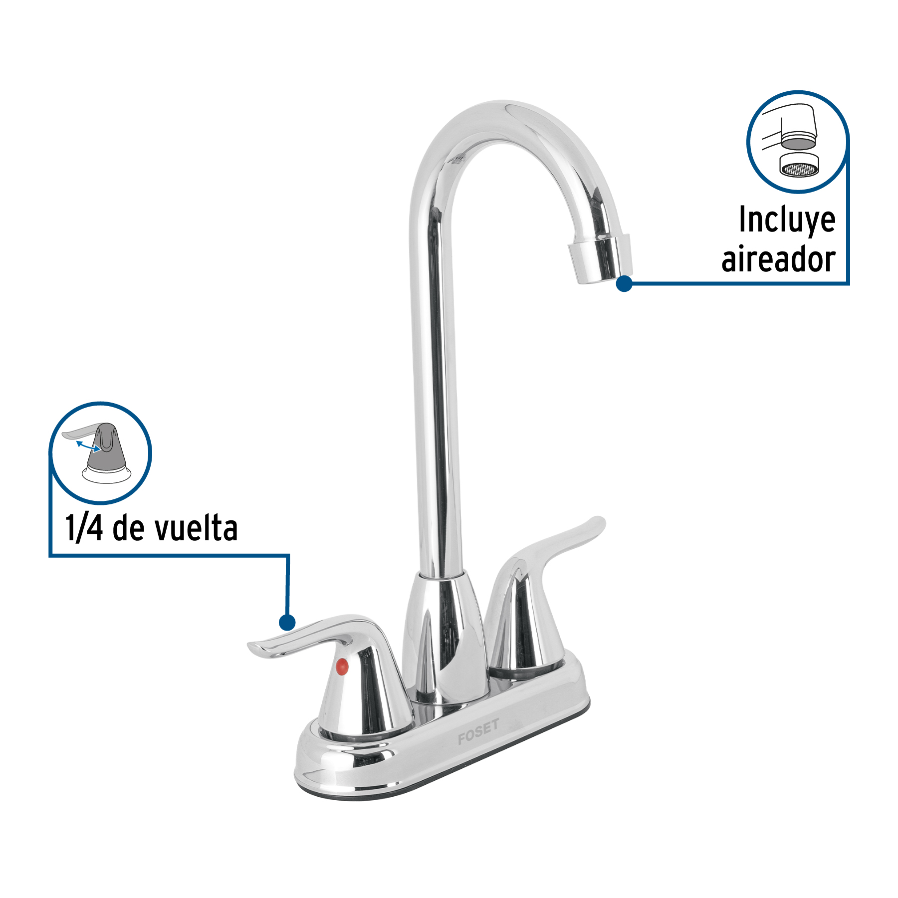 Mezcladora lavabo 4" cromo, tipo bar, palanca, FOSET AERO