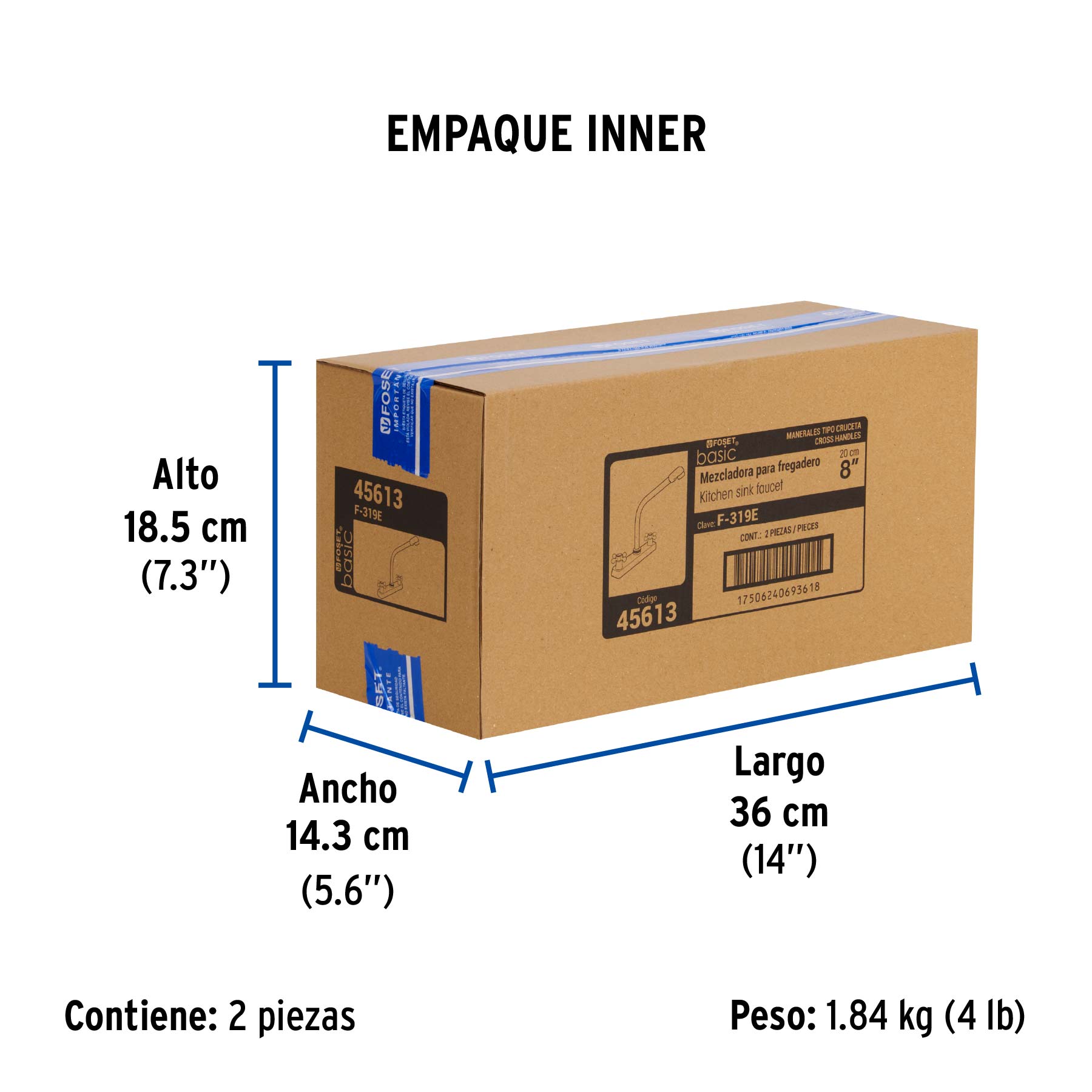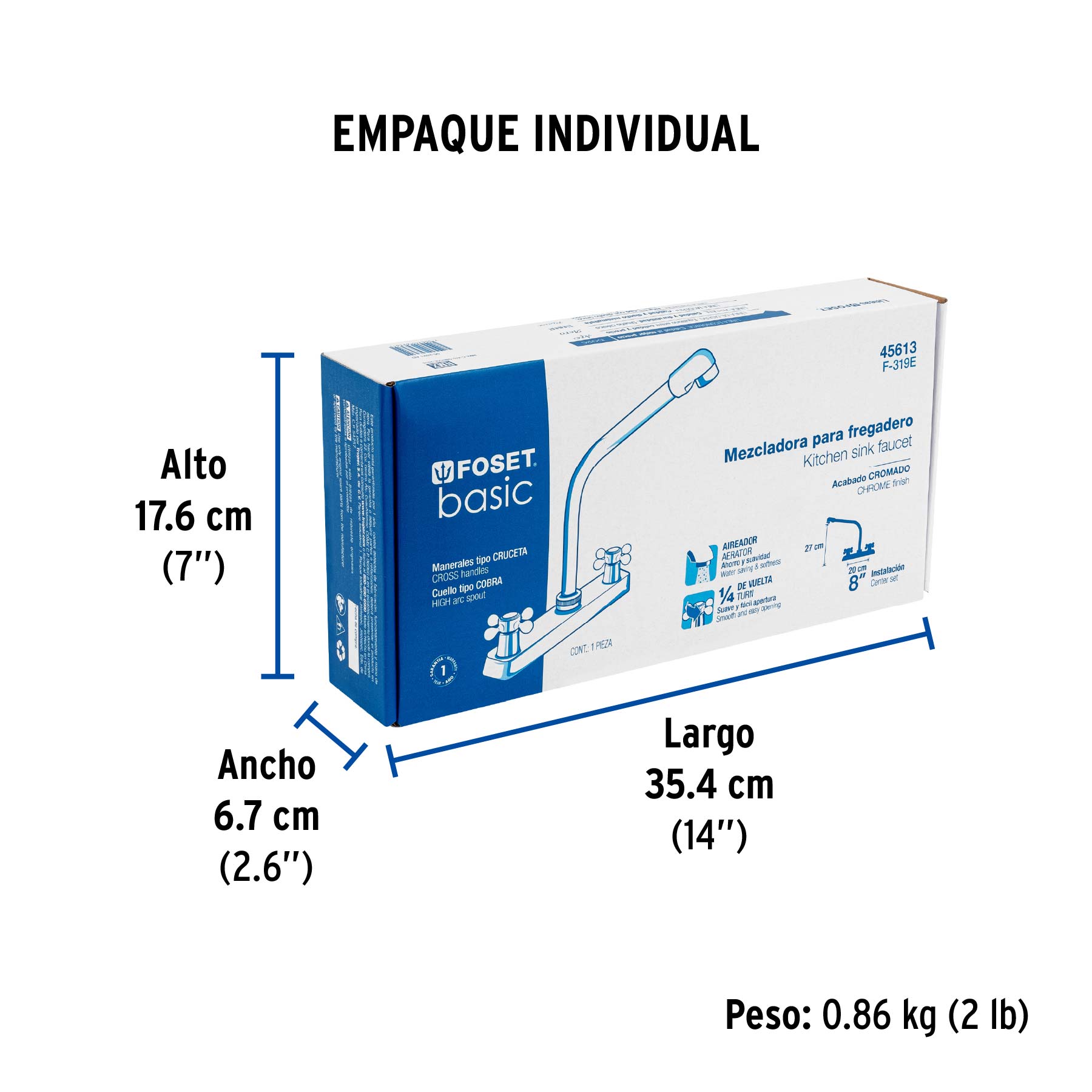 Mezcladora 8" fregadero cromo, cuello cobra, cruceta, BASIC