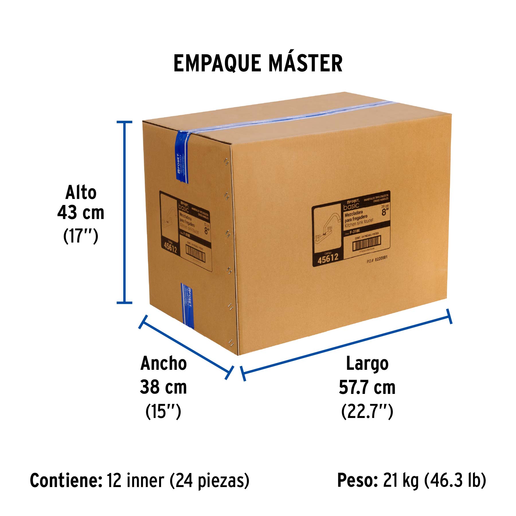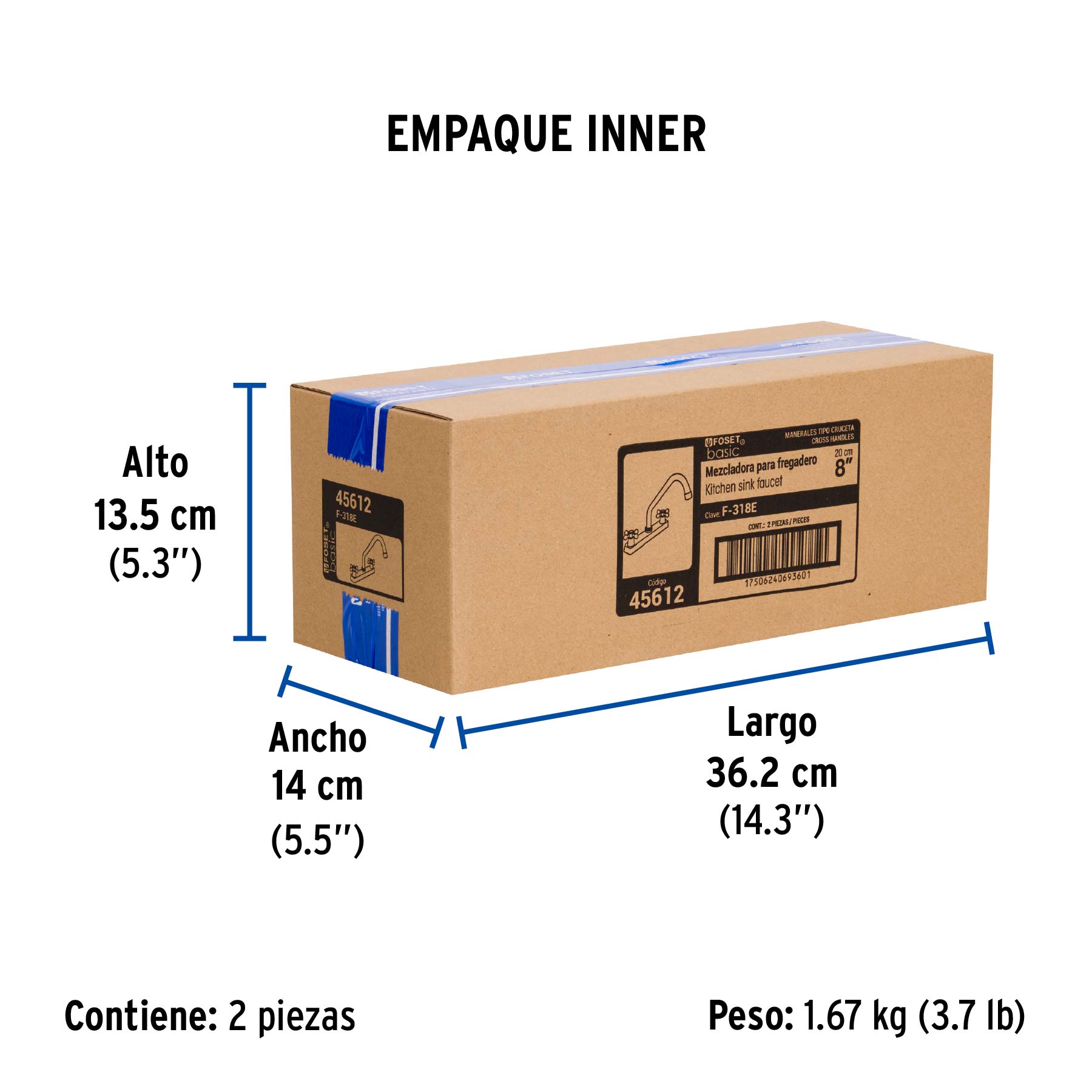 Distancia entre taladros | 8" |