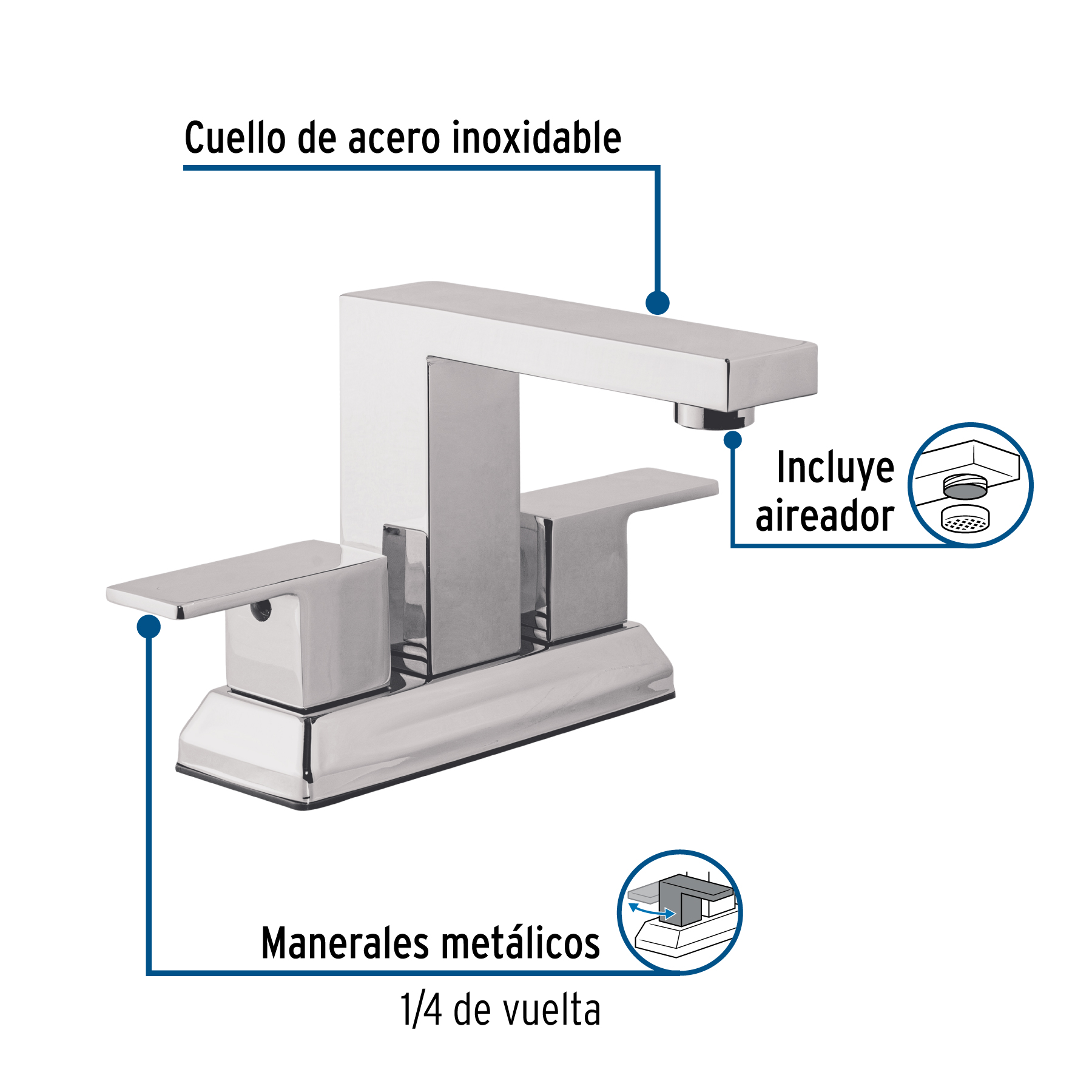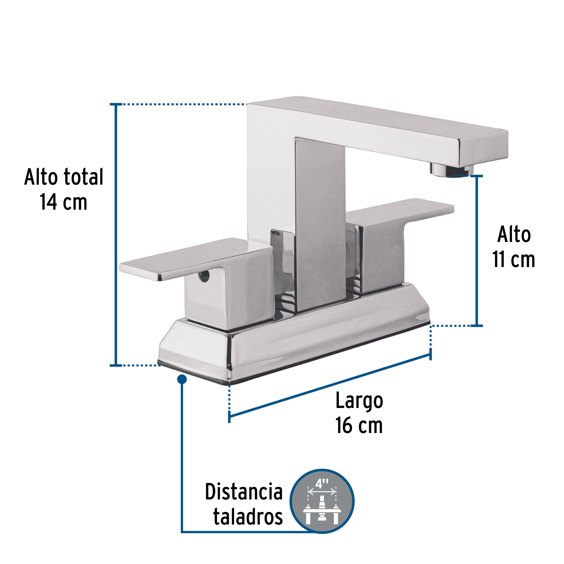 Mezcladora para lavabo 4", cromo, FOSET KUBO