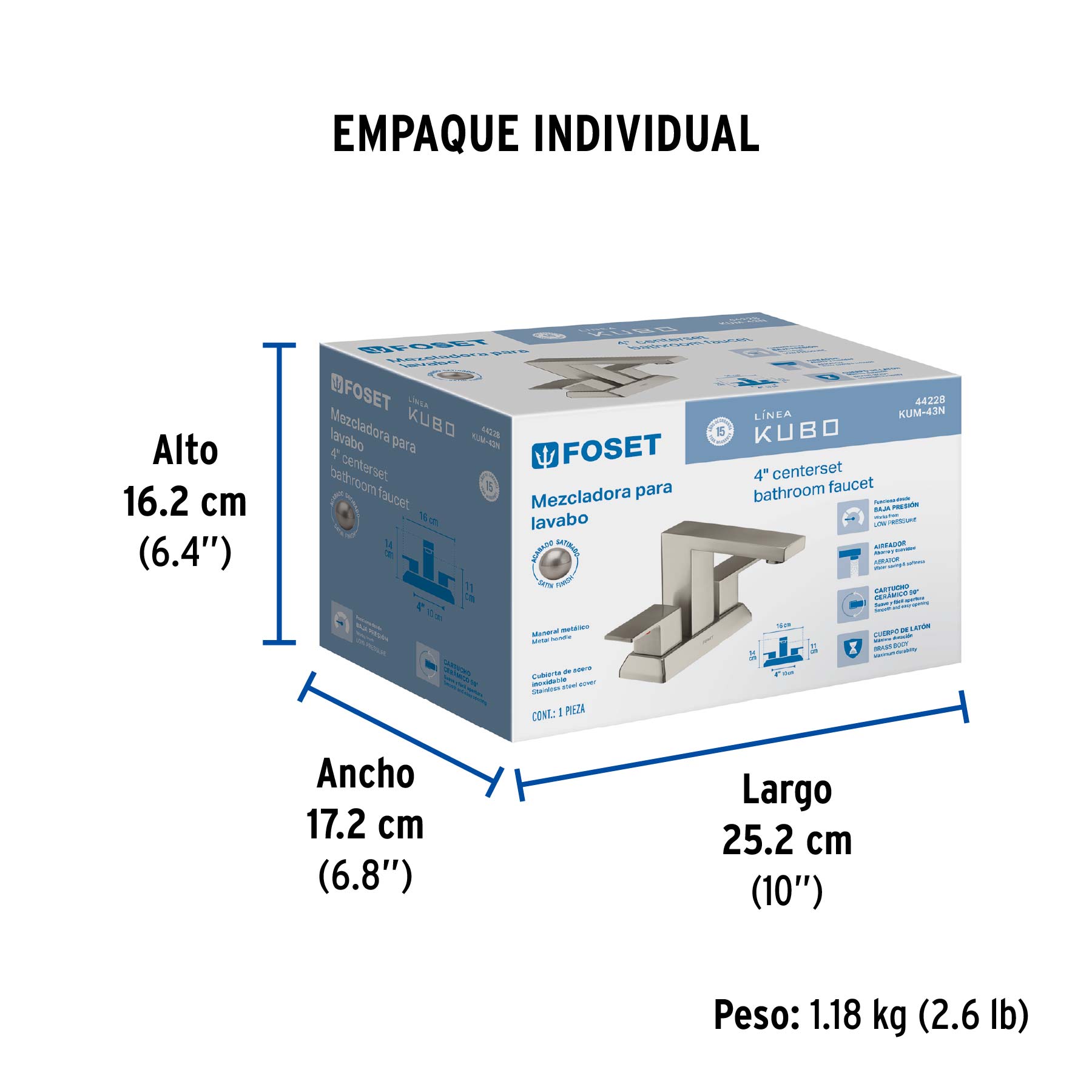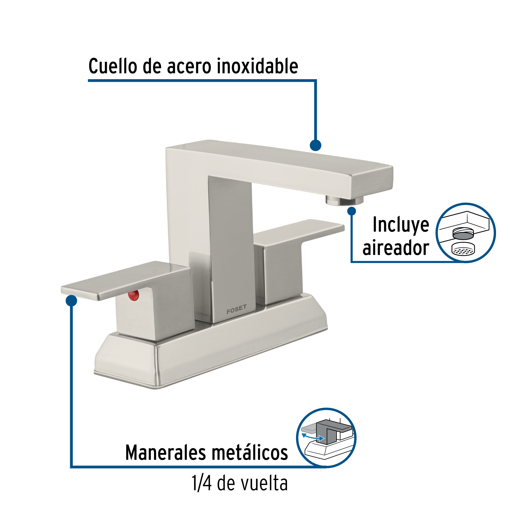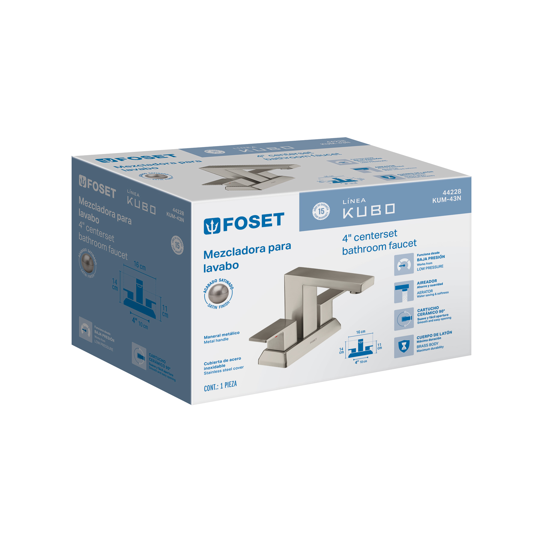 Mezcladora para lavabo 4", satín, FOSET KUBO