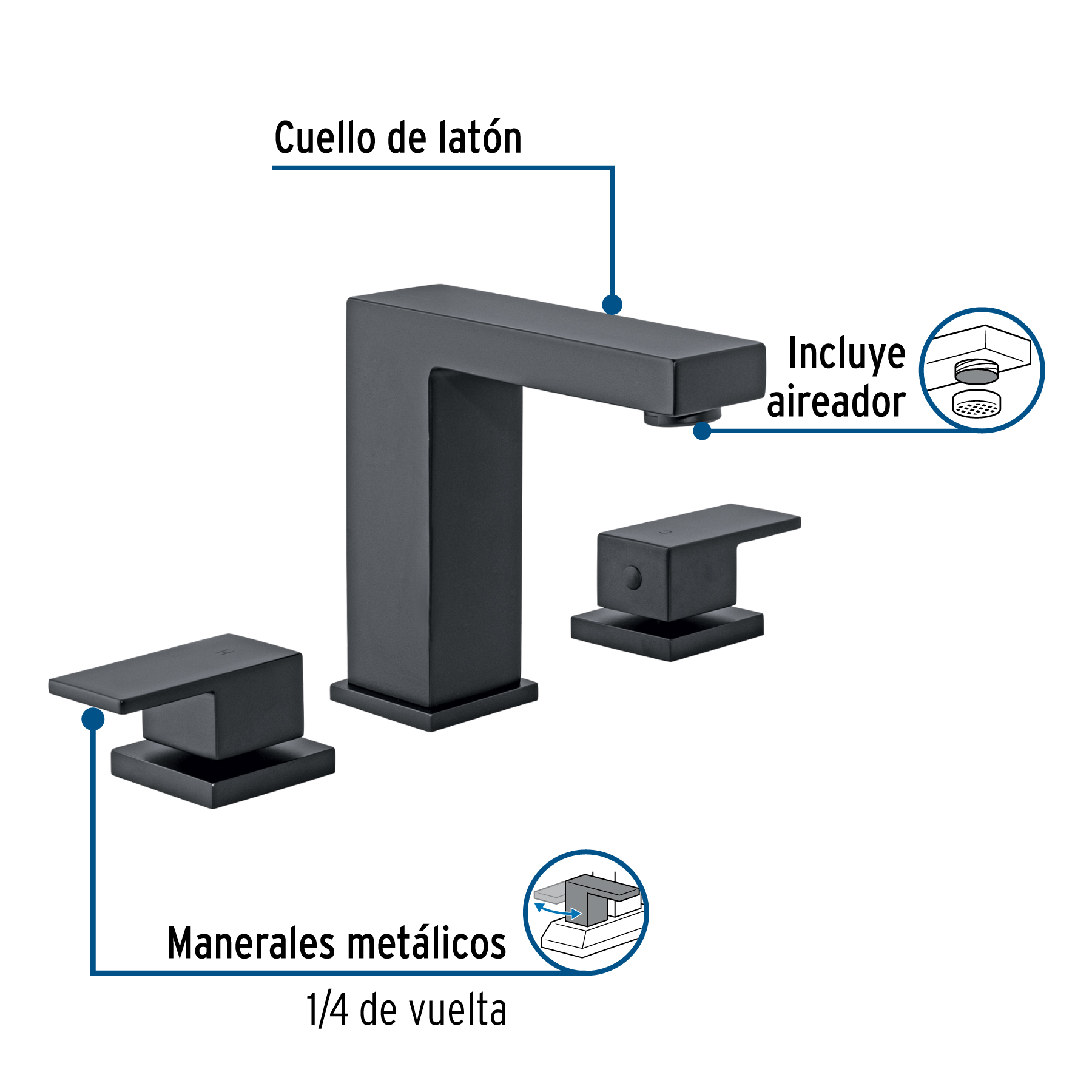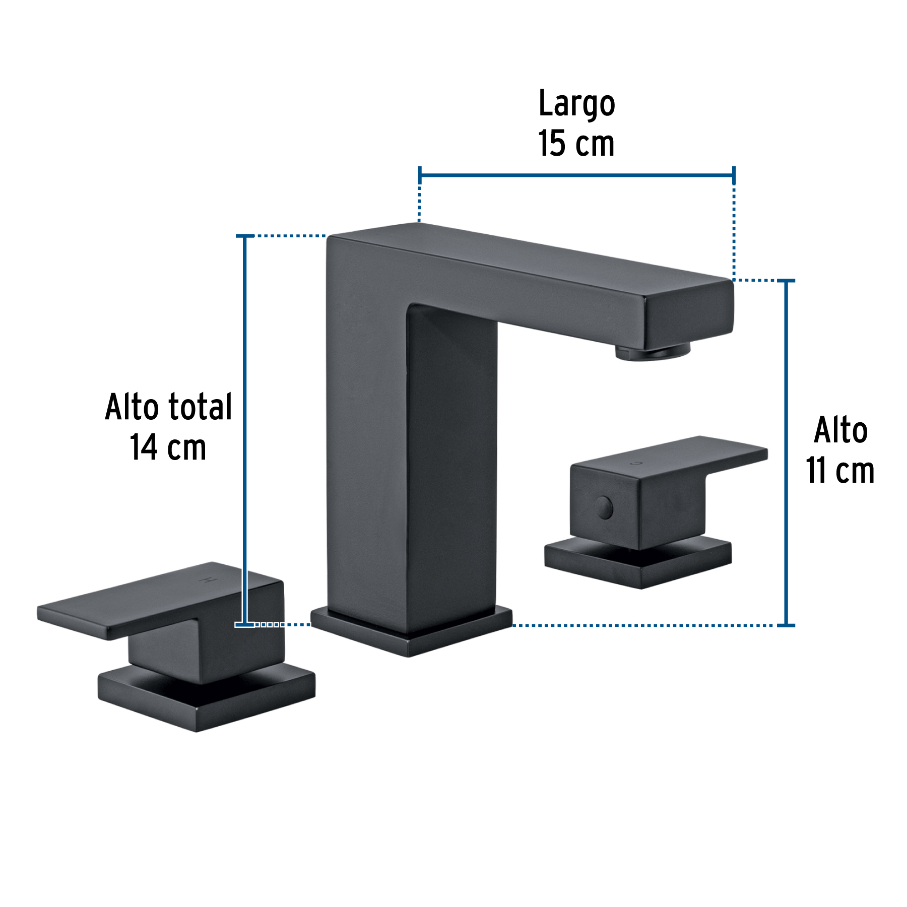Mezcladora para lavabo taladros separados, negro, FOSET KUBO