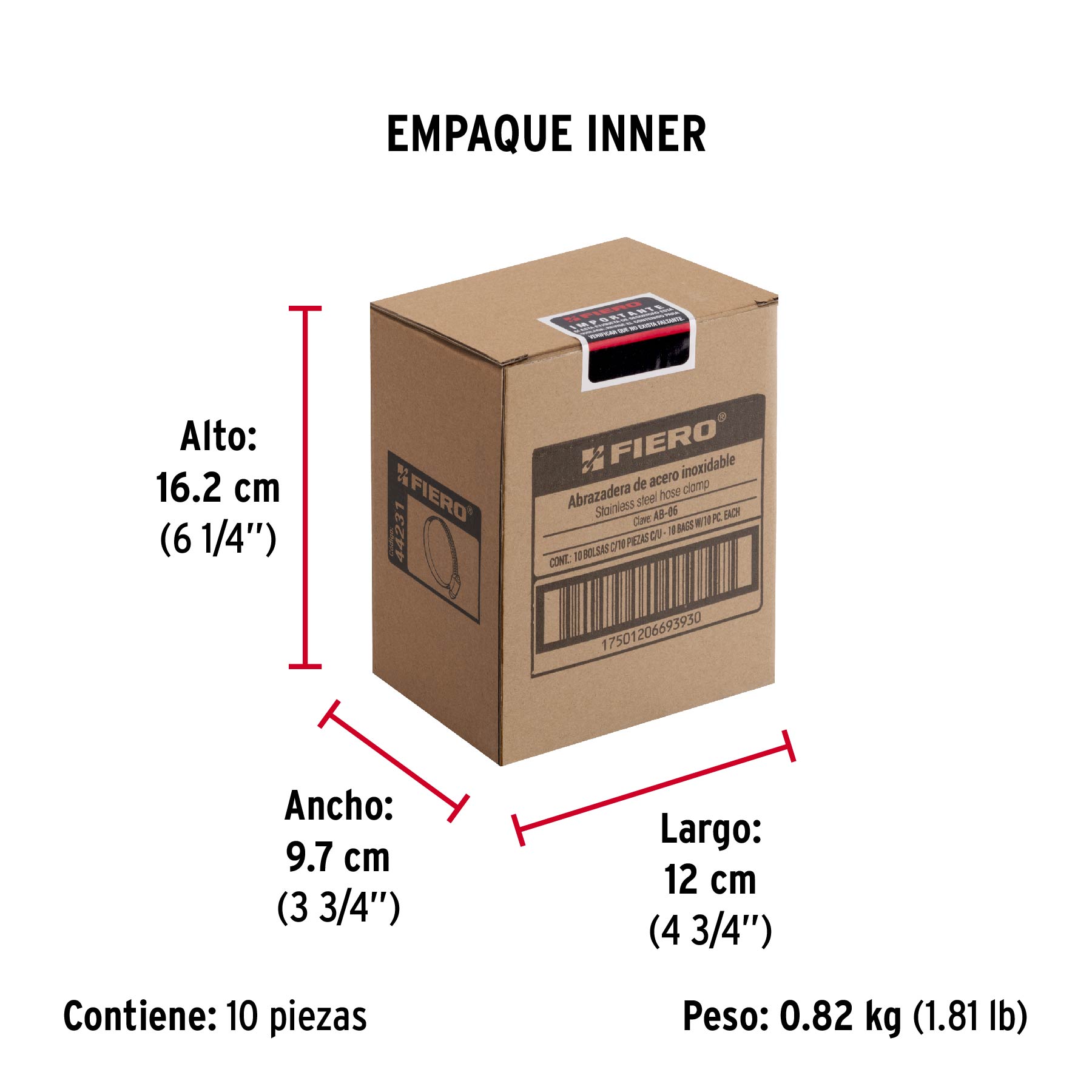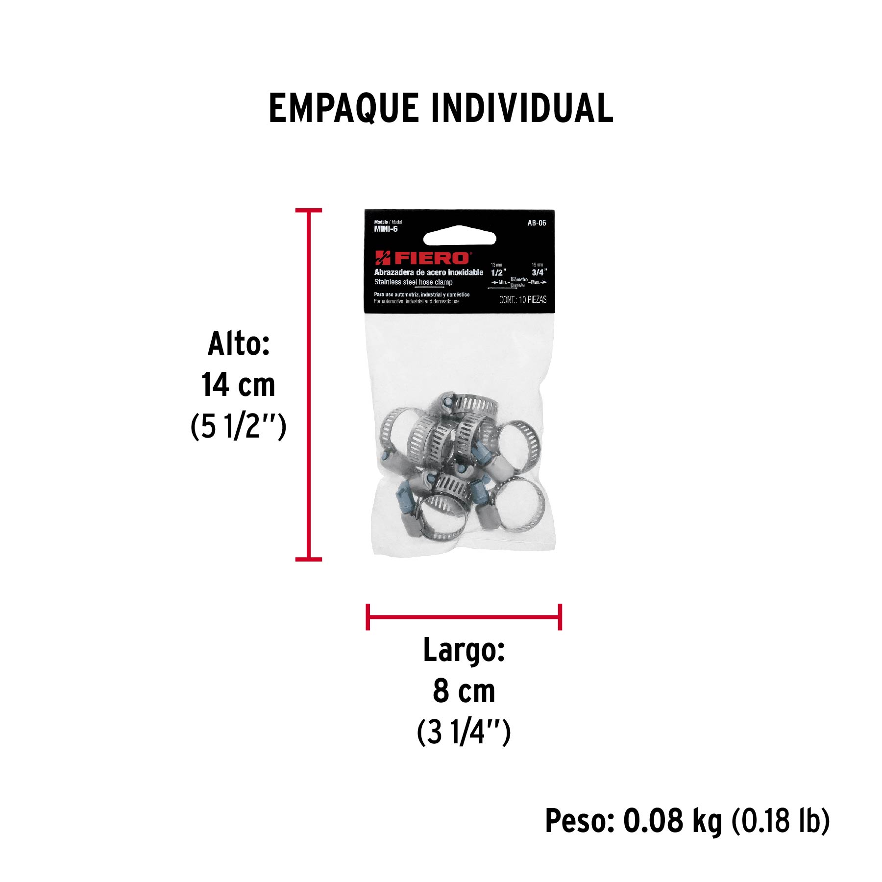 Bolsa con 10 abrazaderas mini, sin fin #6, 1/2 - 3/4", FIERO