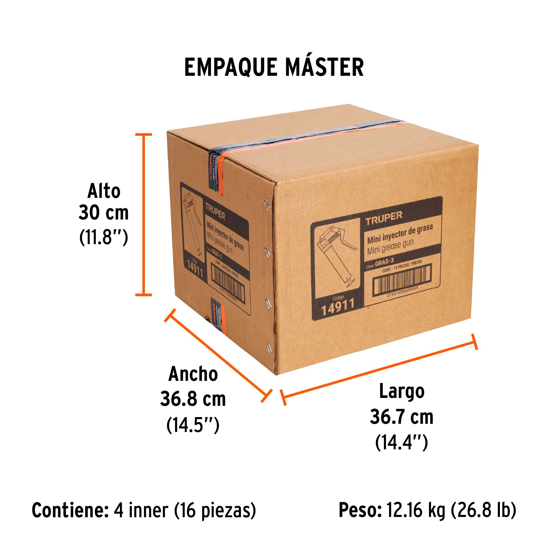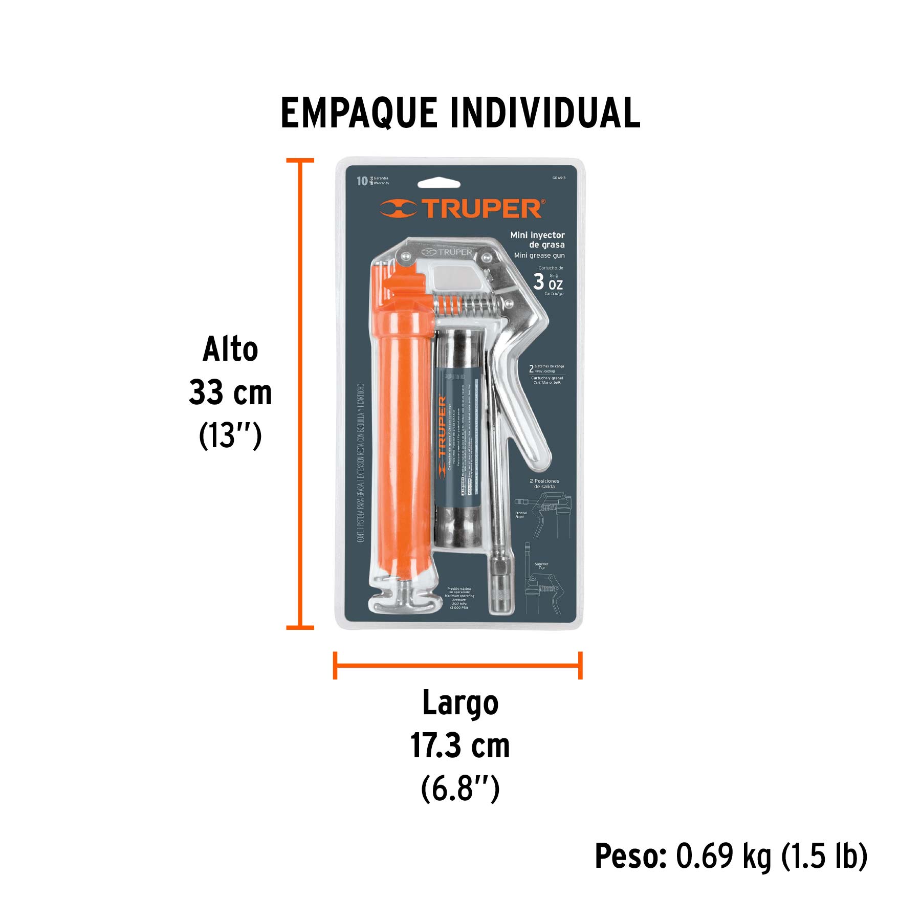 Mini inyector de grasa 3 oz, 3000 PSI, TRUPER