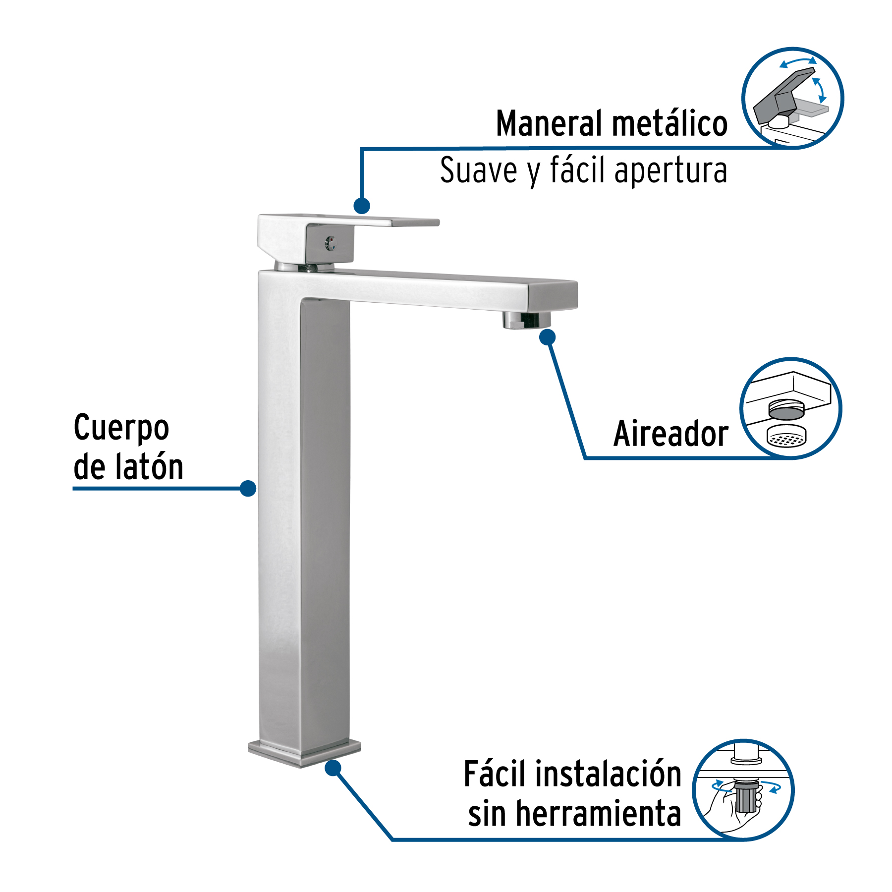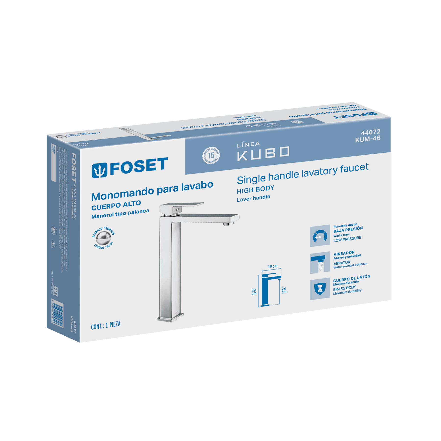 Monomando alto para lavabo, cromo, FOSET KUBO
