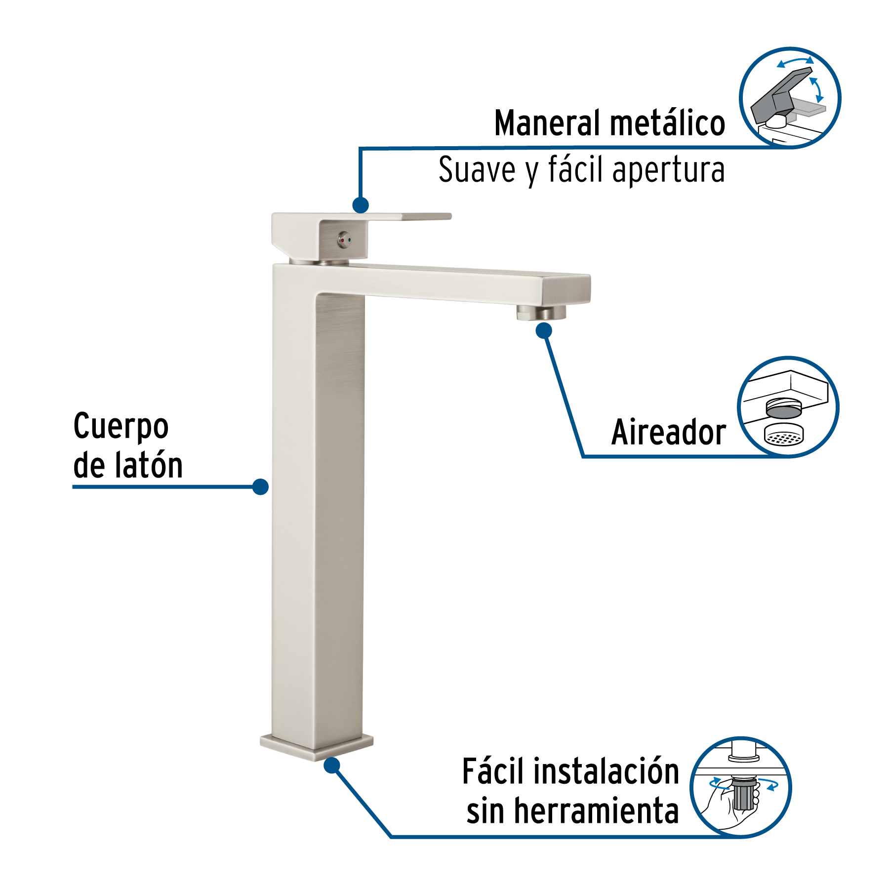 Monomando alto para lavabo, satín, FOSET KUBO