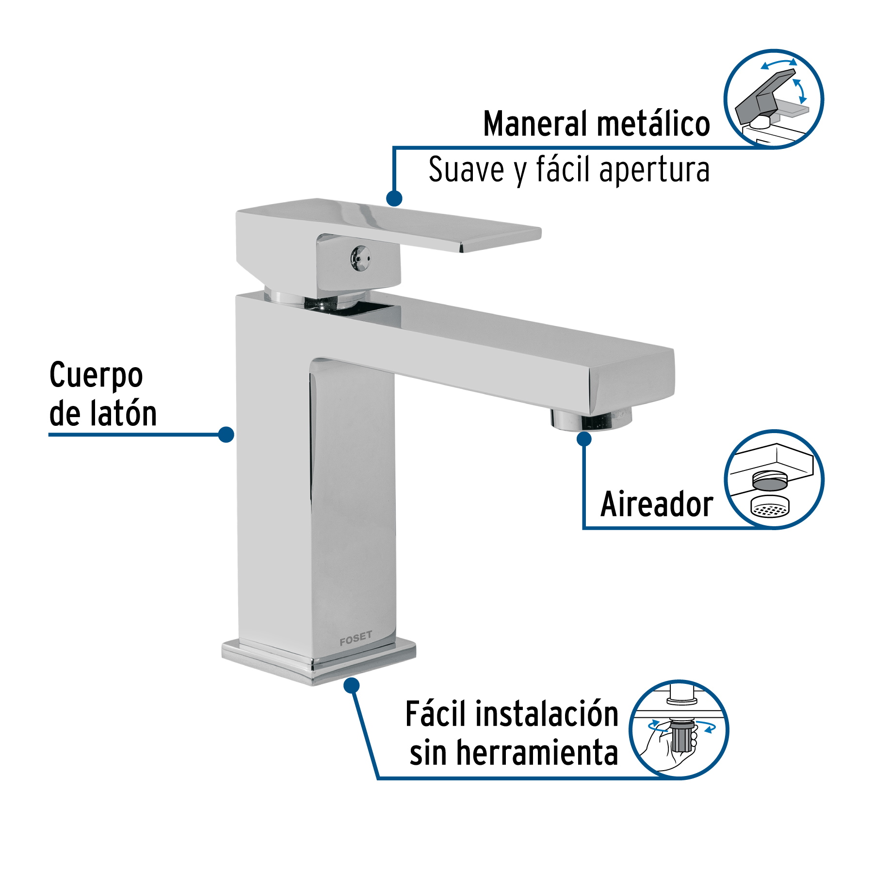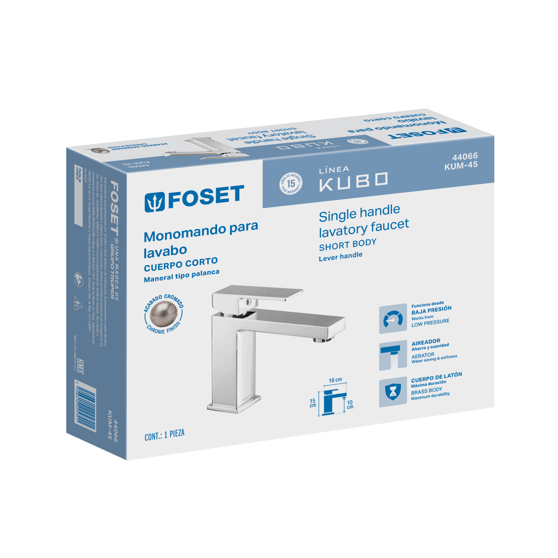 Monomando corto para lavabo, cromo, FOSET KUBO
