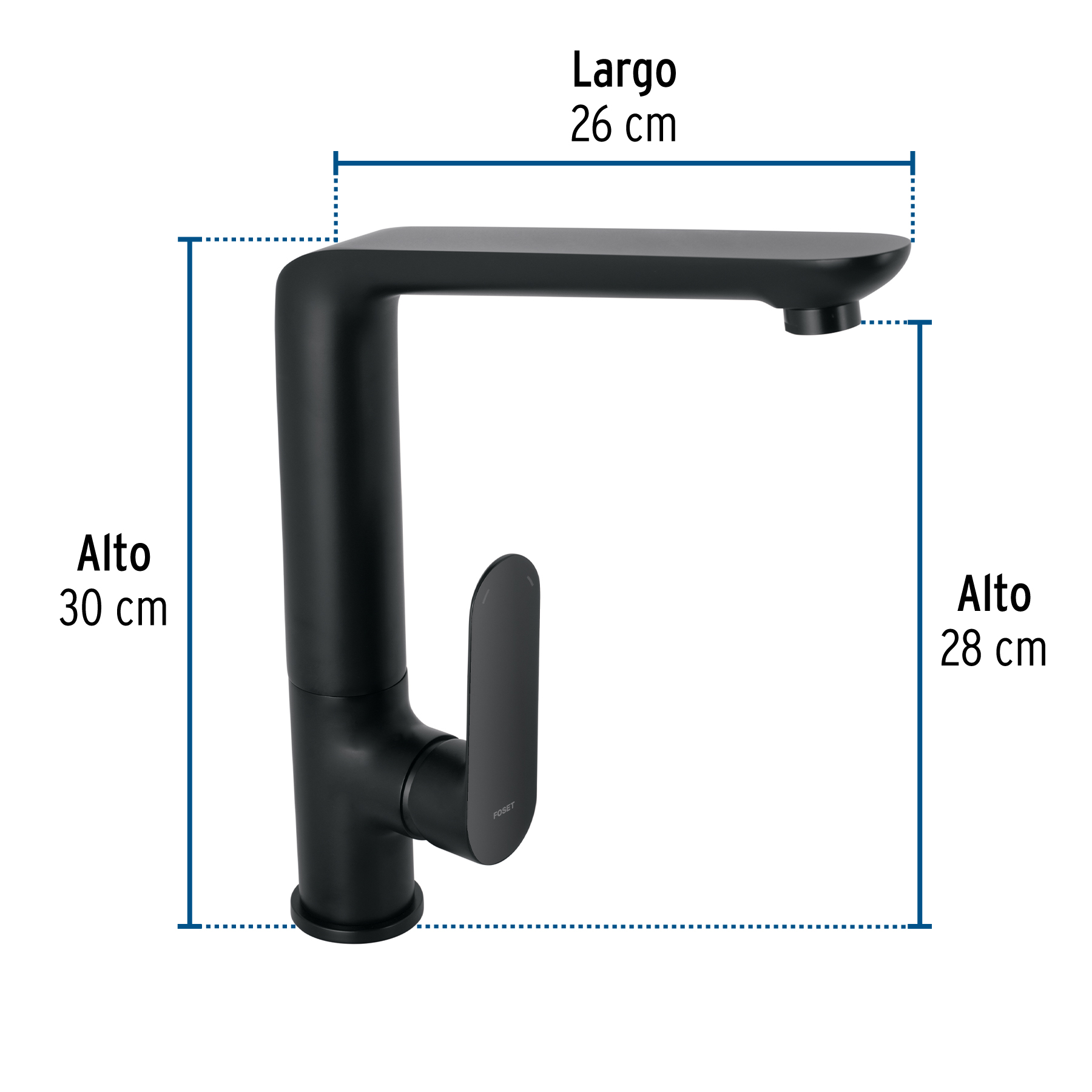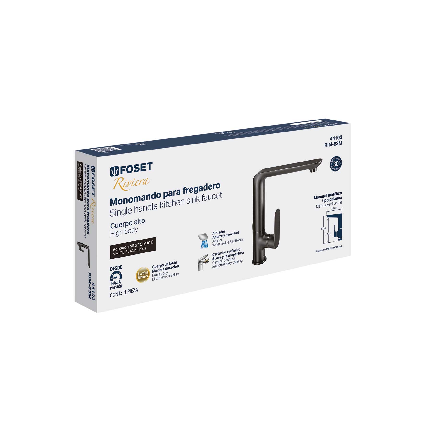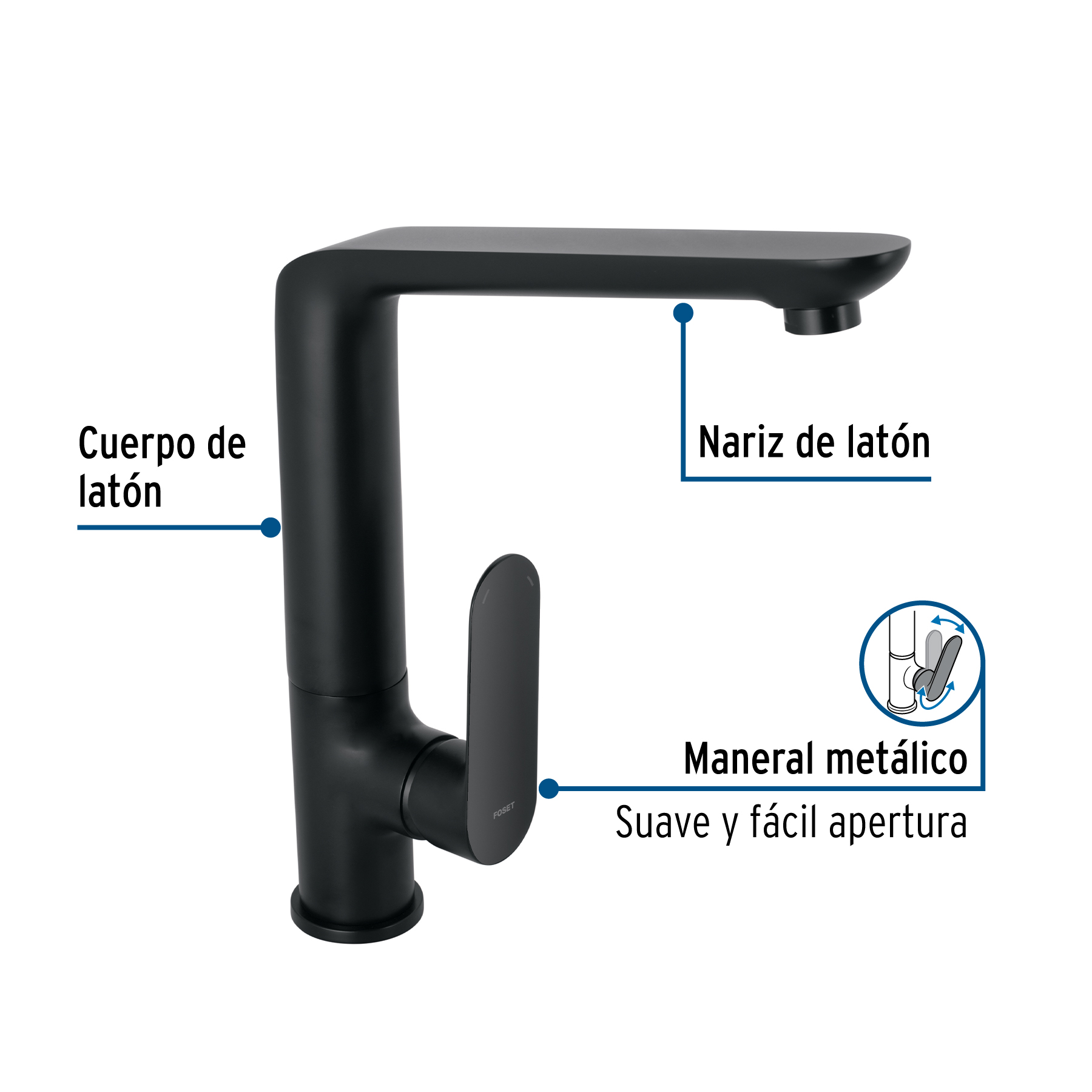 Monomando cuello alto para fregadero, negro, FOSET RIVIERA