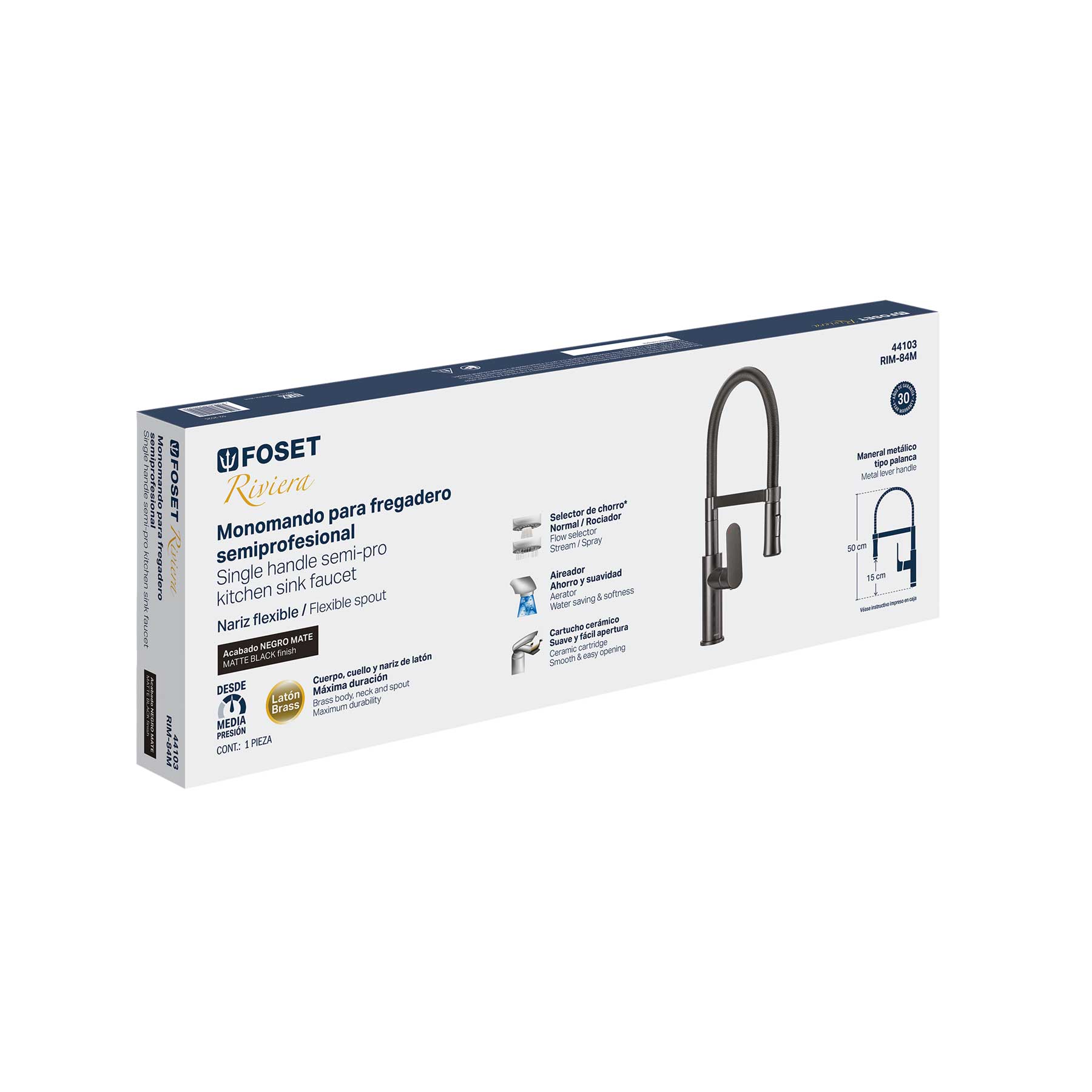 Monomando nariz flexible para fregadero, negro,FOSET RIVIERA