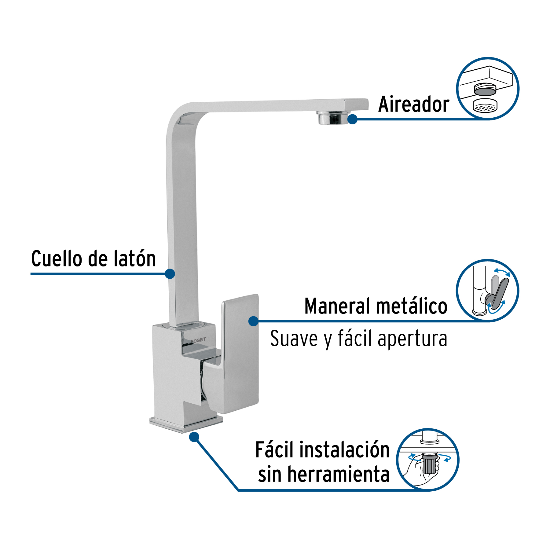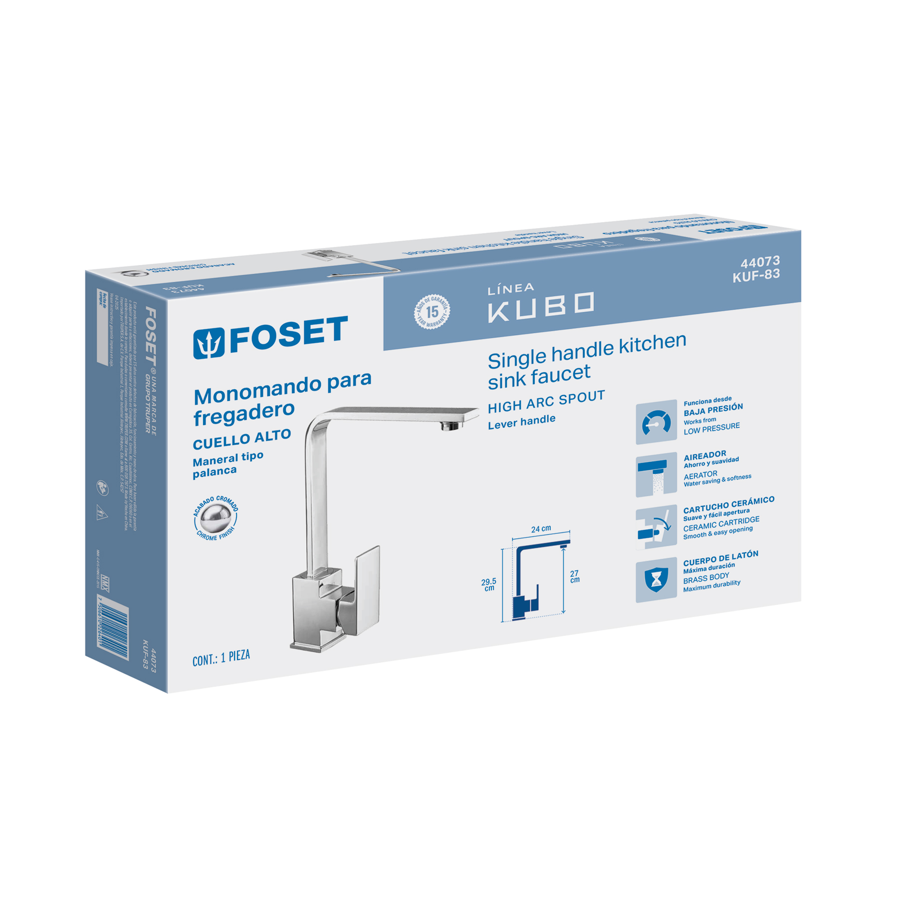 Monomando cuello alto para fregadero, cromo, FOSET KUBO