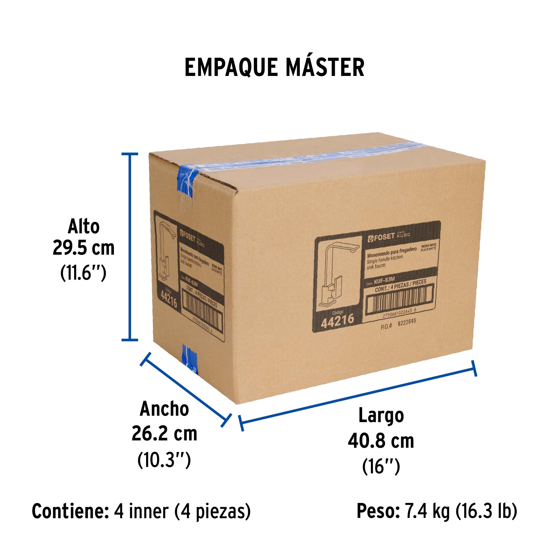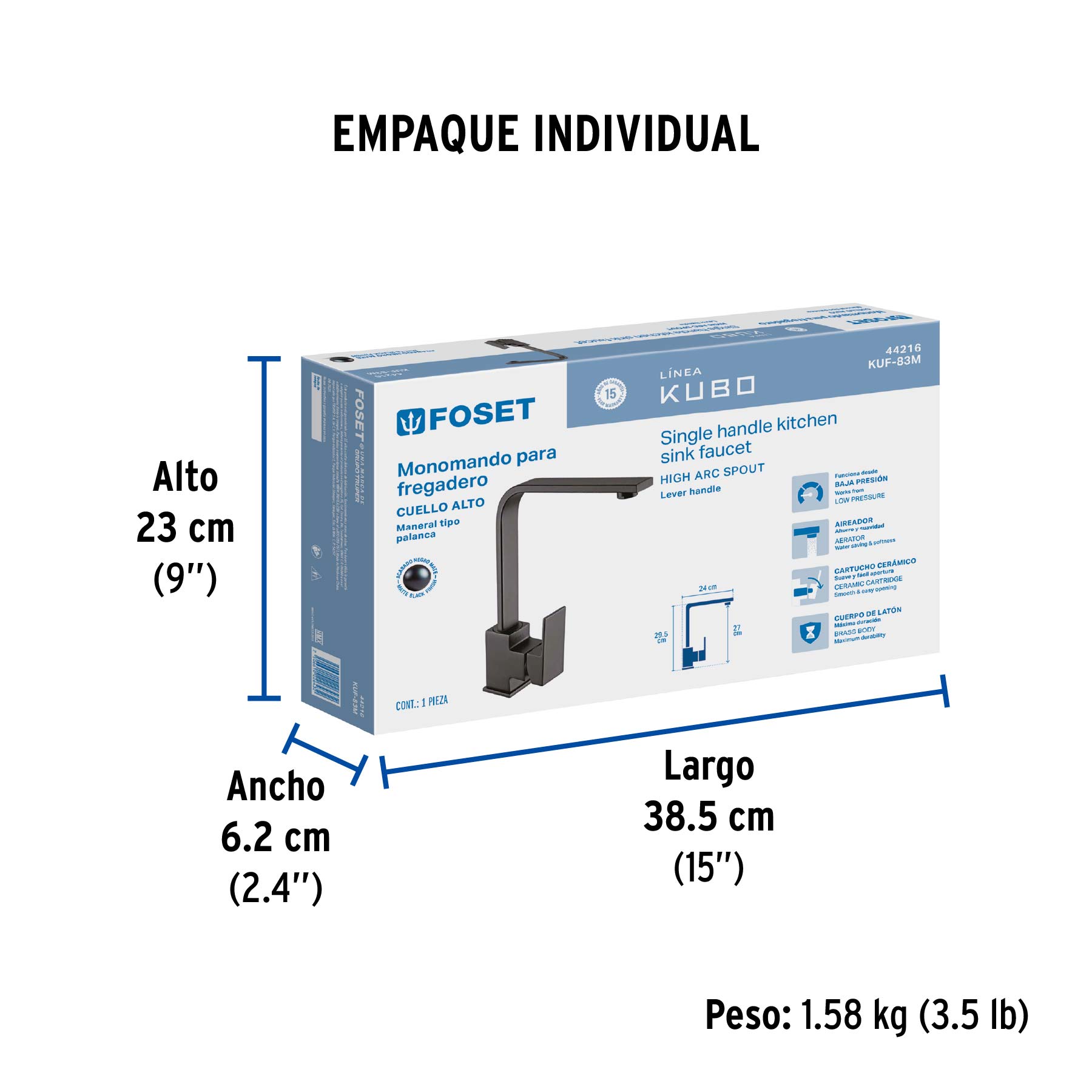 Monomando cuello alto para fregadero, negro, FOSET KUBO
