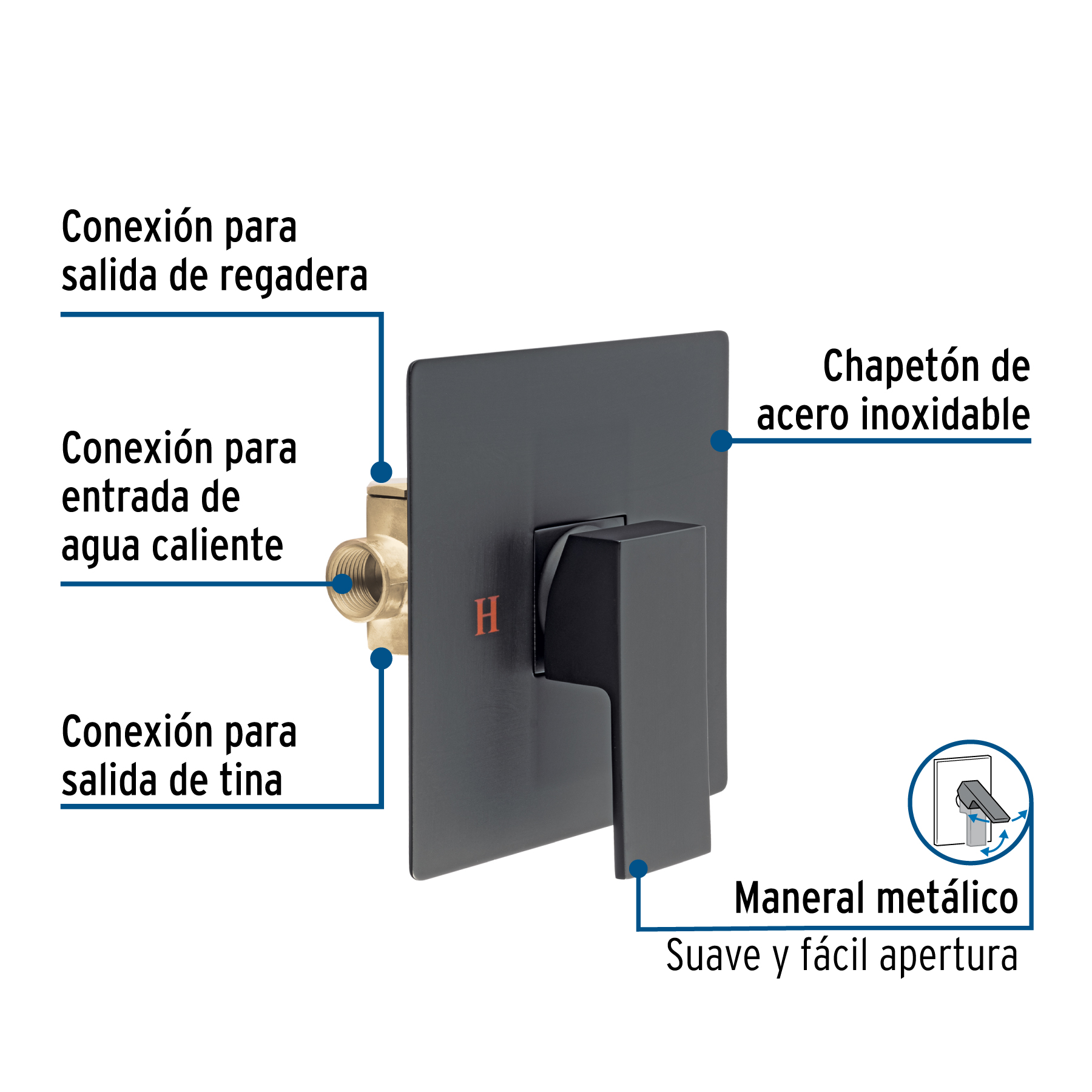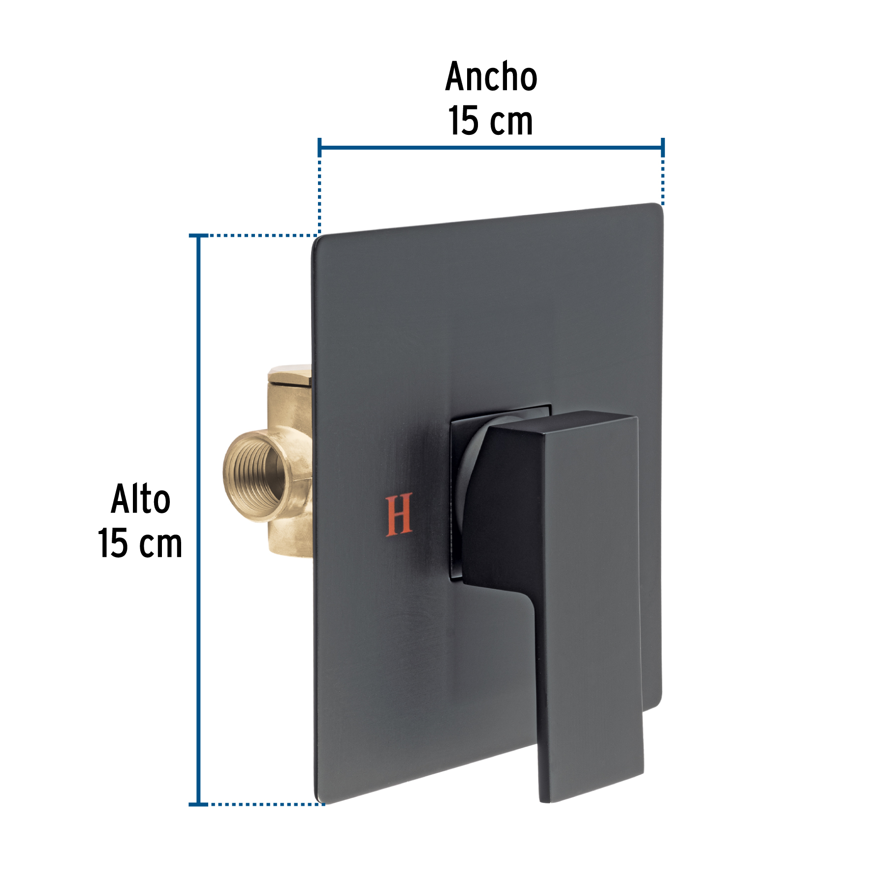 Monomando para regadera sin desviador, negro, FOSET KUBO