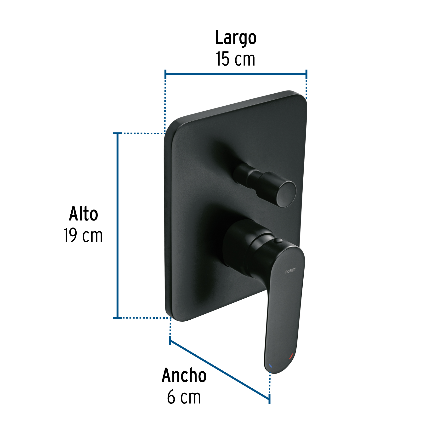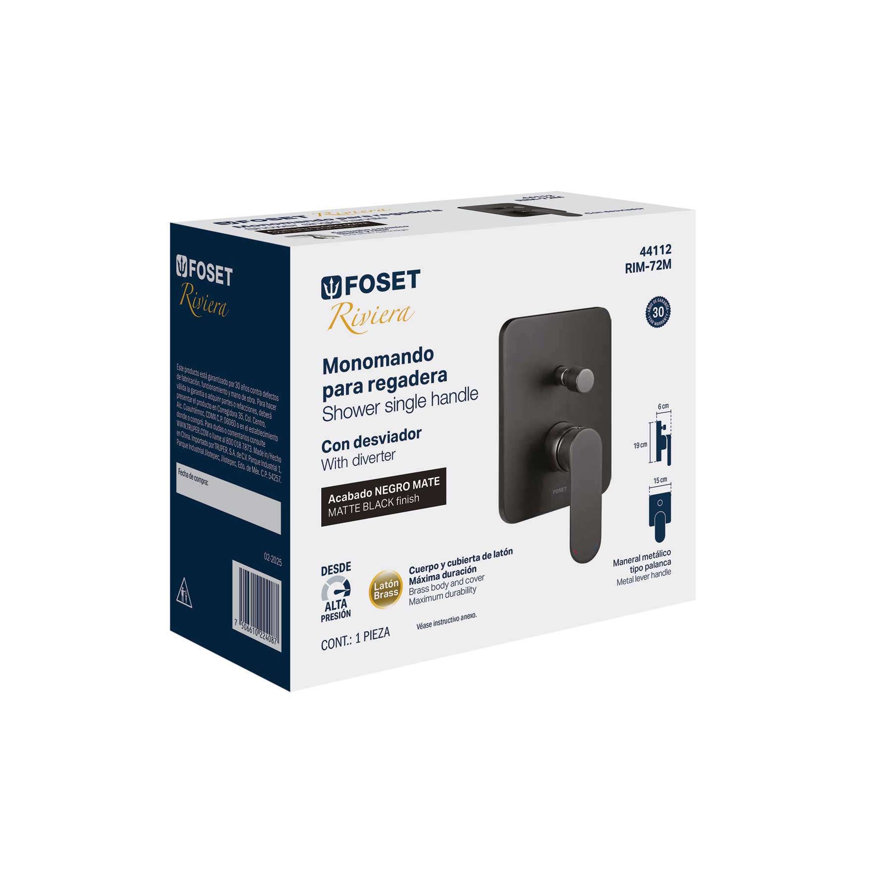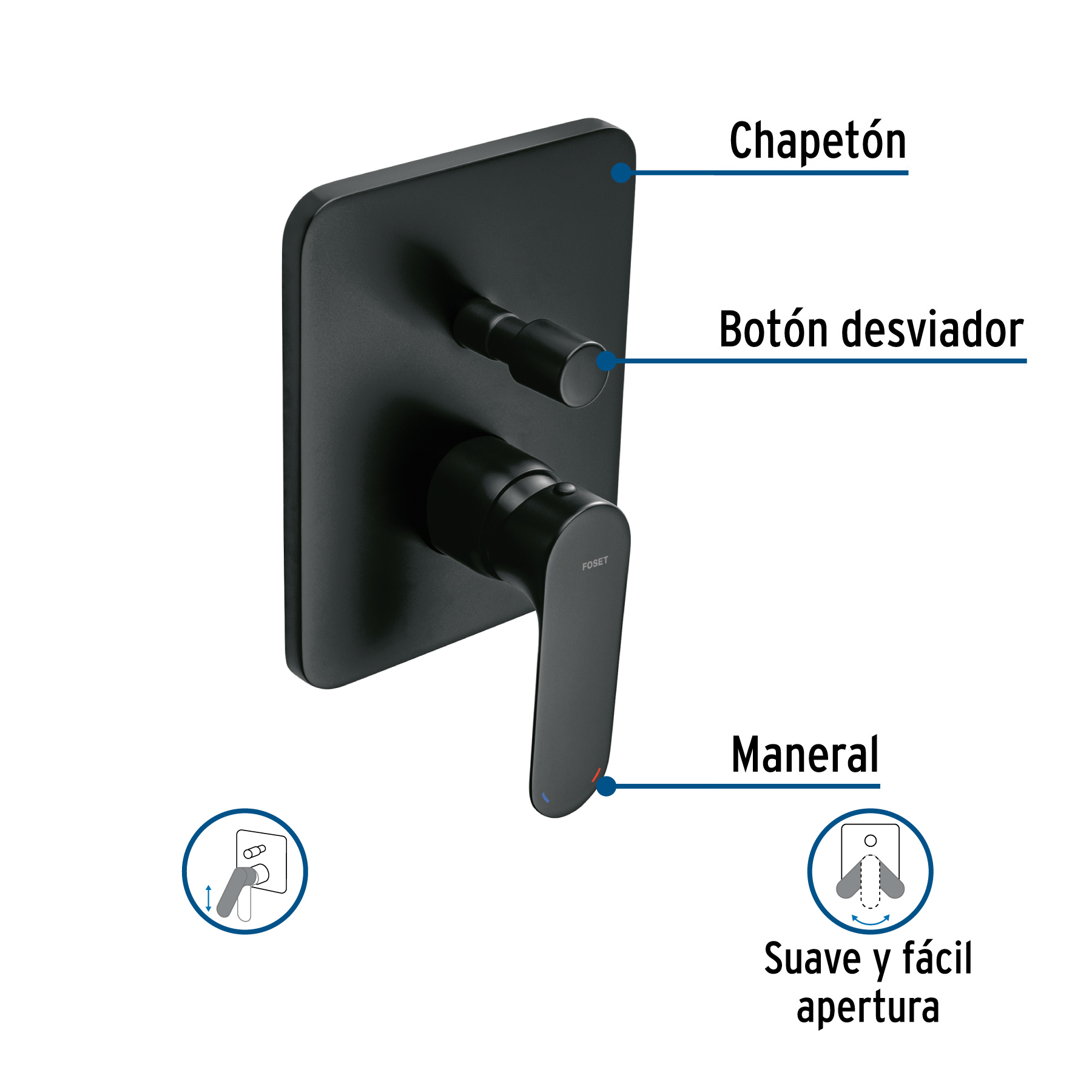 Monomando para regadera con desviador, negro, FOSET RIVIERA