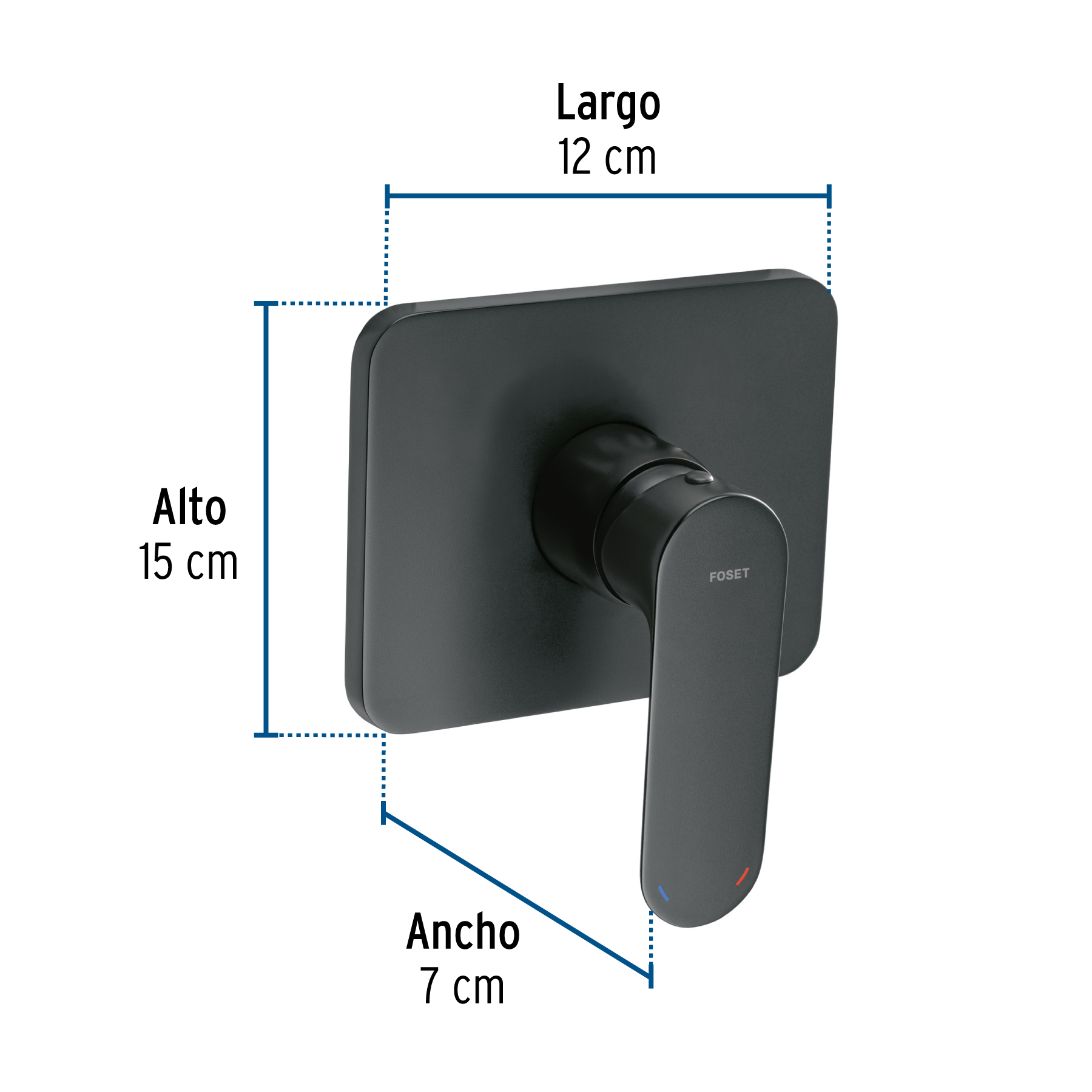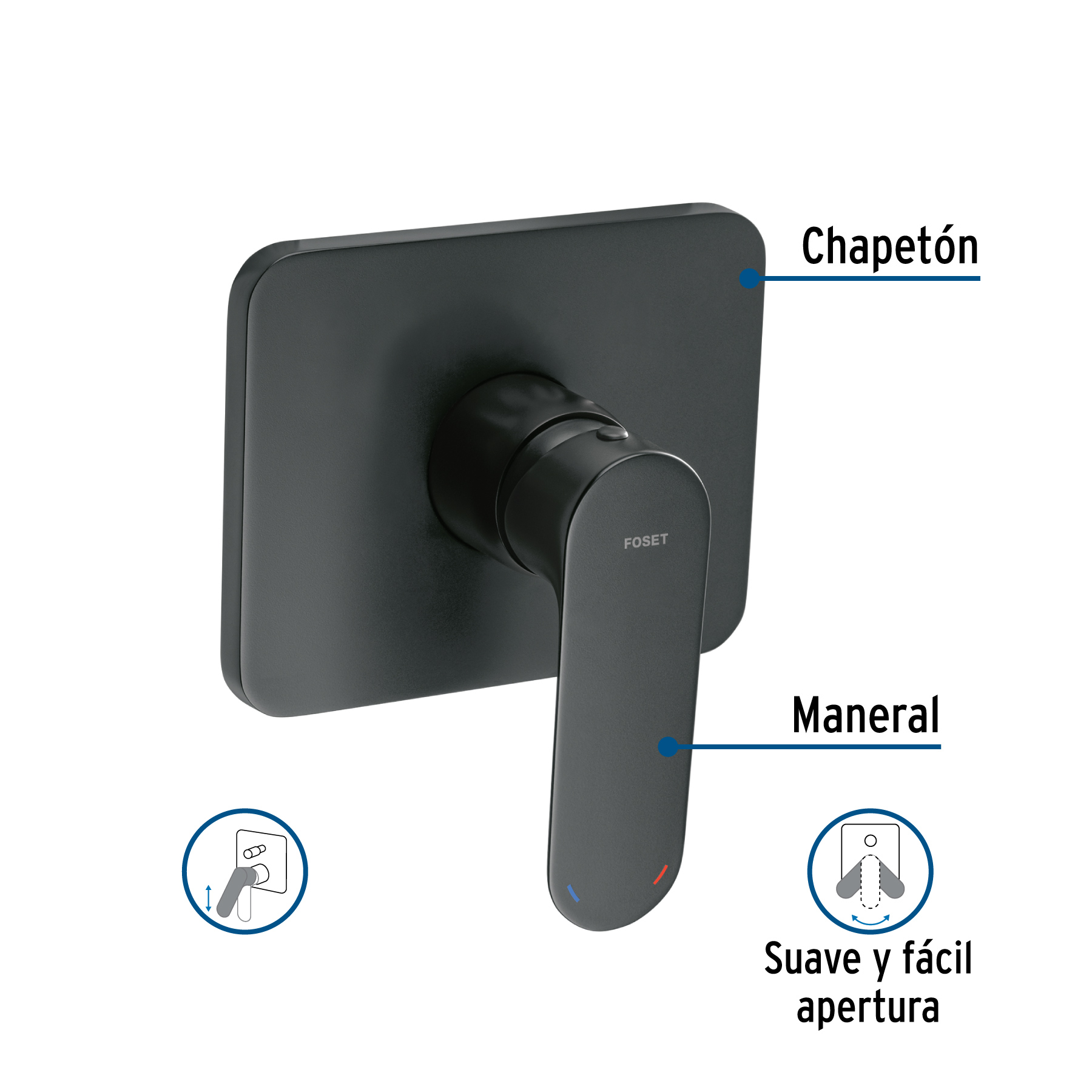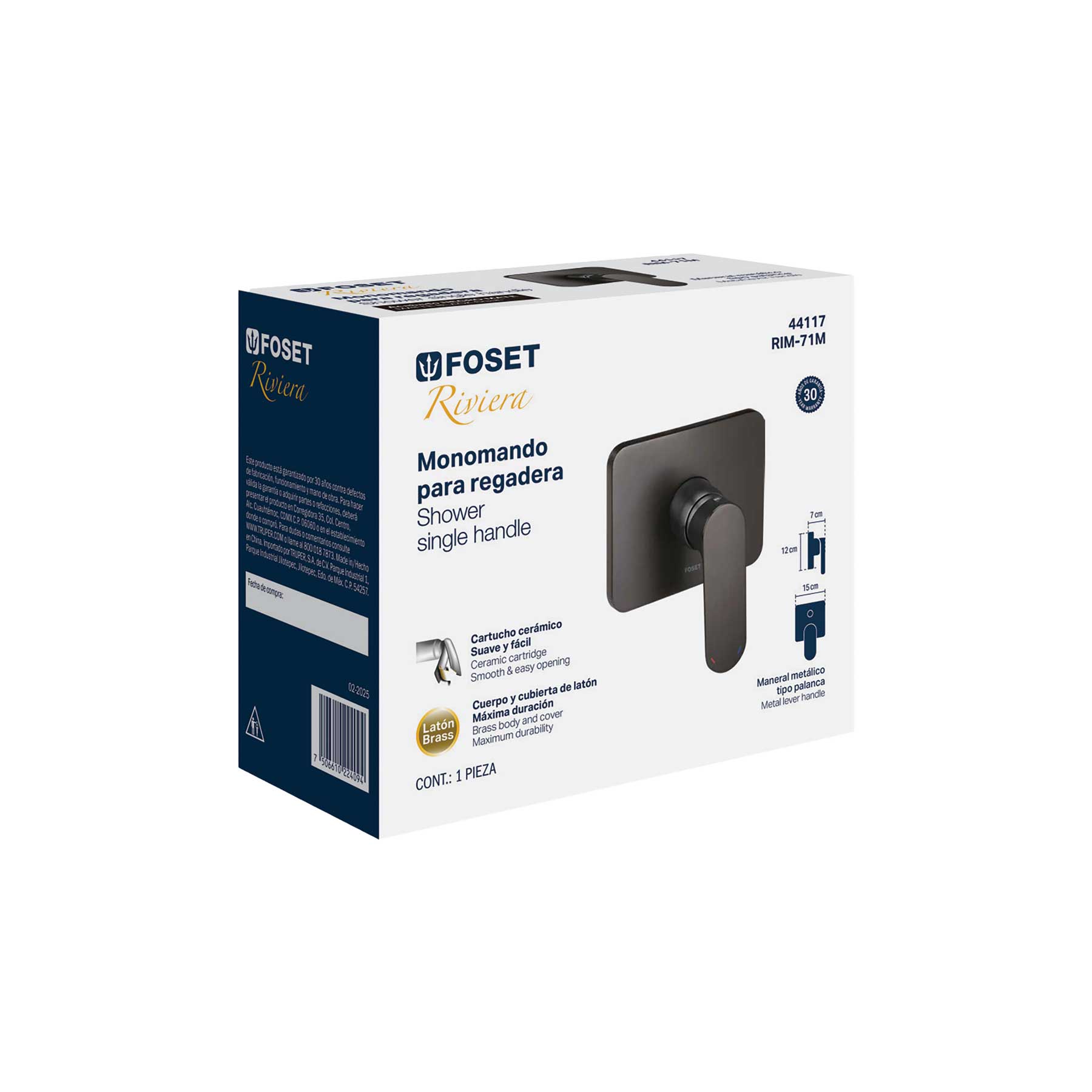 Monomando para regadera sin desviador, negro, FOSET RIVIERA