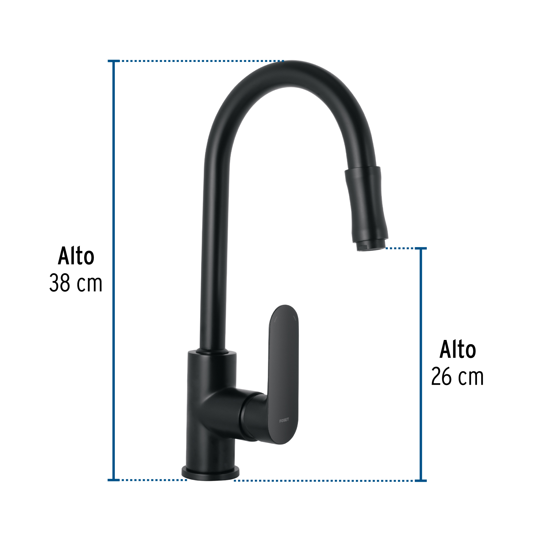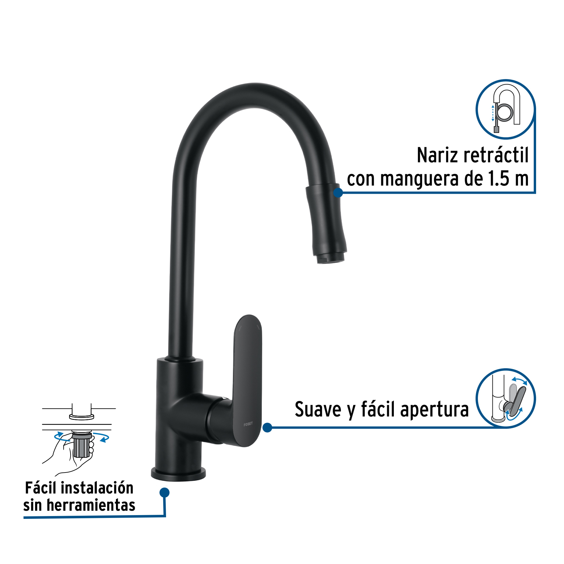 Monomando retráctil para fregadero, negro, FOSET RIVIERA
