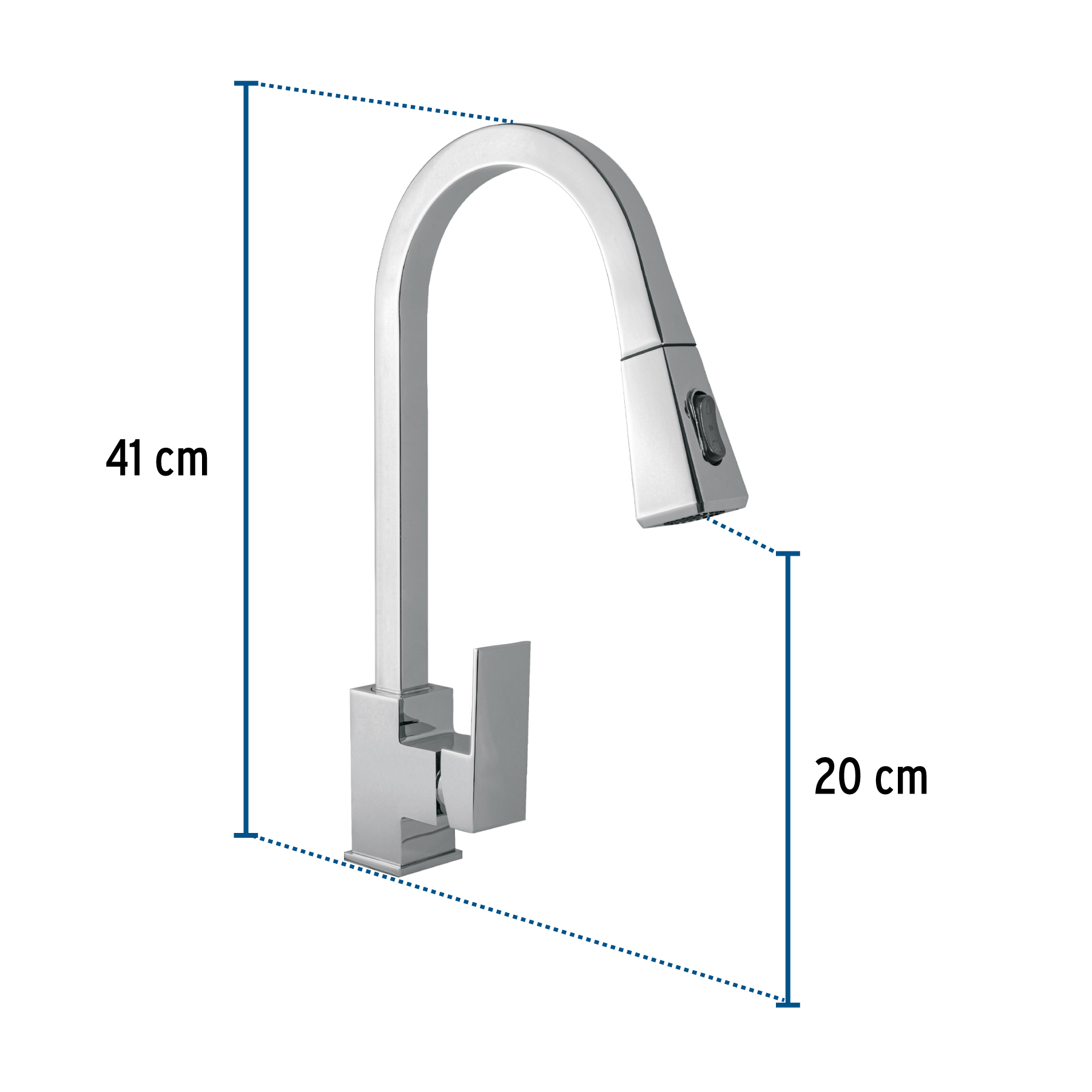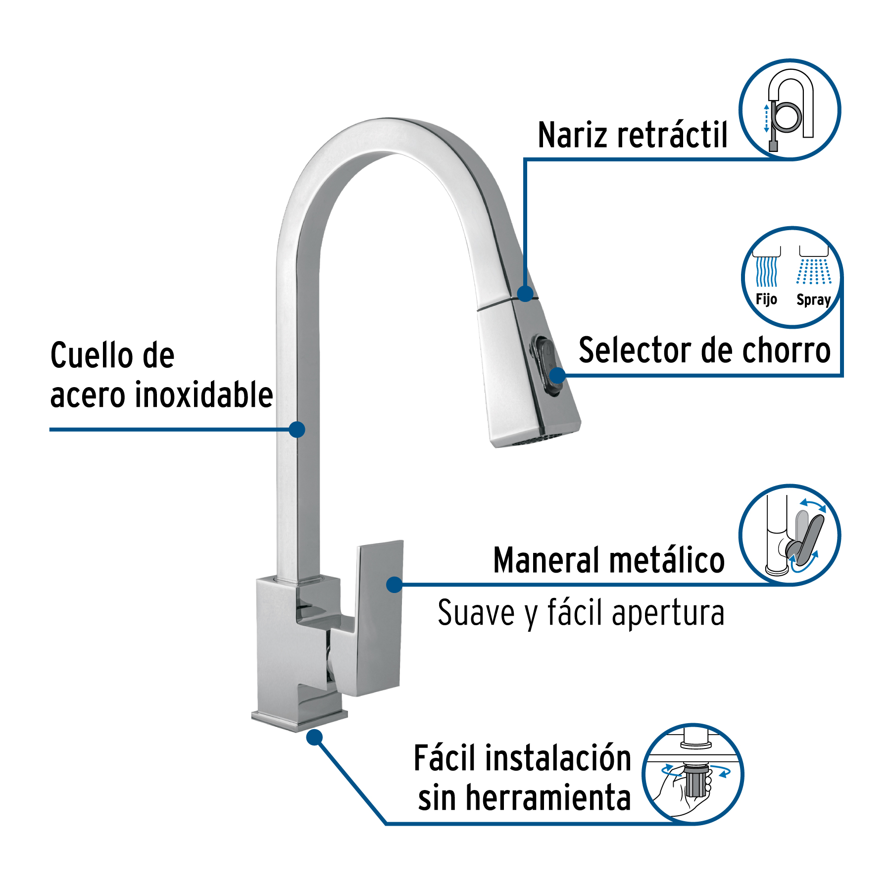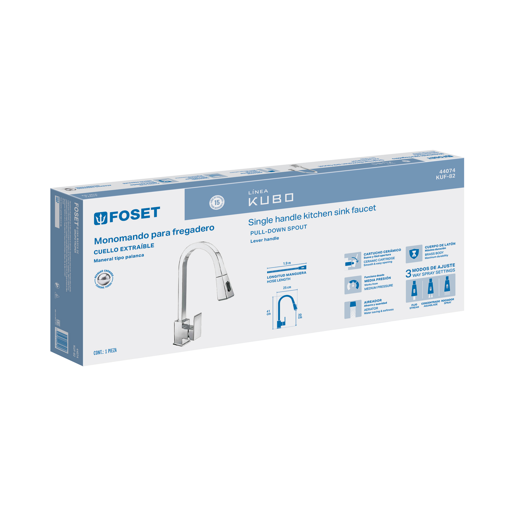 Monomando nariz retráctil para fregadero, cromo, FOSET KUBO