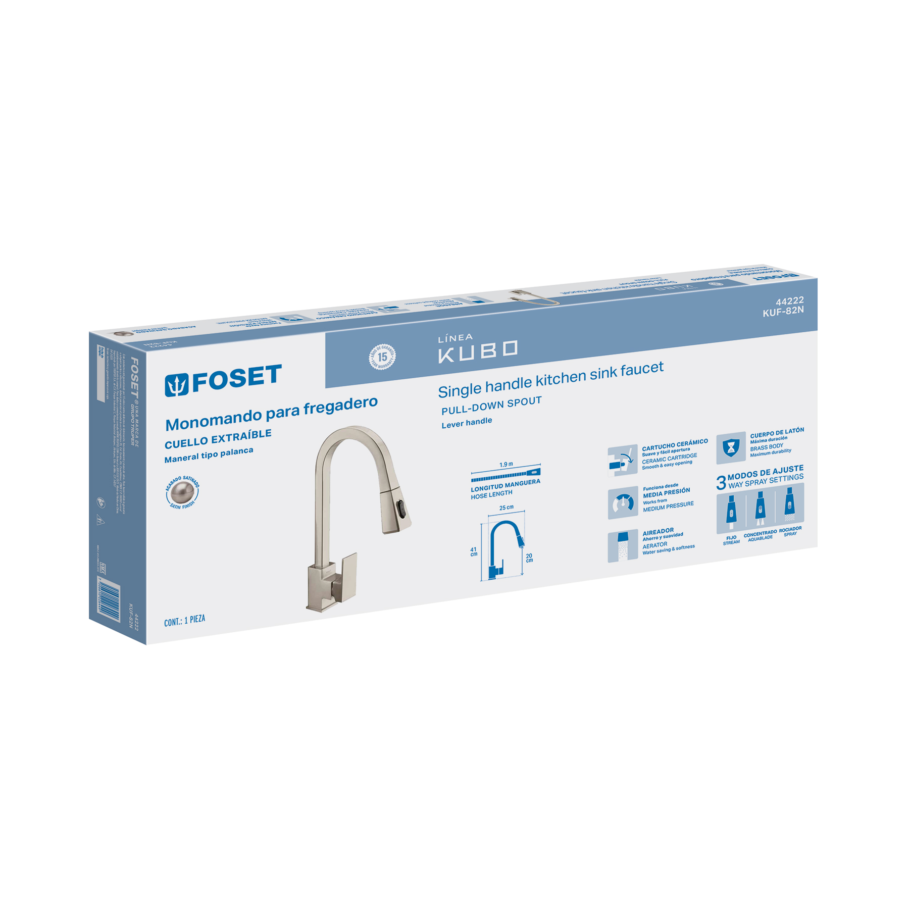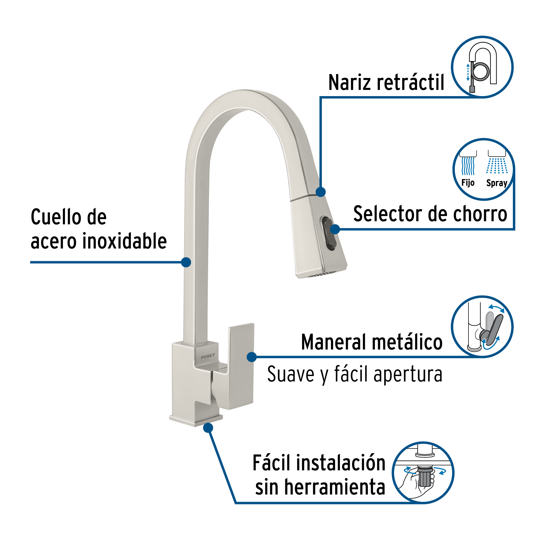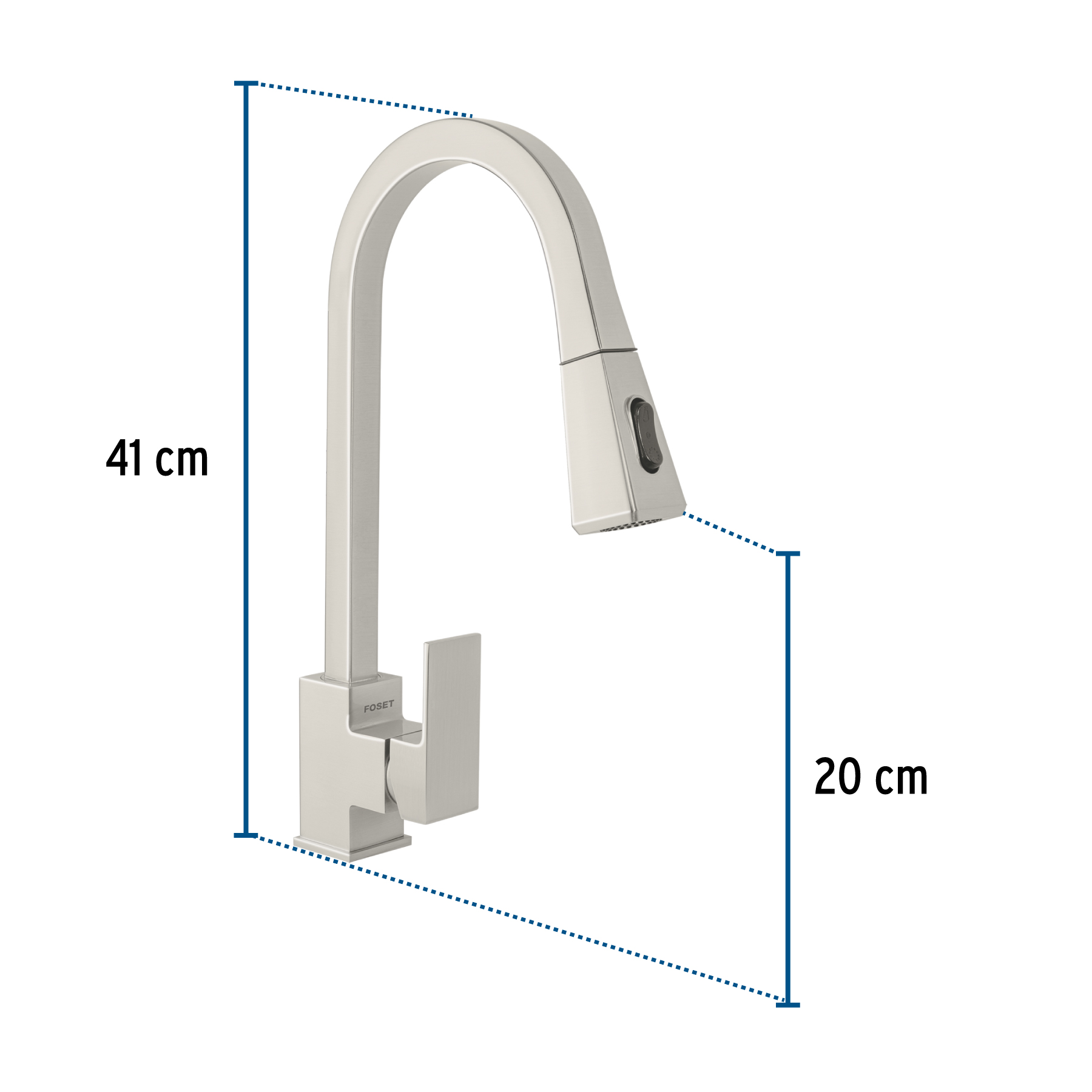 Monomando nariz retráctil para fregadero, satín, FOSET KUBO