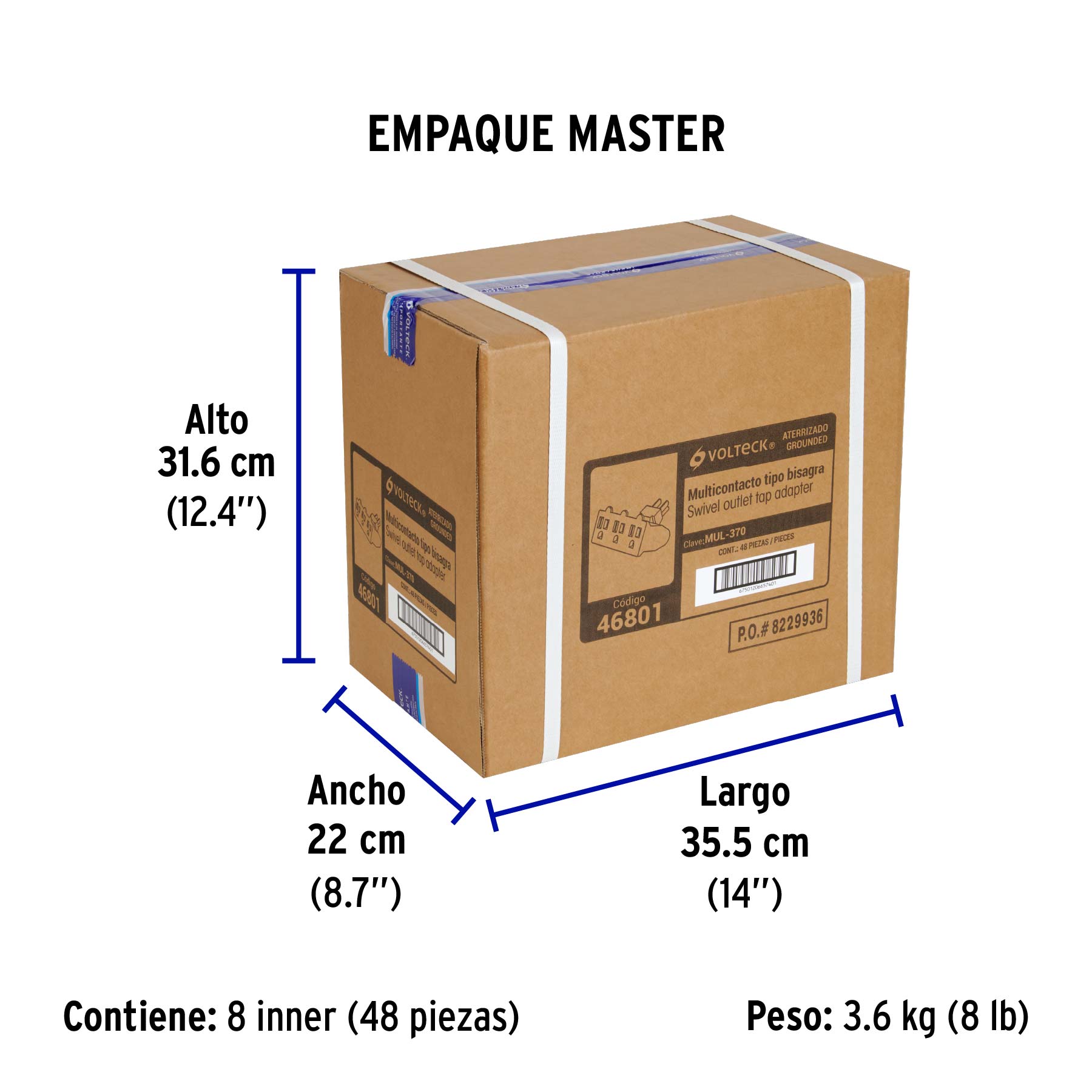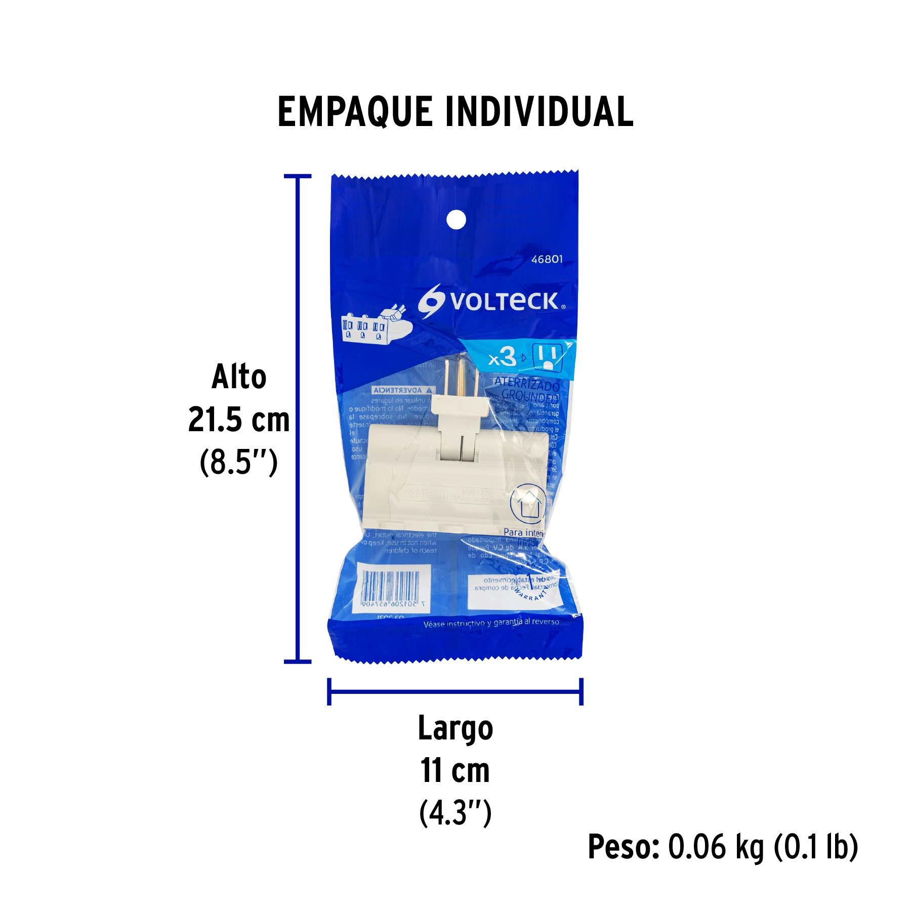 Multicontacto triple aterrizado, tipo bisagra, VOLTECK