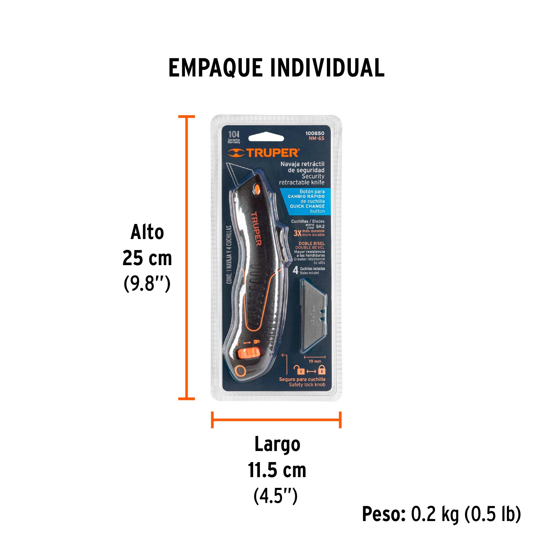 Navaja auto-retráctil de seguridad 7", Truper