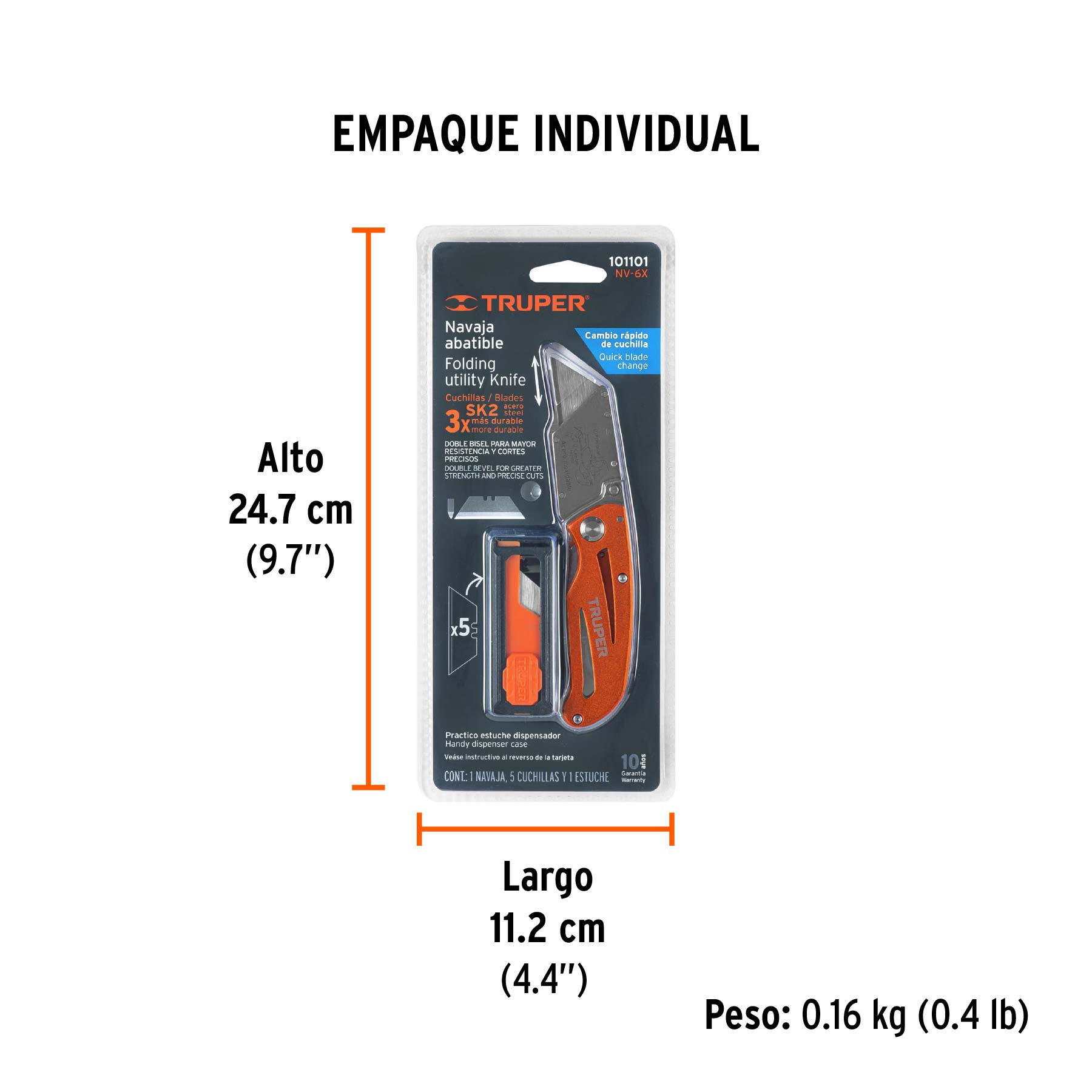 Navaja abatible 6" cuerpo de aluminio y acero inox, Truper