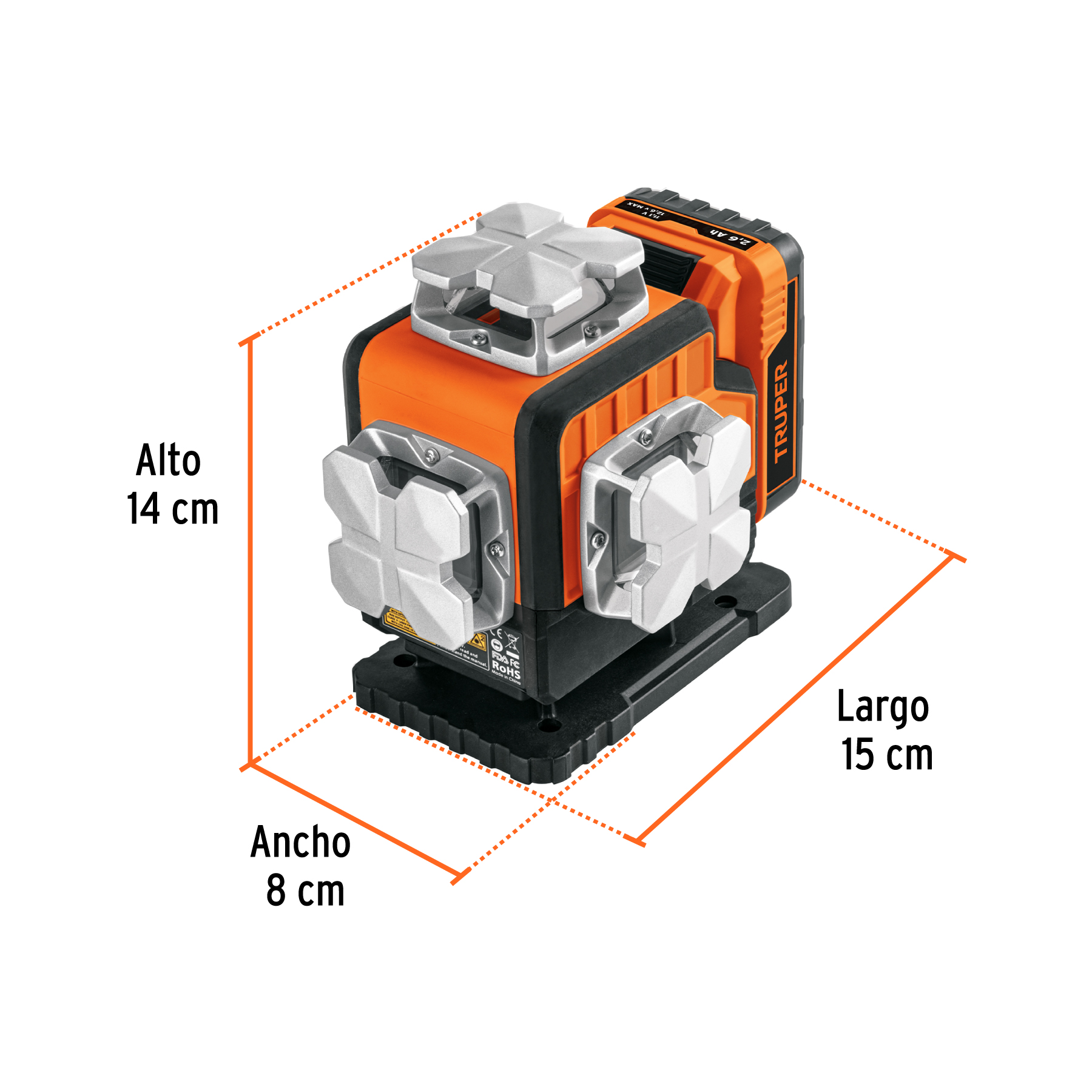 Nivel láser verde, alcance 30m,16 líneas, recargable, TRUPER