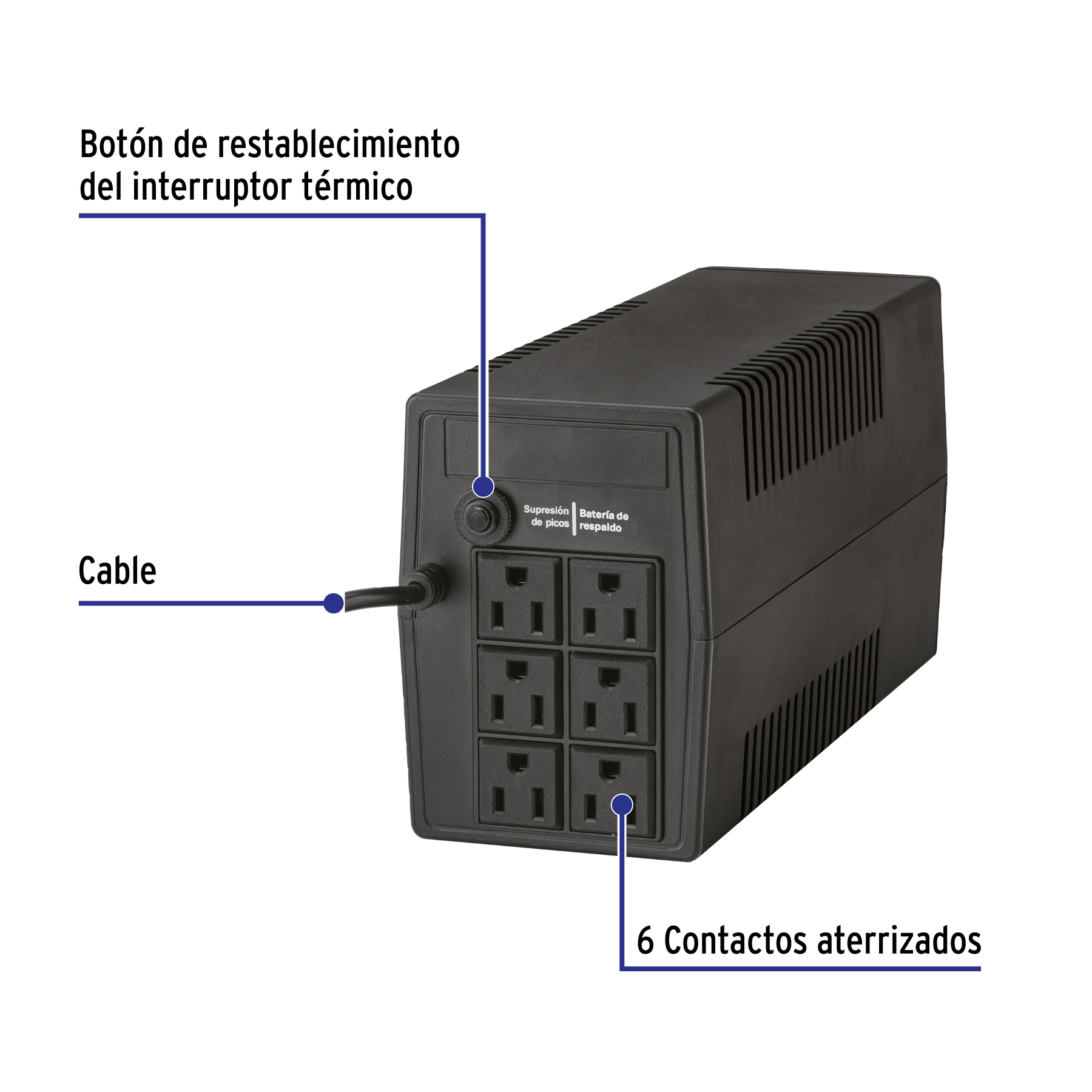 3 Contactos con batería de respaldo y 3 contactos con supresor de picos