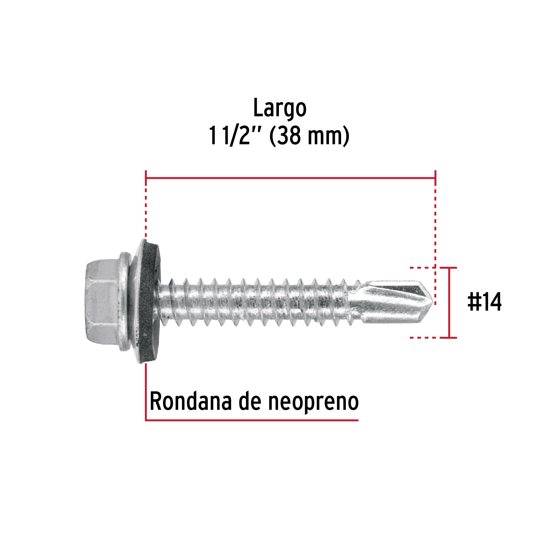 Con rondana de neopreno que proporciona un mejor sellado y evita la corrosión entre las superficies