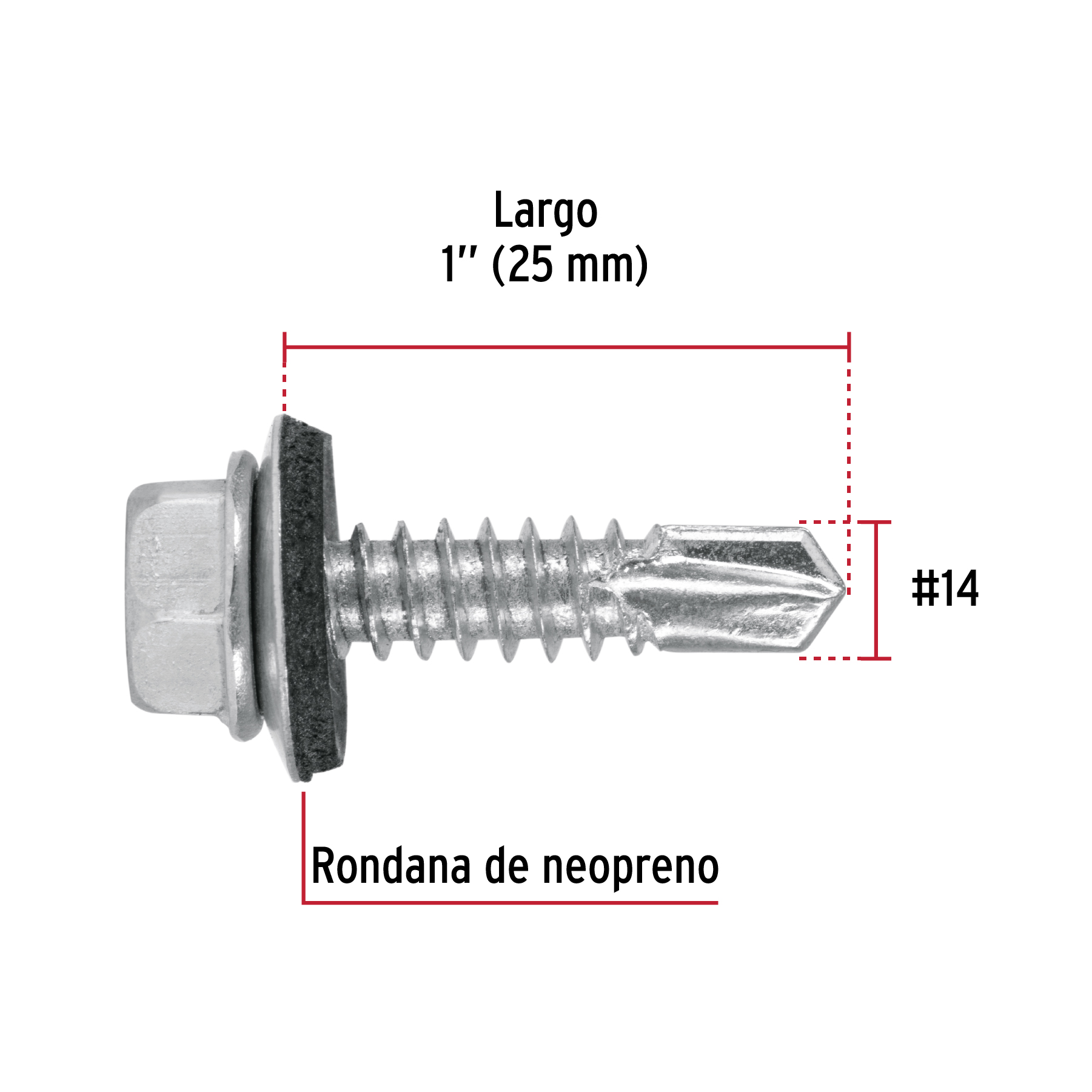 Con rondana de neopreno que proporciona un mejor sellado y evita la corrosión entre las superficies