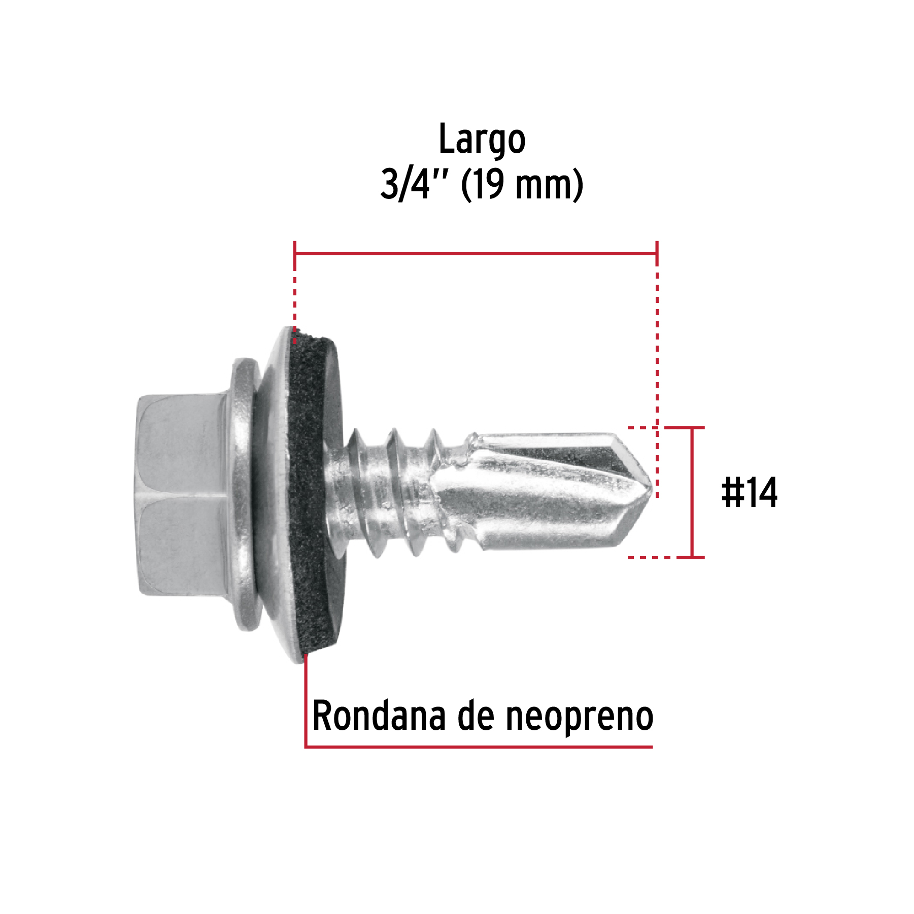 Con rondana de neopreno que proporciona un mejor sellado y evita la corrosión entre las superficies