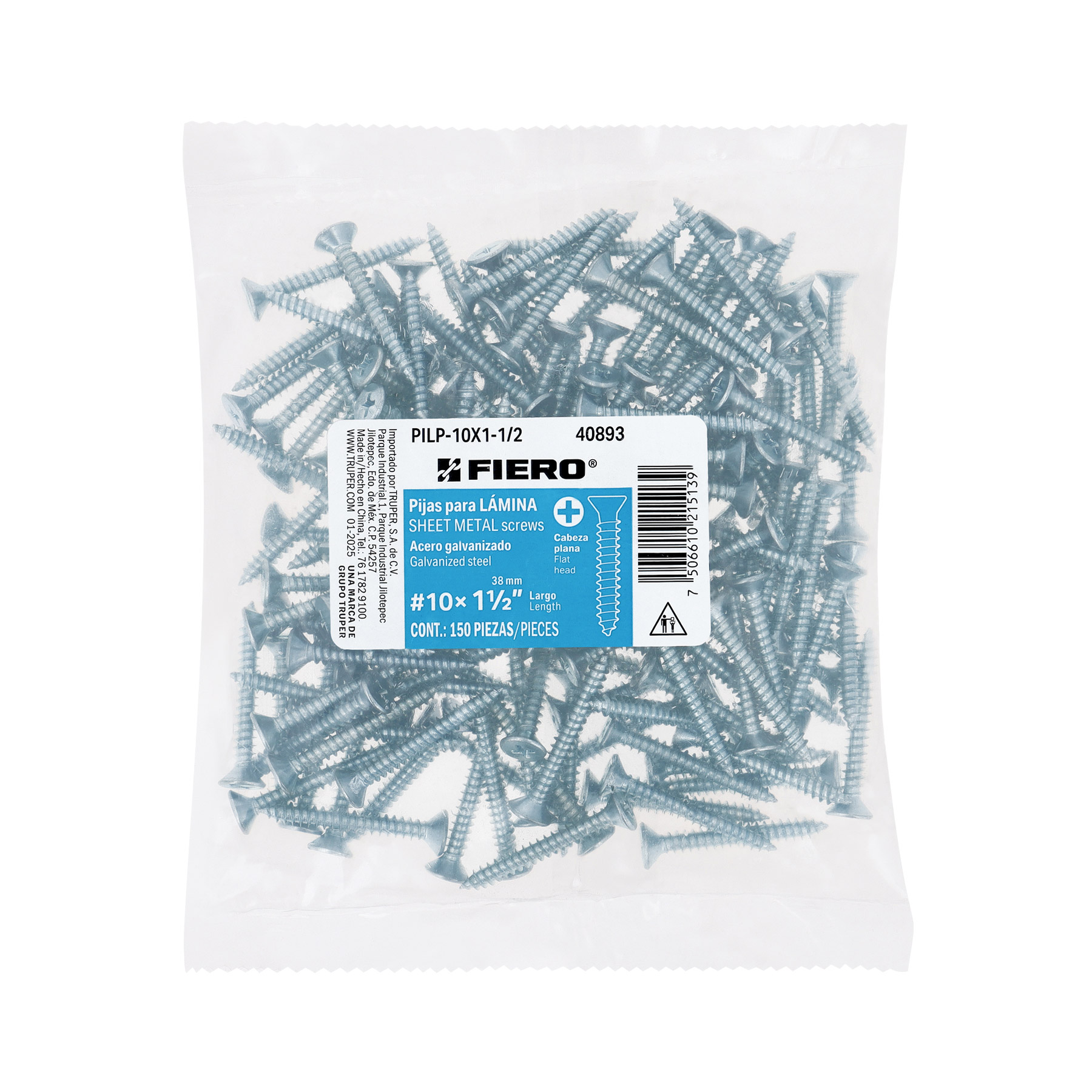 Bolsa 150 pijas para lámina cabeza plana #10 x 1-1/2", FIERO