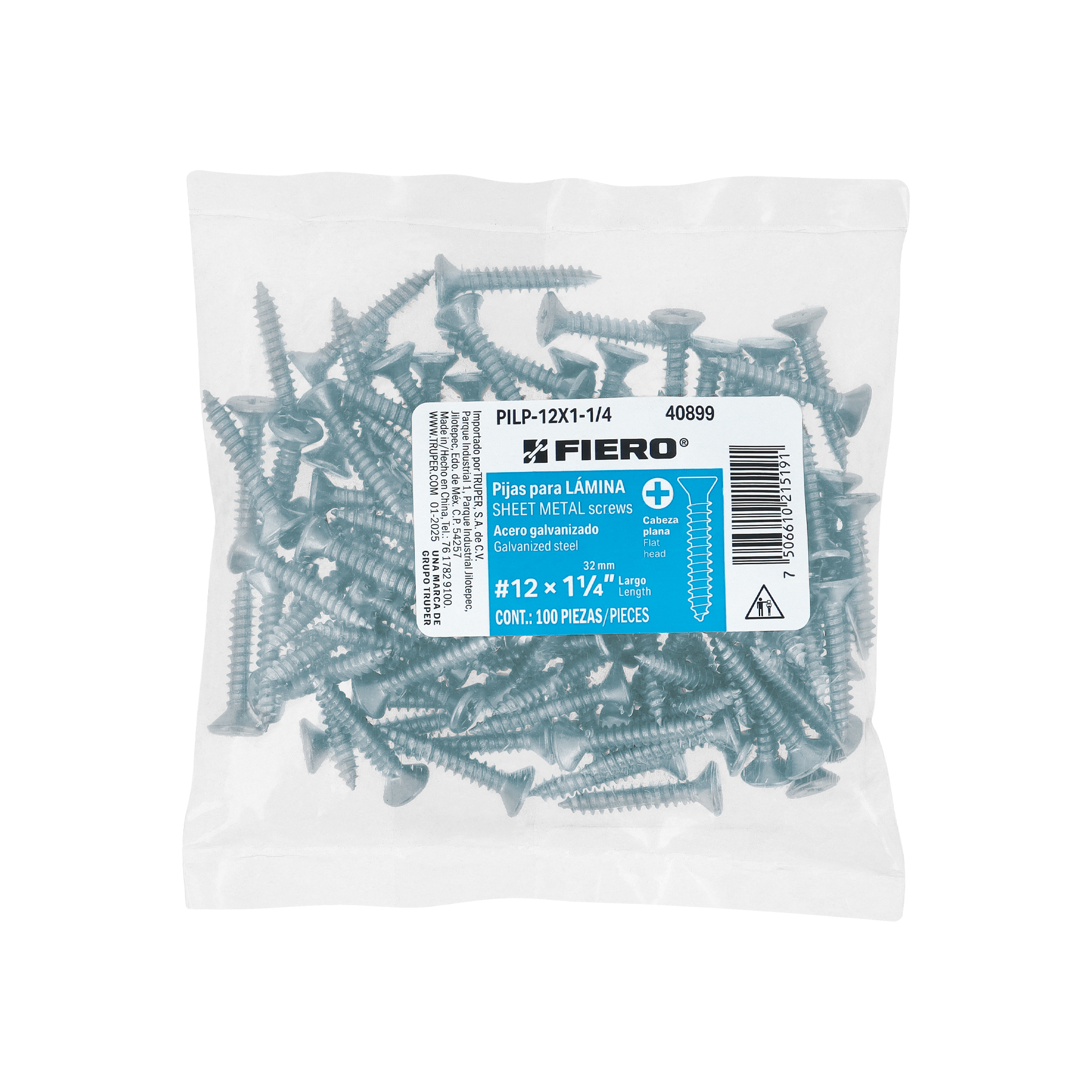 Bolsa 100 pijas para lámina cabeza plana #12 x 1-1/4", FIERO