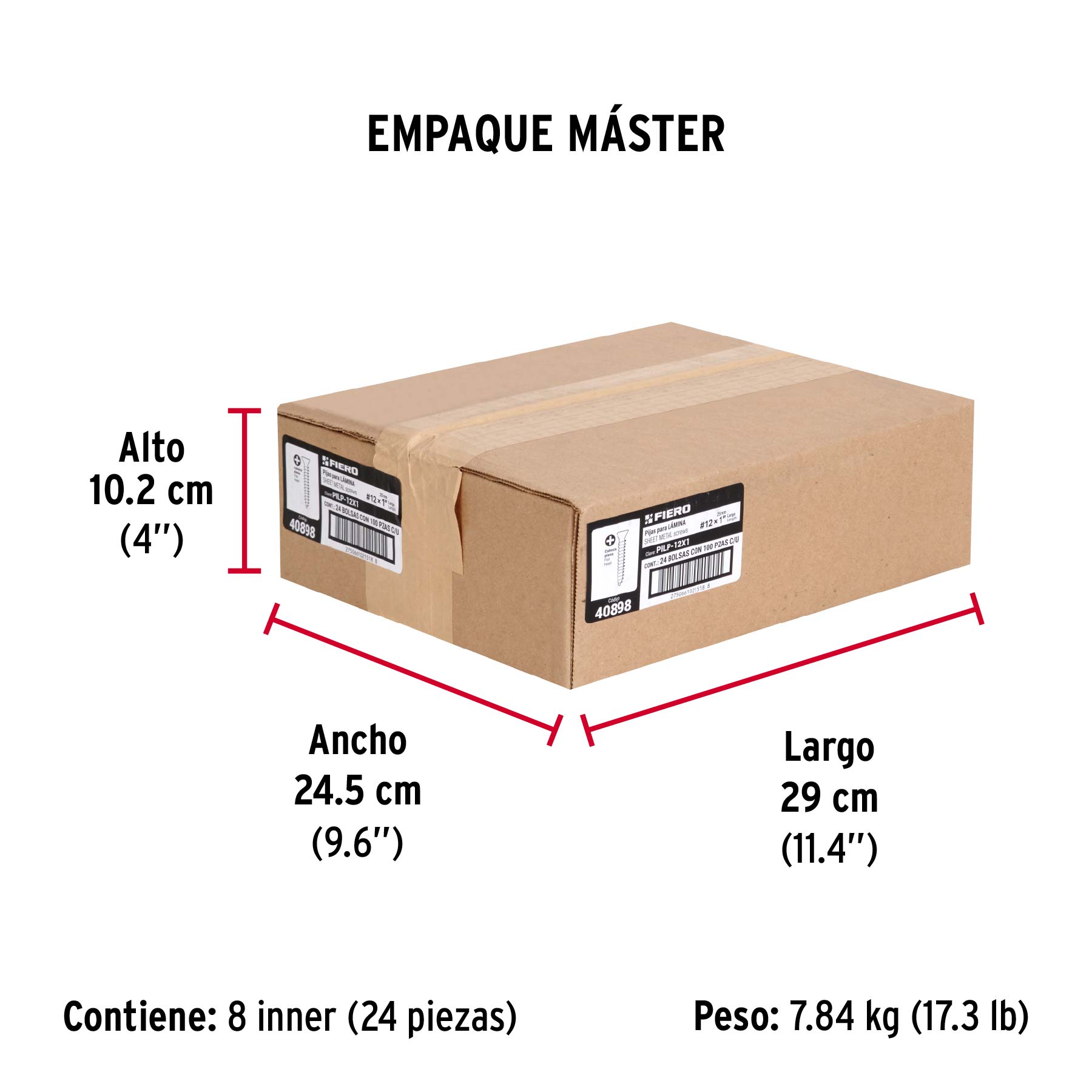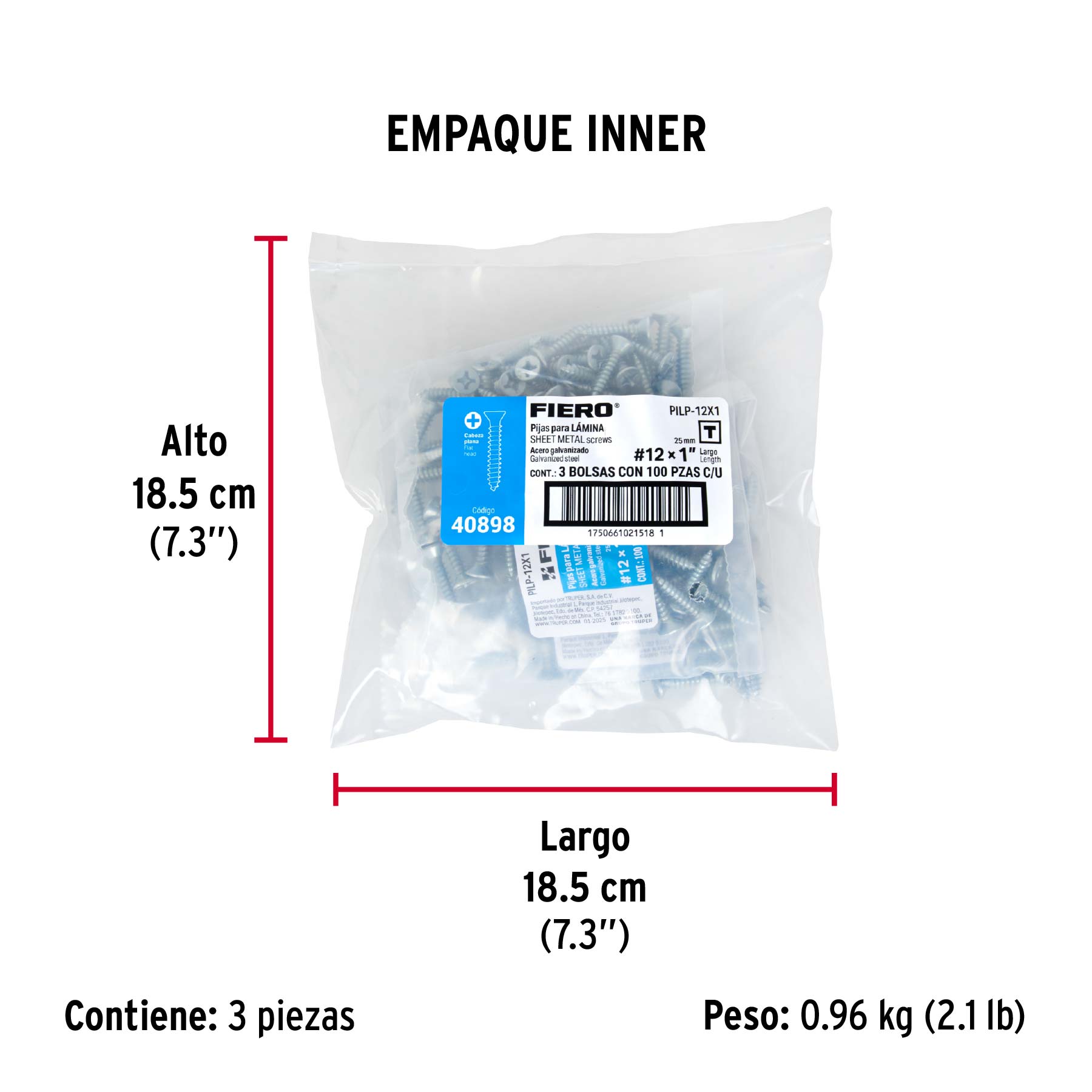 Bolsa 100 pijas para lámina cabeza plana #12 x 1", FIERO