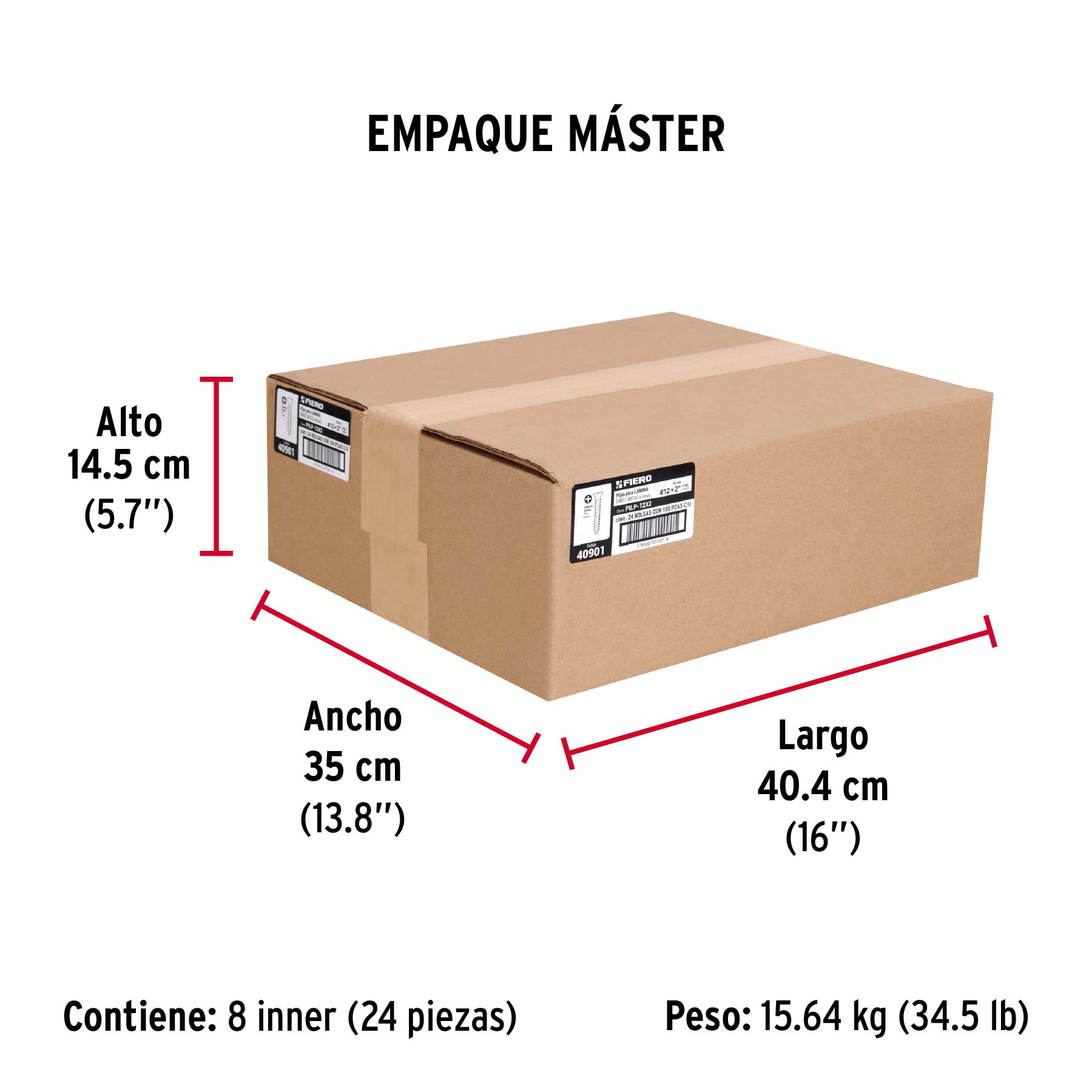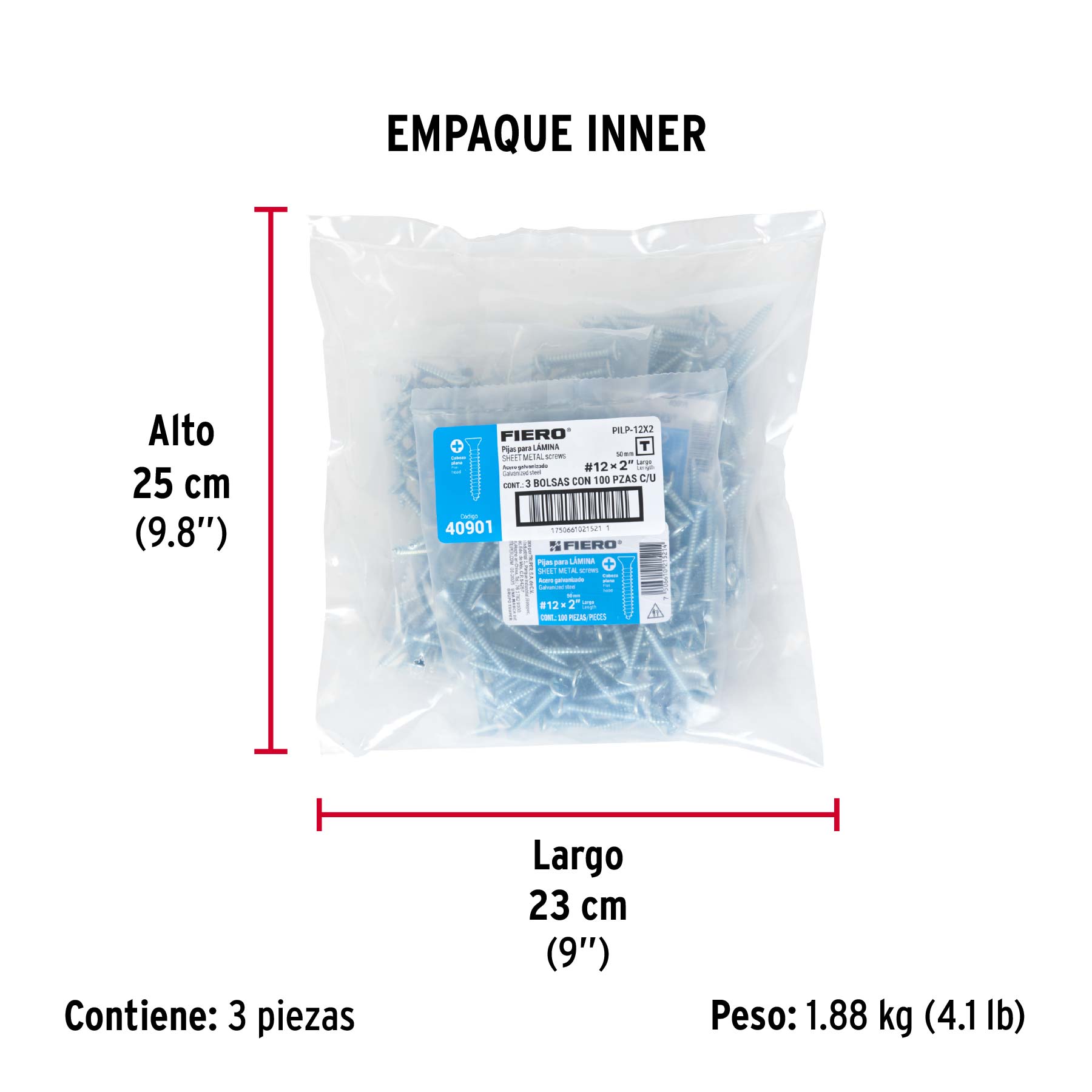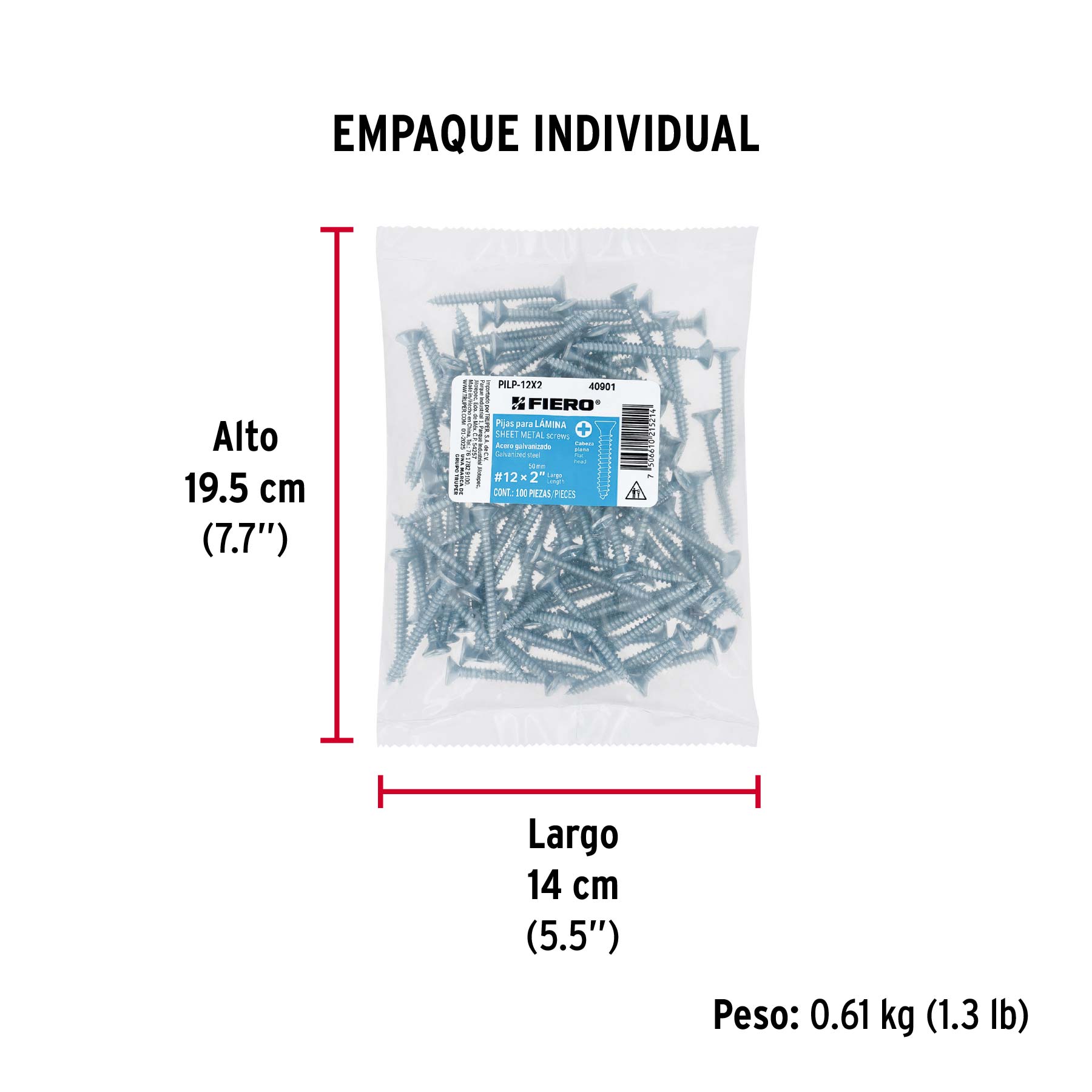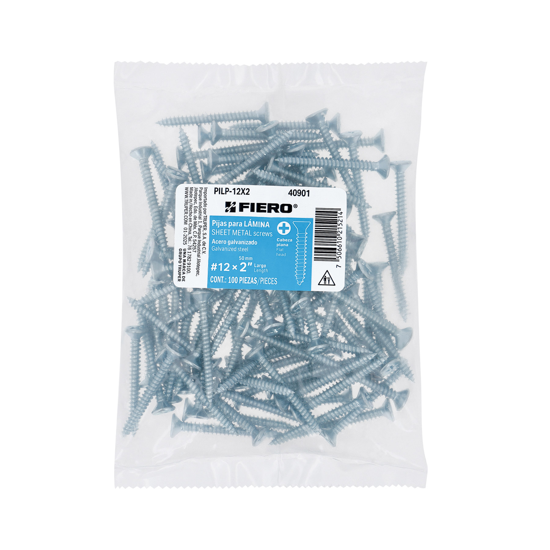 Bolsa 100 pijas para lámina cabeza plana #12 x 2", FIERO