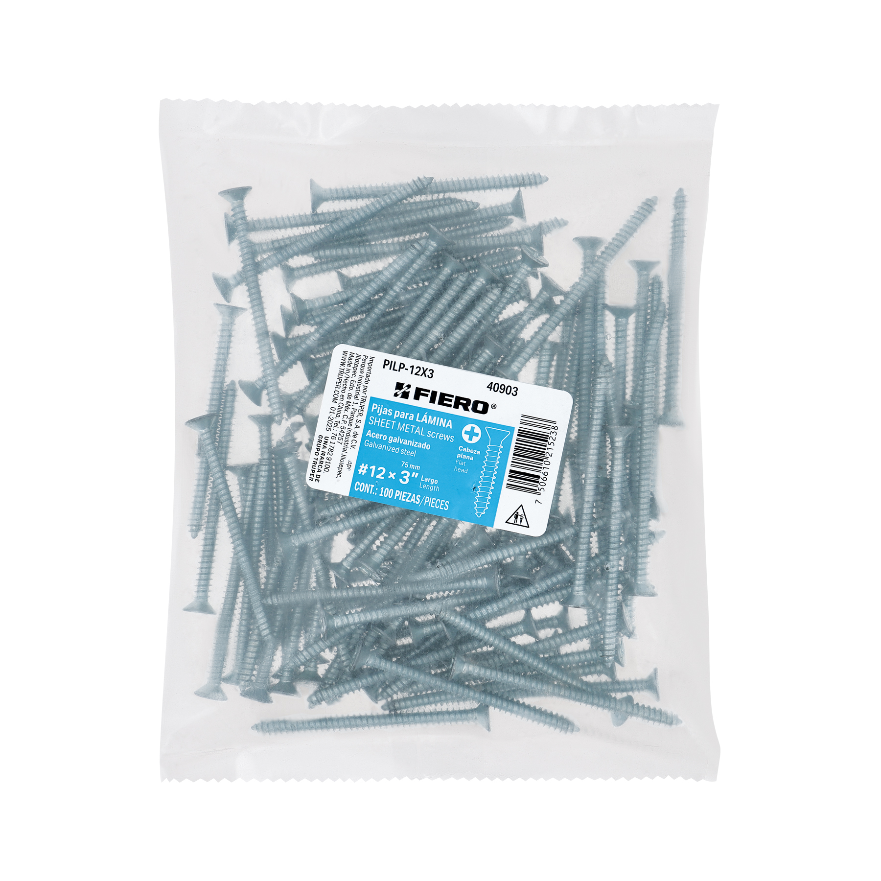 Bolsa 100 pijas para lámina cabeza plana #12 x 3", FIERO