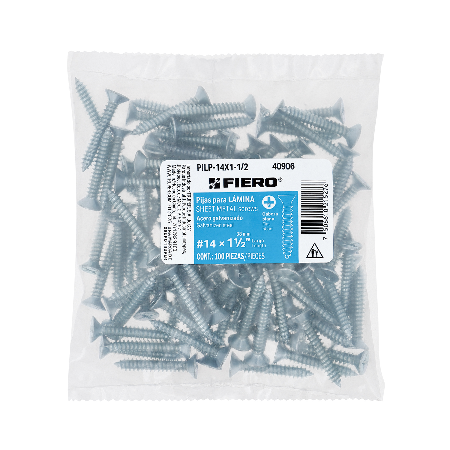 Bolsa 100 pijas para lámina cabeza plana #14 x 1-1/2", FIERO