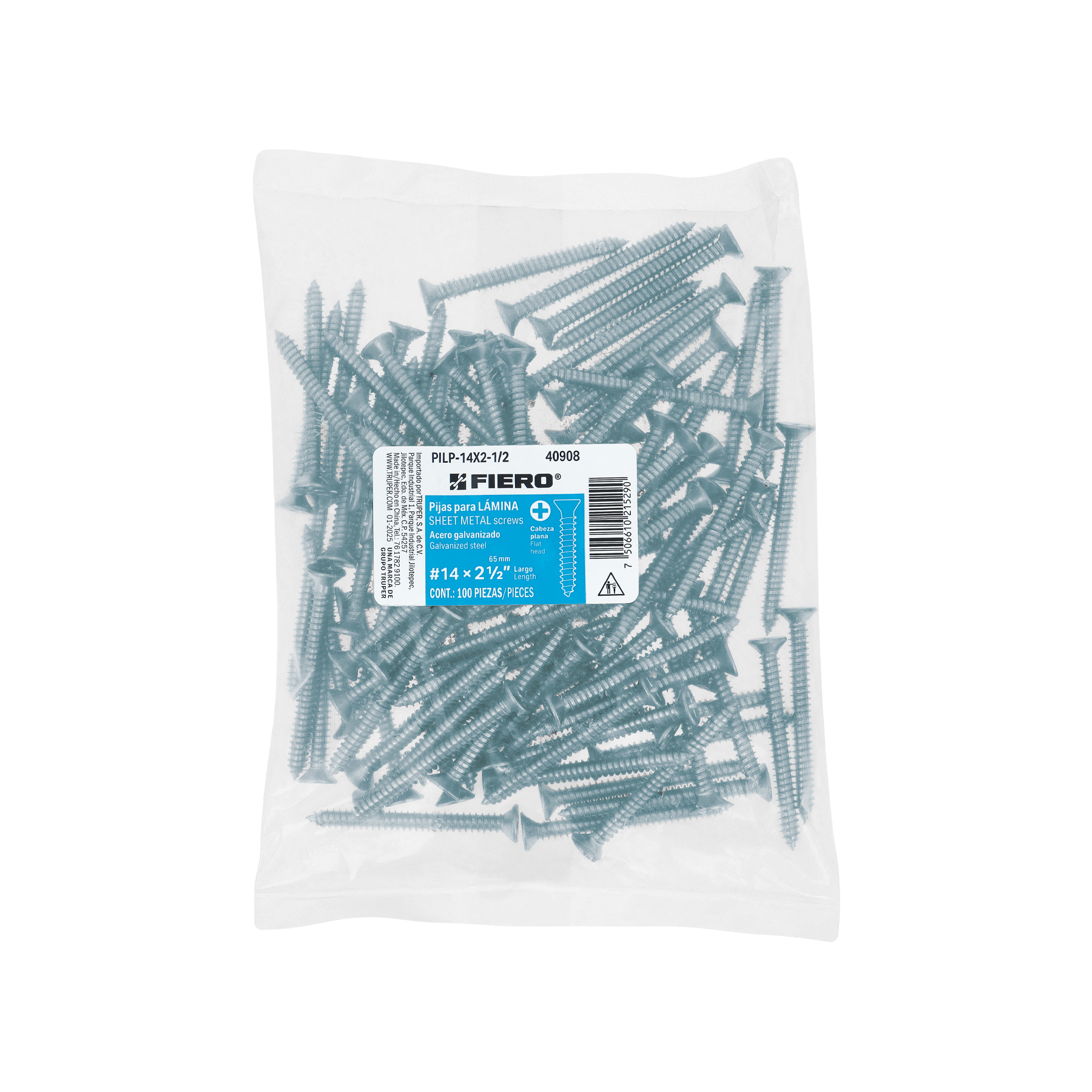 Bolsa 100 pijas para lámina cabeza plana #14 x 2-1/2", FIERO