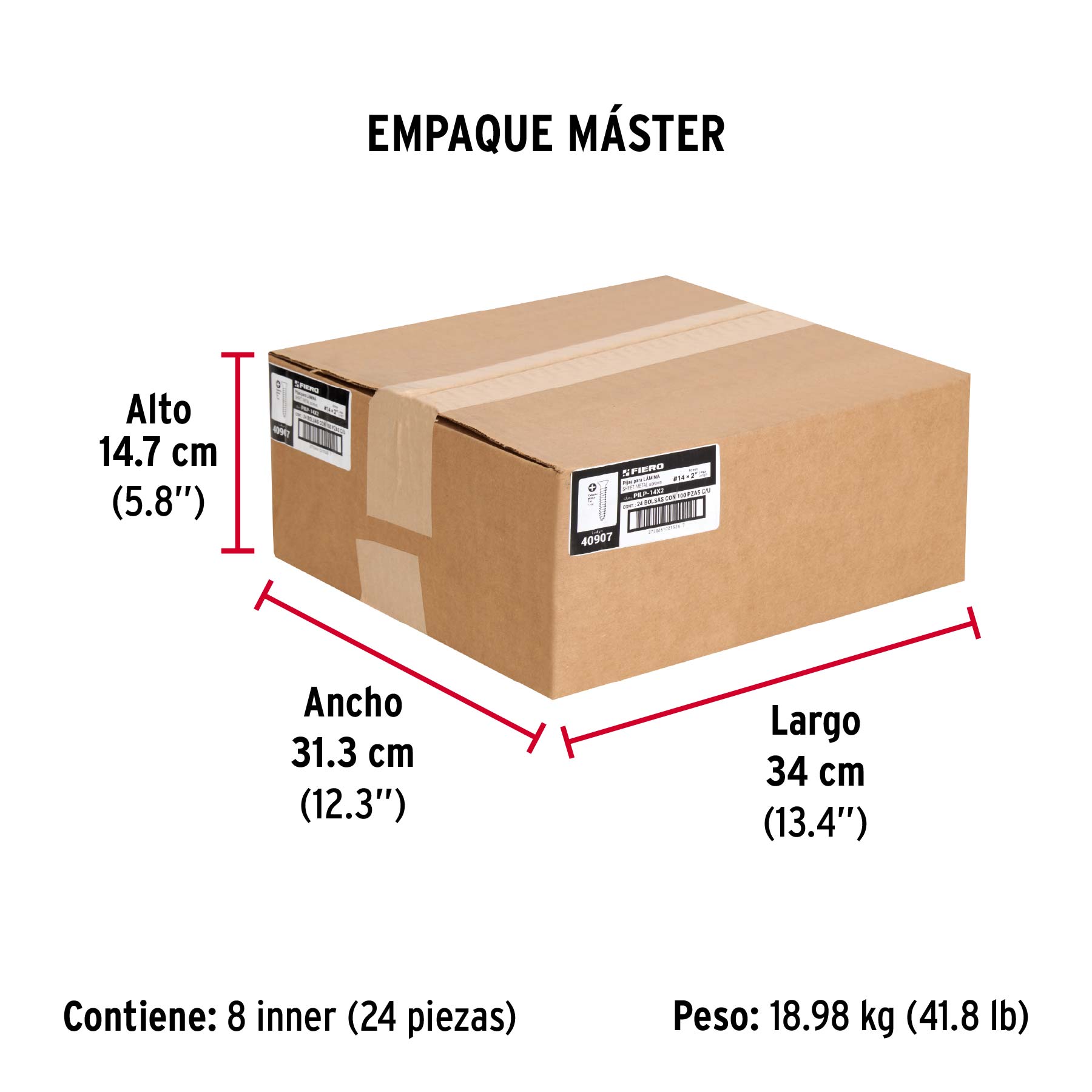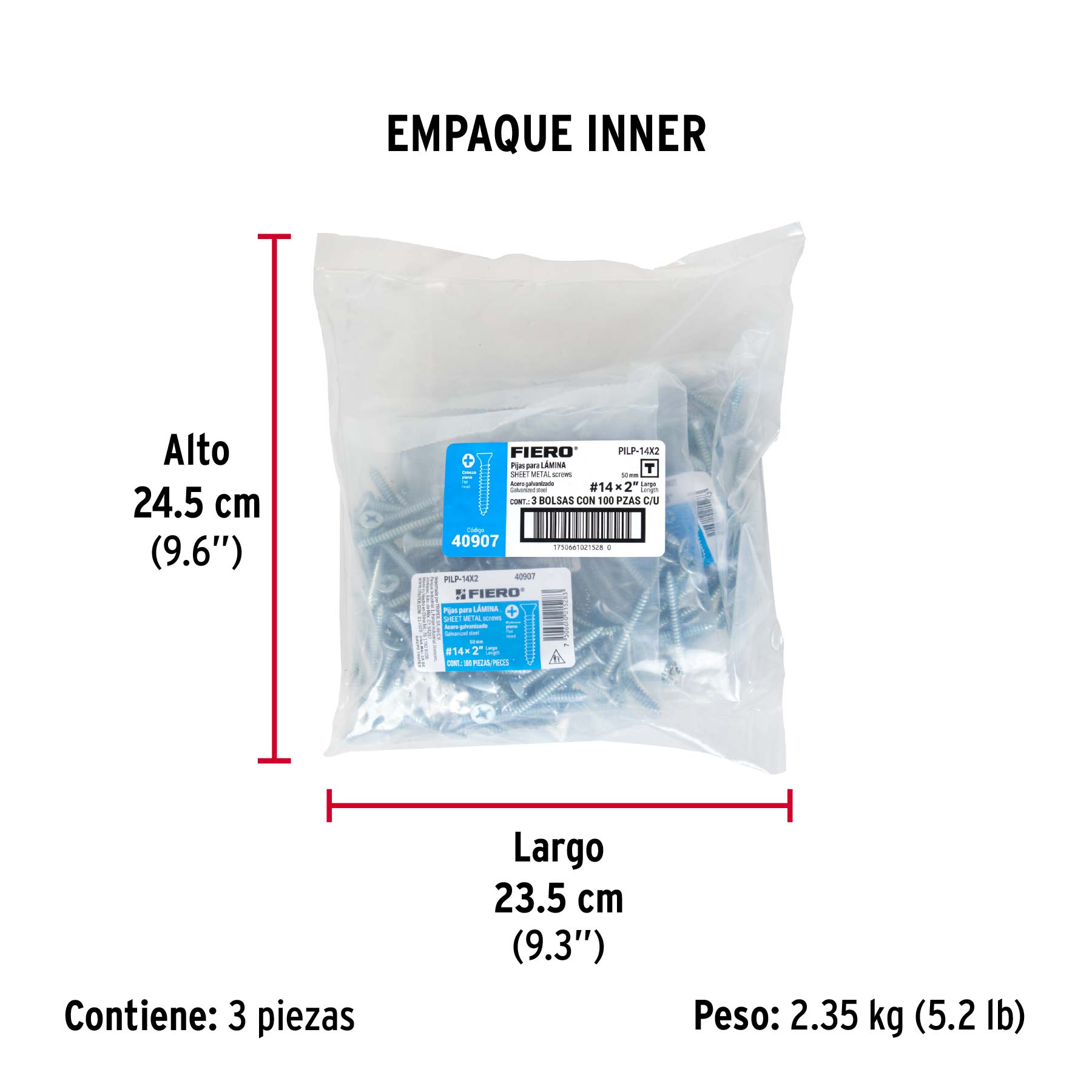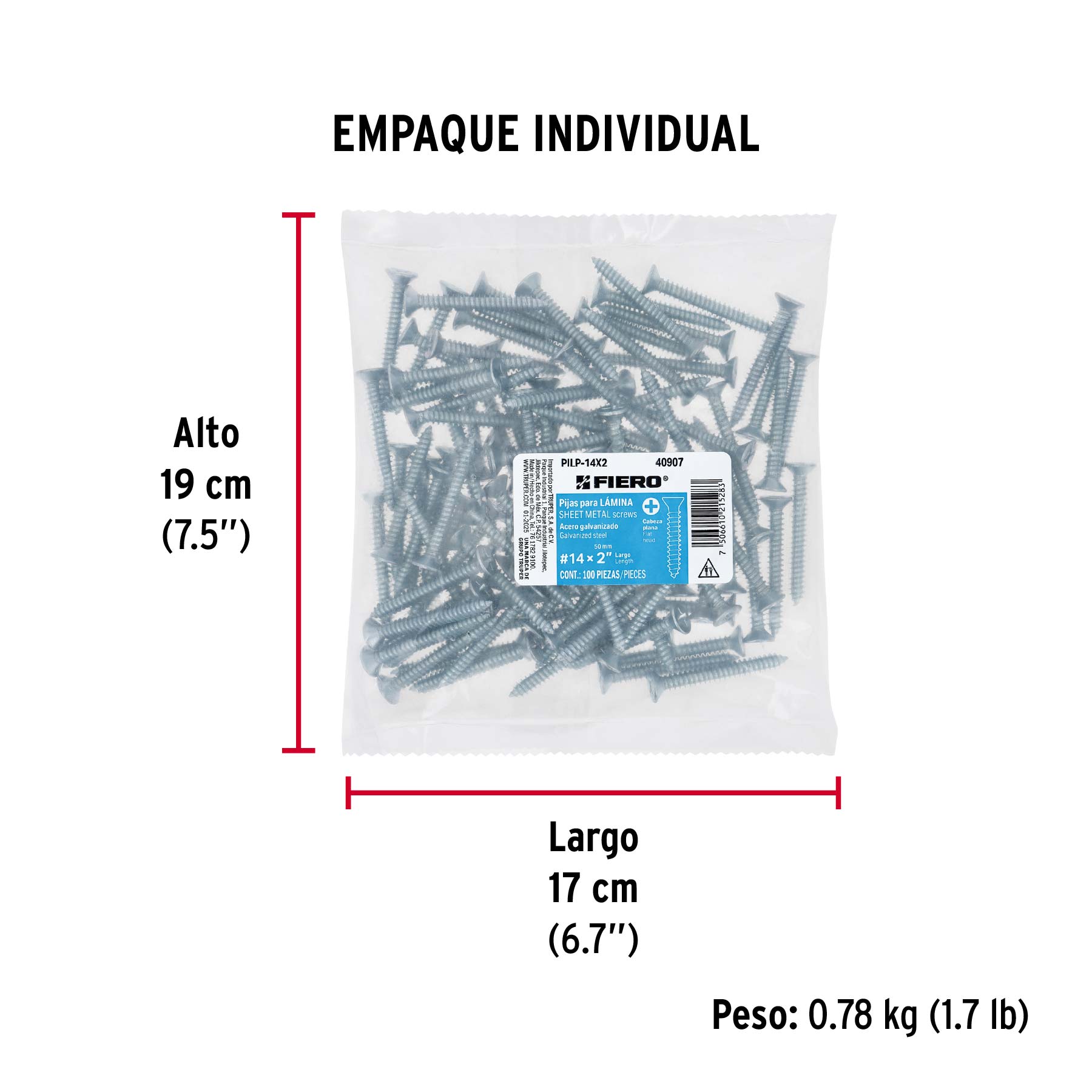 Bolsa 100 pijas para lámina cabeza plana #14 x 2", FIERO