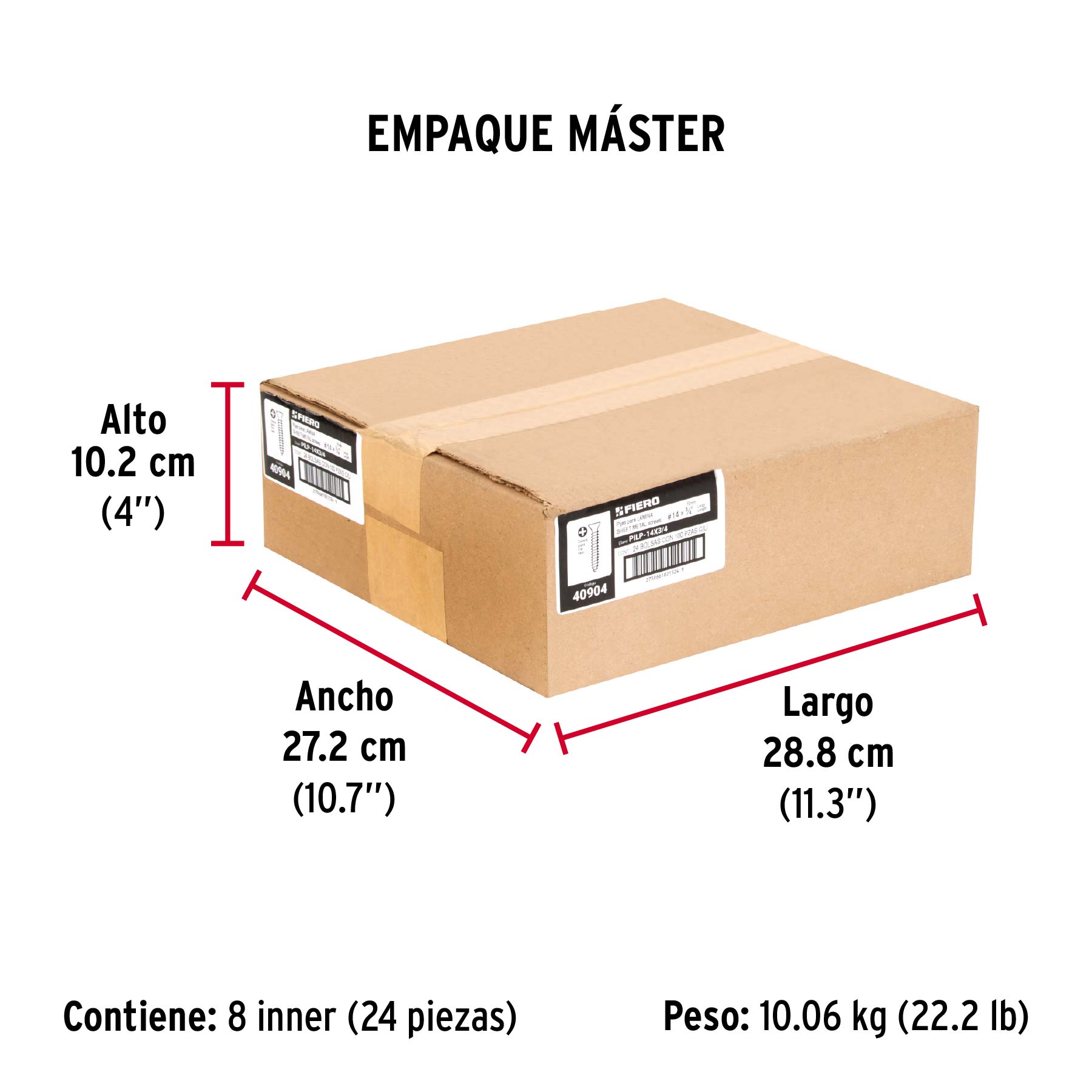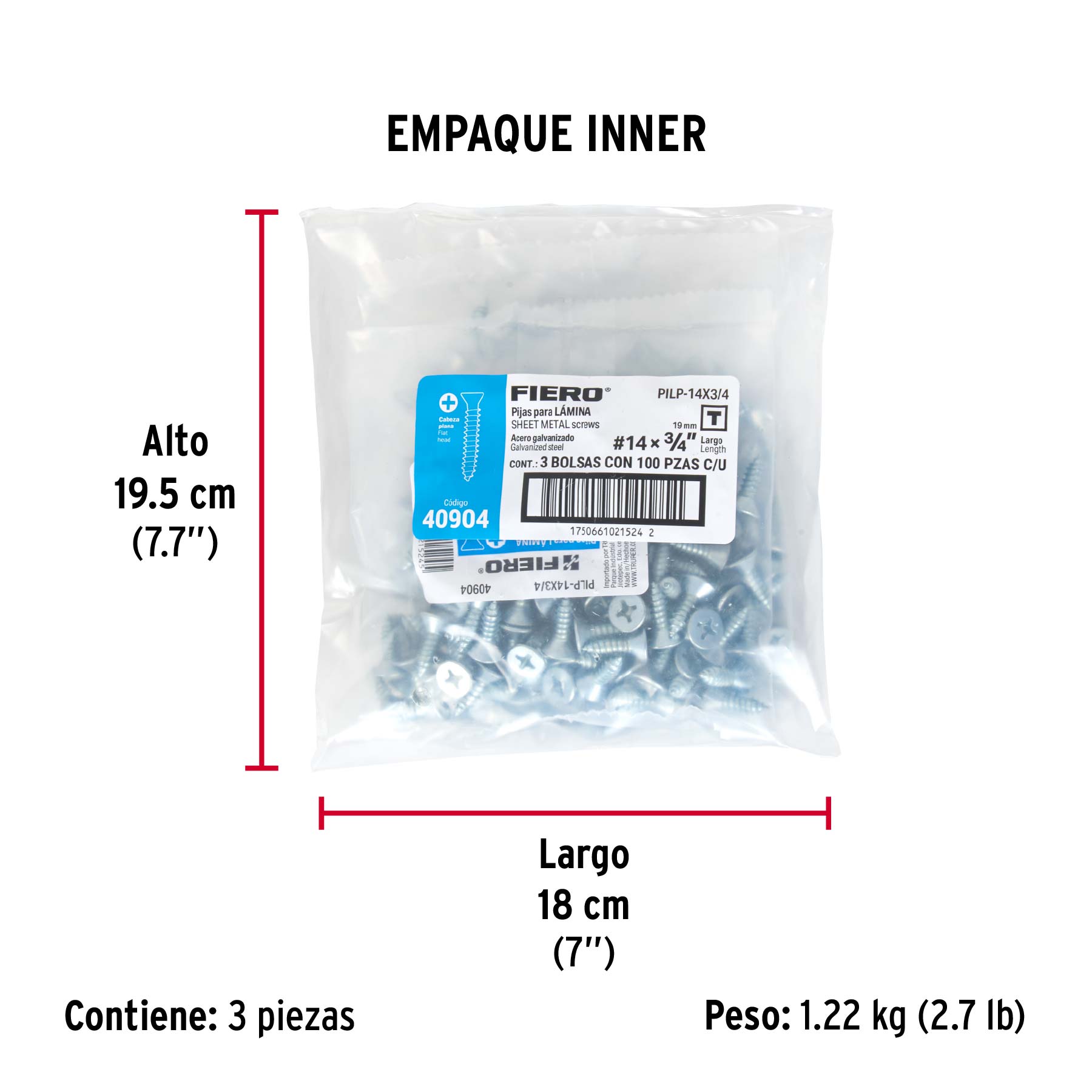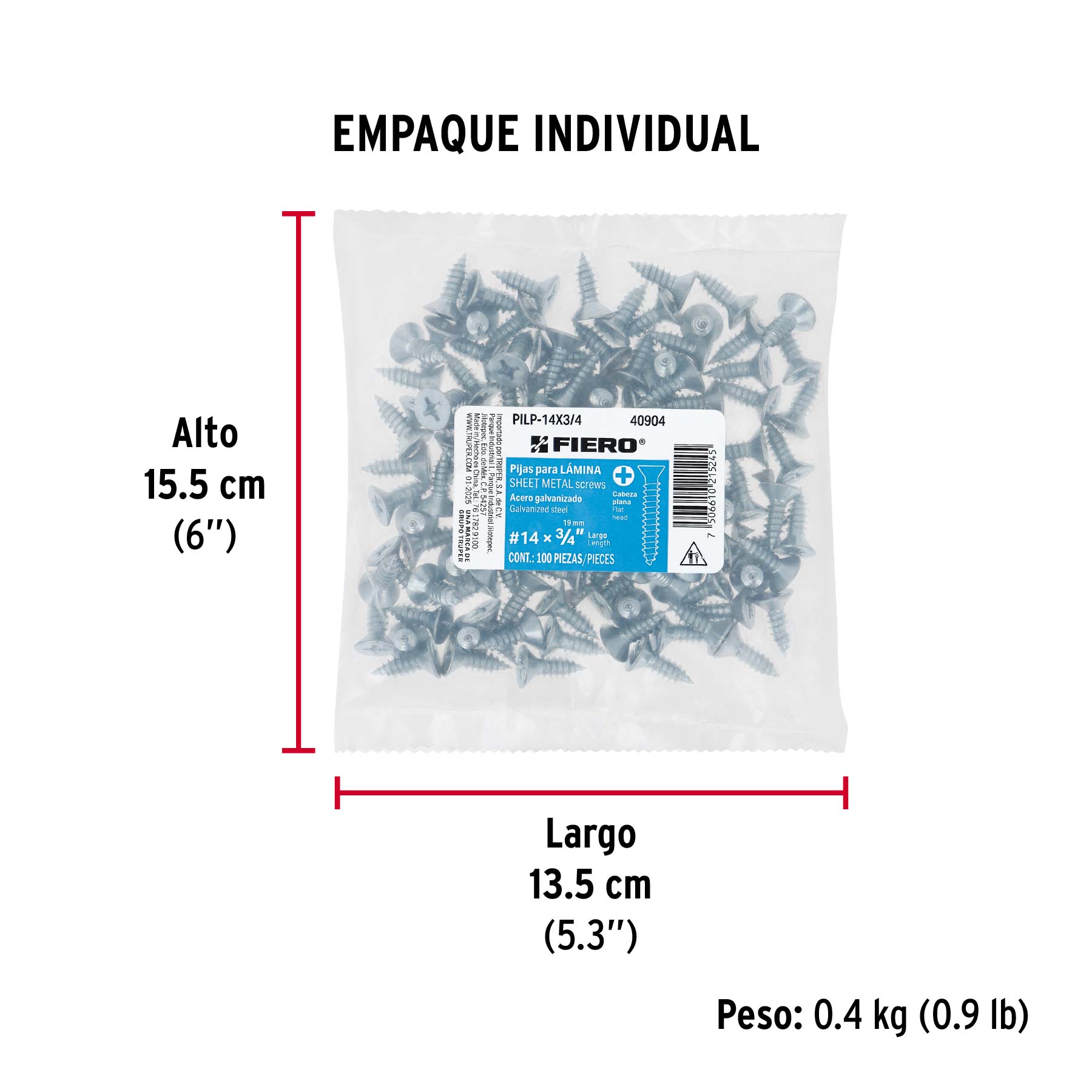 Bolsa 100 pijas para lámina cabeza plana #14 x 3/4", FIERO