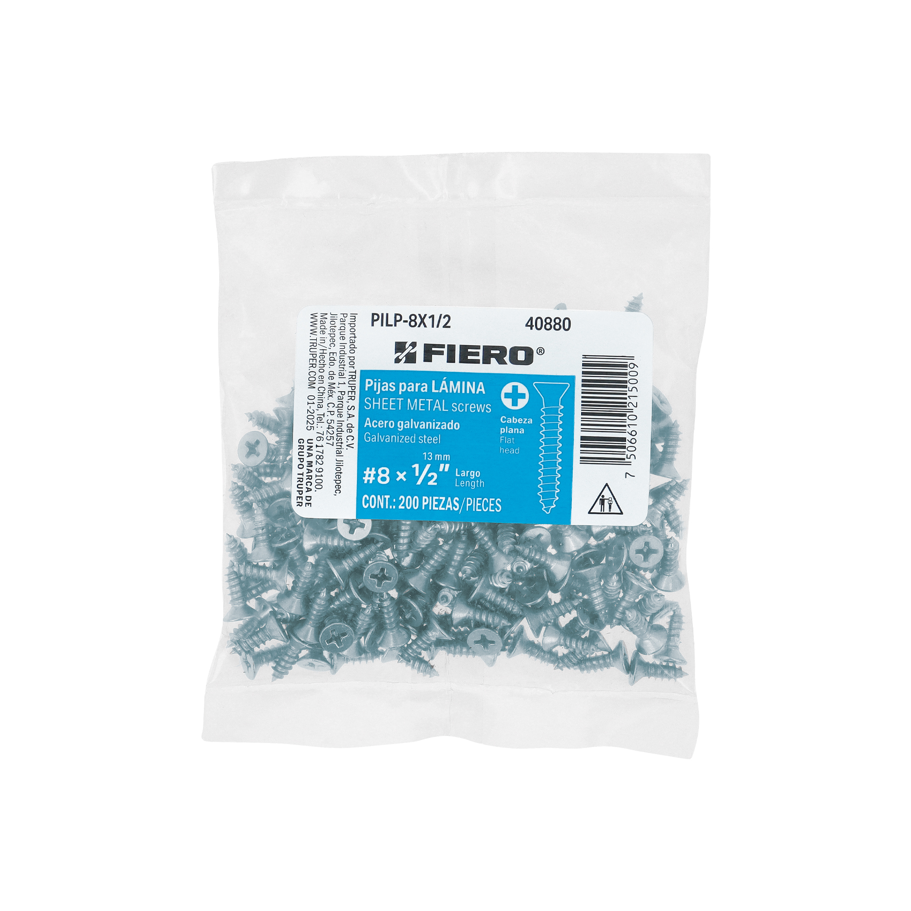 Bolsa 200 pijas para lámina cabeza plana #8 x 1/2", FIERO